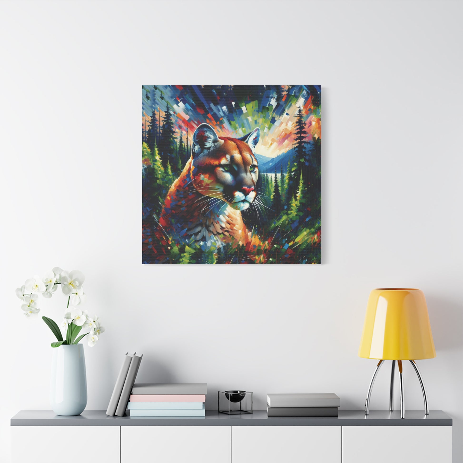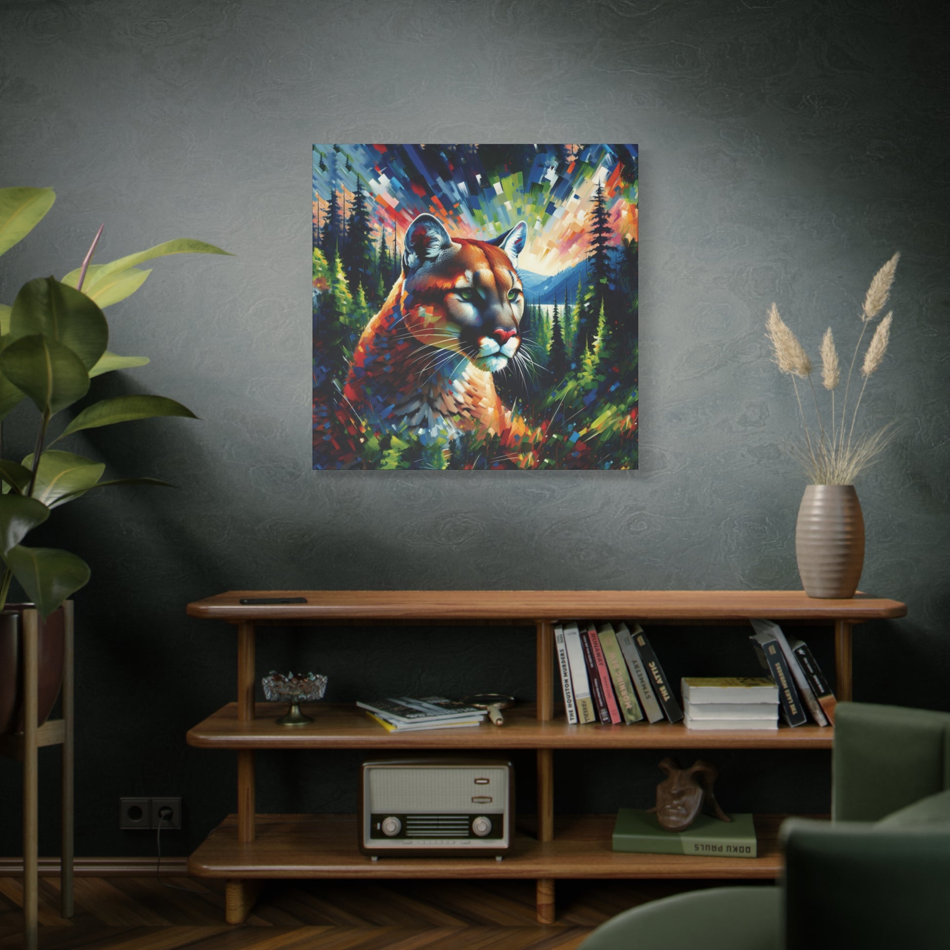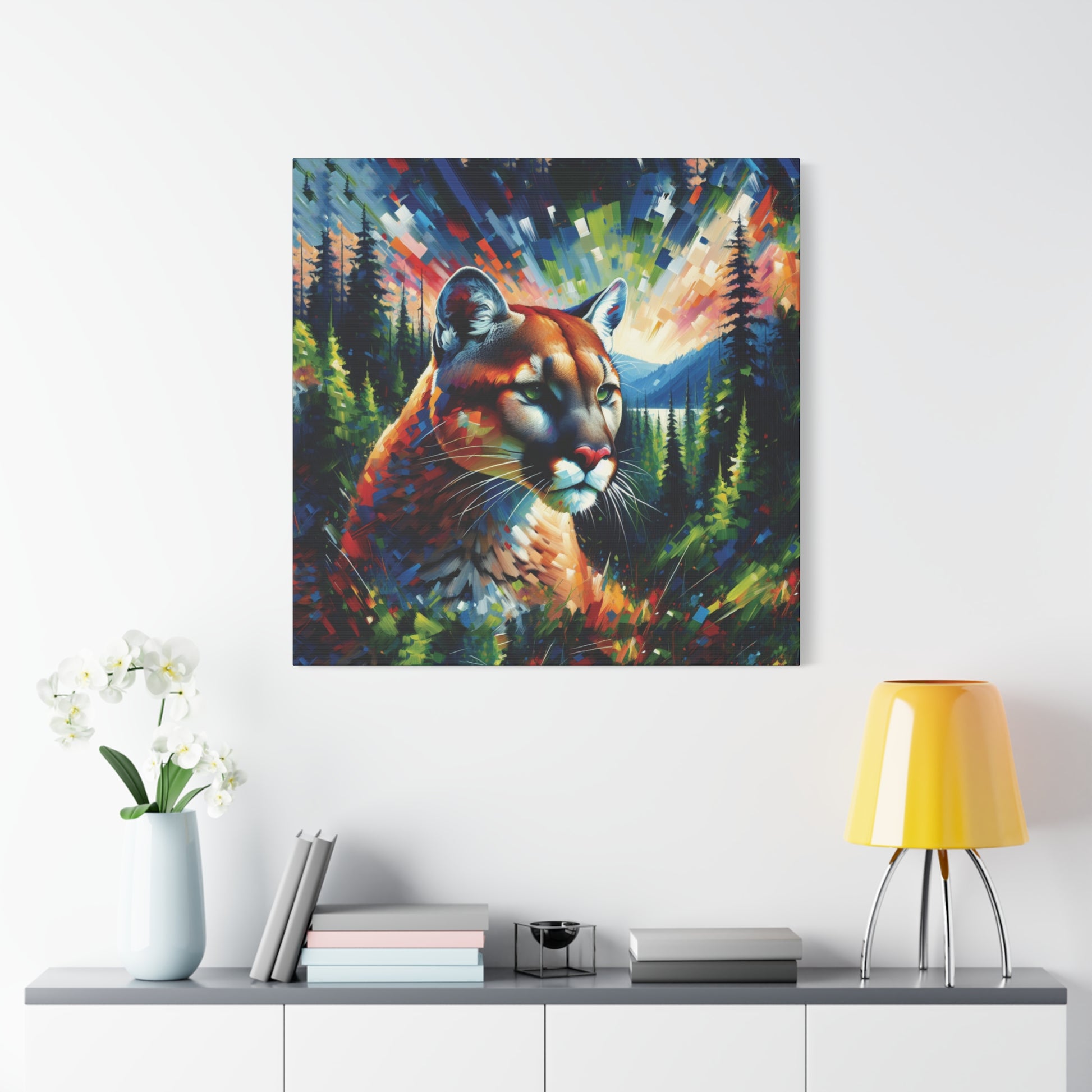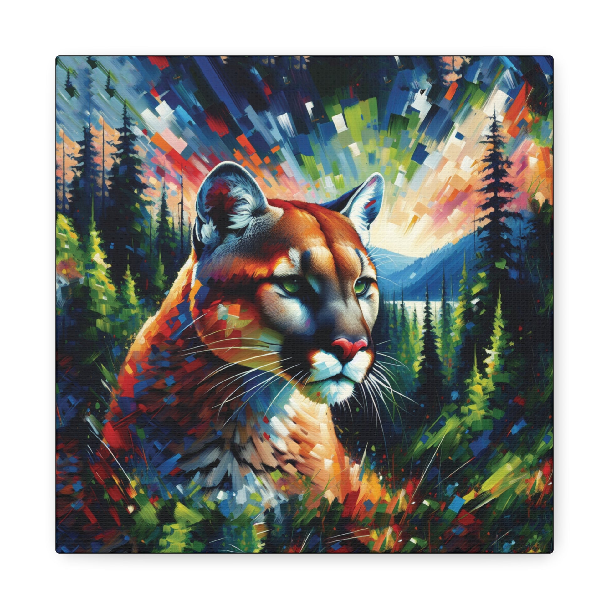 Experience a vibrant and colorful cougar canvas print that brings a stunning Expressionist Art look into the cougar's soul as he surveys his domain. Perfect for art lovers and wildlife enthusiasts, this piece adds a bold and captivating touch to any room. Ideal for wildlife lovers, art enthusiasts, and nature enthusiasts. Perfect addition for home decor, wildlife appreciation, and art collections.