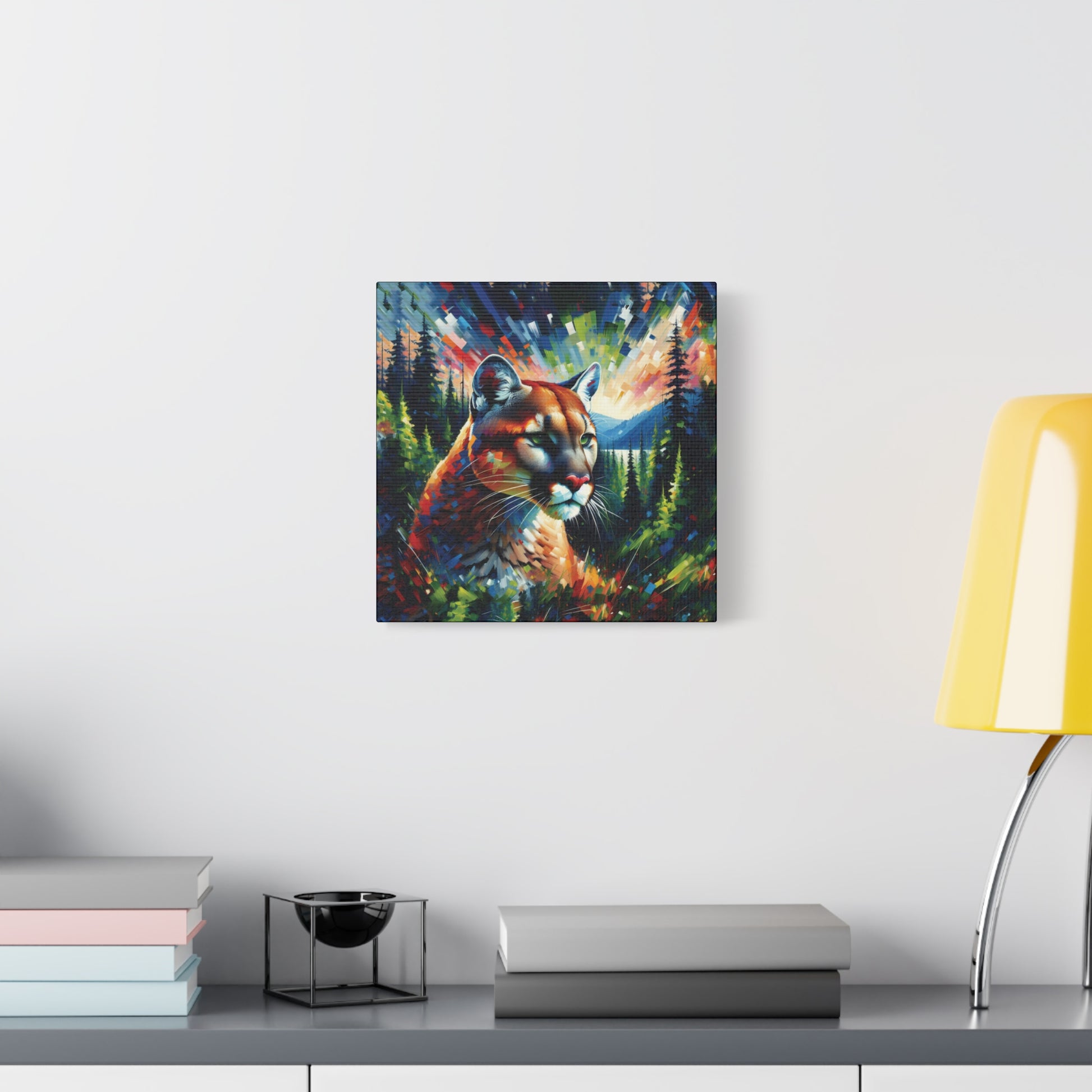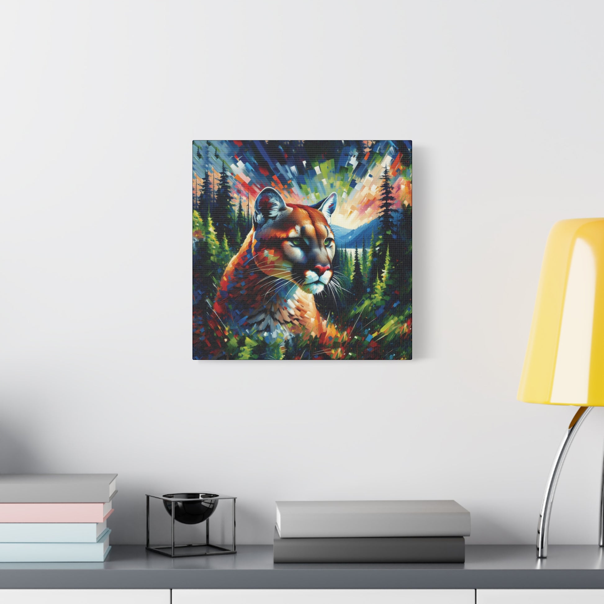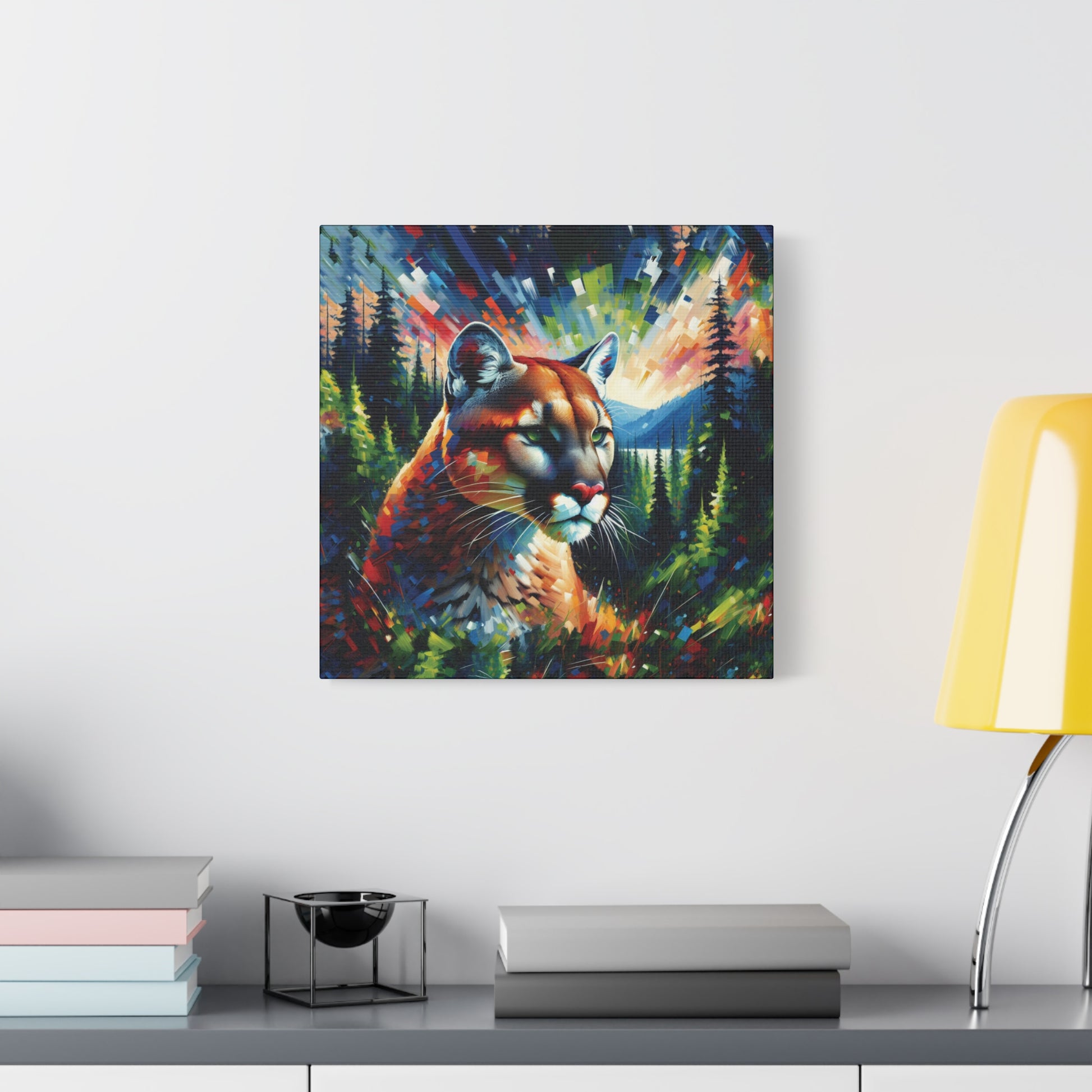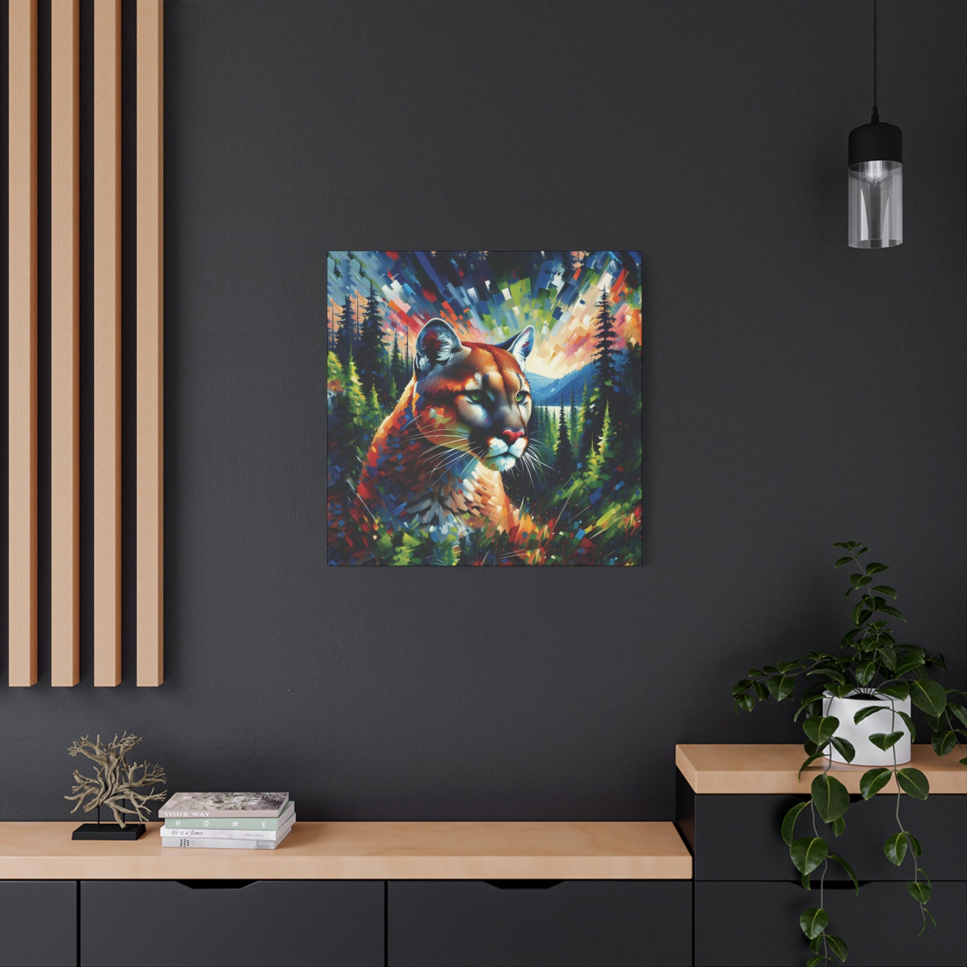 Experience a vibrant and colorful cougar canvas print that brings a stunning Expressionist Art look into the cougar's soul as he surveys his domain. Perfect for art lovers and wildlife enthusiasts, this piece adds a bold and captivating touch to any room. Ideal for wildlife lovers, art enthusiasts, and nature enthusiasts. Perfect addition for home decor, wildlife appreciation, and art collections.