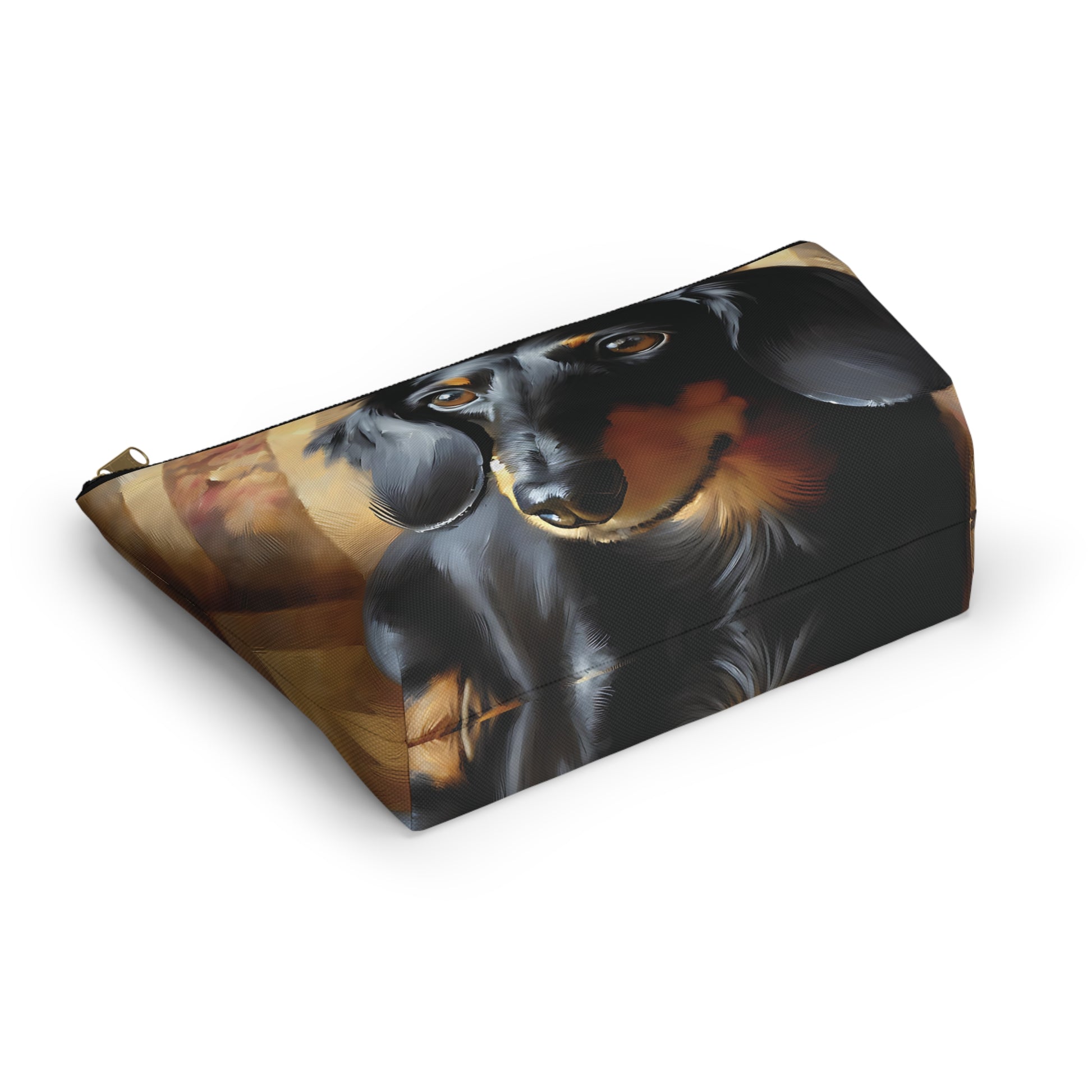 Introducing our stylish Accessory Pouch, the perfect blend of artistry and practicality. This pouch features a black and tan dachshund relaxing on a sofa. Why not add a pop of personality to your everyday accessories? Whether you're organizing makeup, craft supplies, or miscellaneous items, this pouch brings organization with a splash of flair. It's ideal for doxie lovers and art enthusiasts who appreciate unique designs. Perfect for gifting during holidays, birthdays, or just as a treat for yourself, this pouch reminds you to embrace creativity and playfulness in your daily life. Celebrate special occasions with a functional accessory that reflects your artistic spirit!