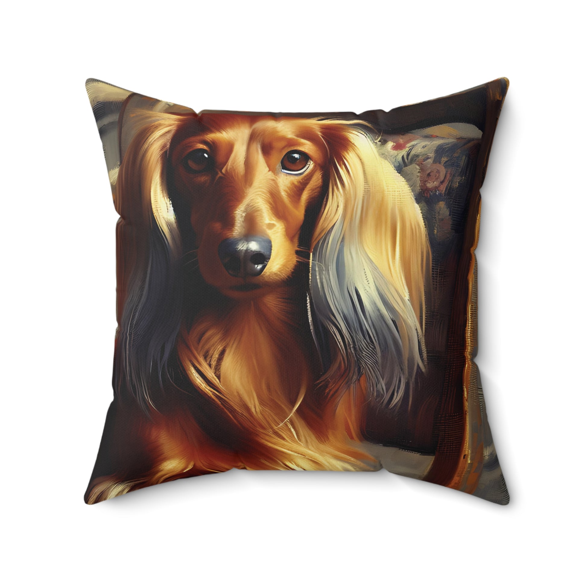 Our beautiful Longhaired Dachshund Impressionist Style Art Pillow gives a cozy and artistic touch to your home decor. Perfect for Dachshund lovers and art enthusiasts. Ideal for adding a heart-warming touch to your bedroom, living room or den! Makes a great gift for Dachshund owners.