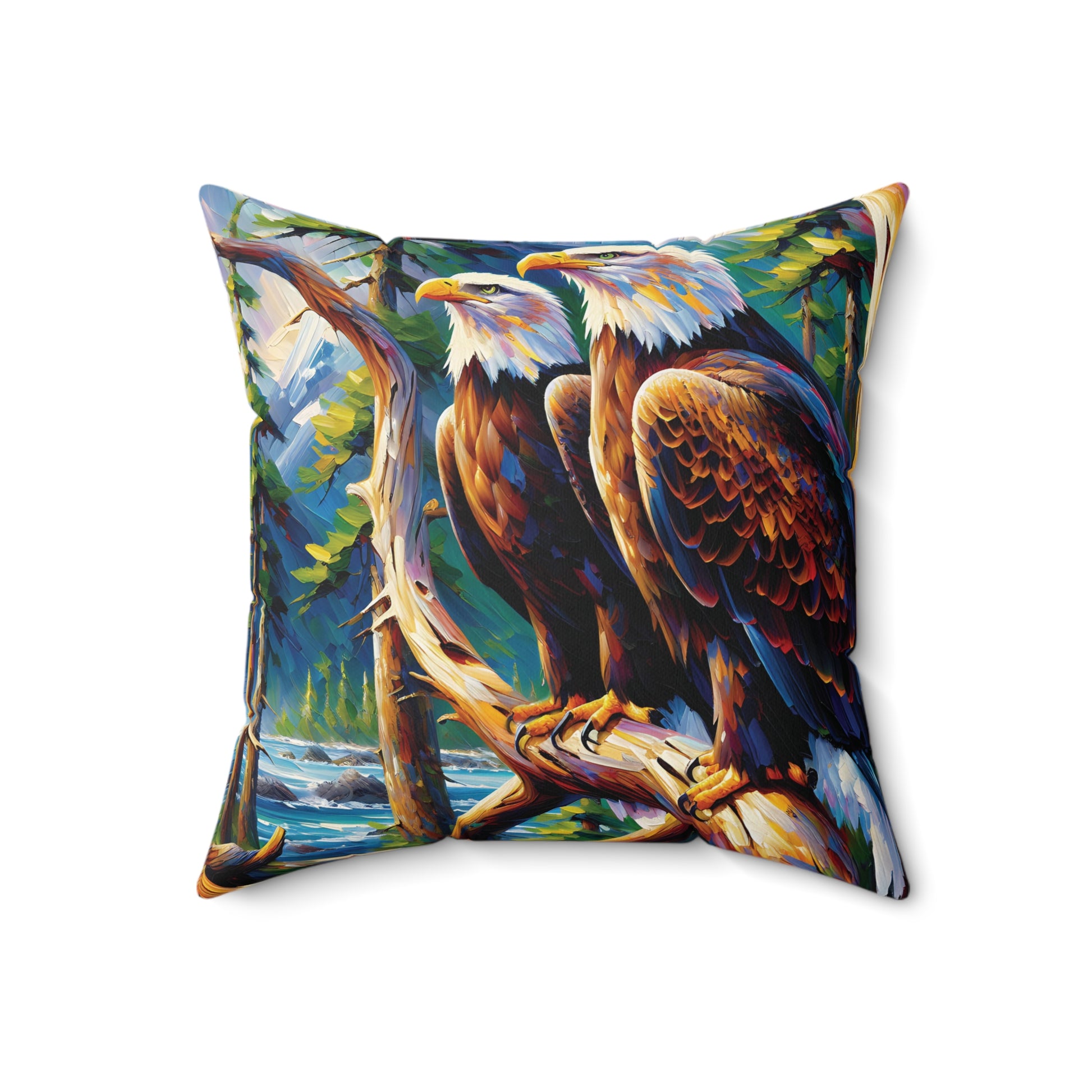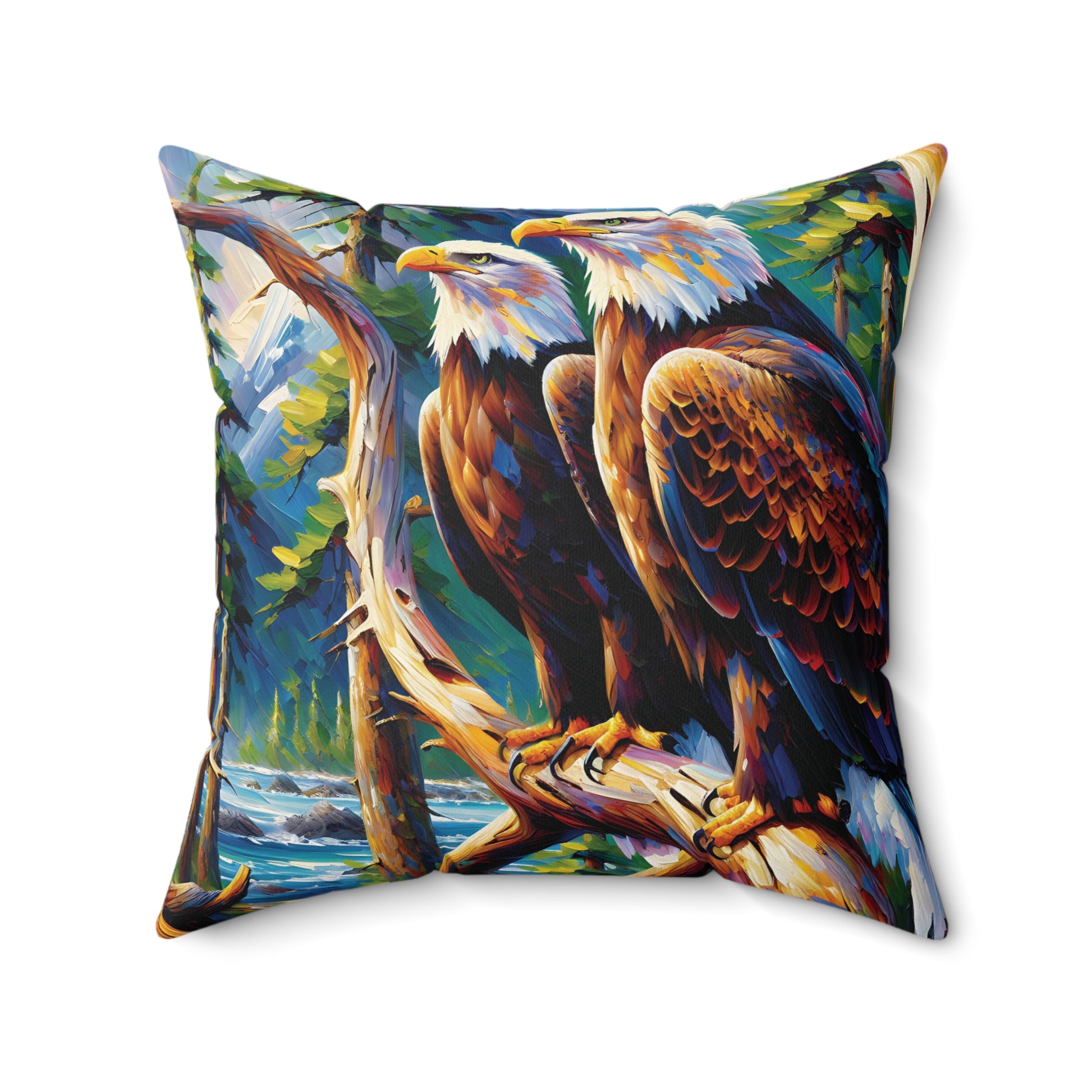 Eagle Pillow - Bald Eagles by a River Impressionist Style Art on Faux Suede Pillow
