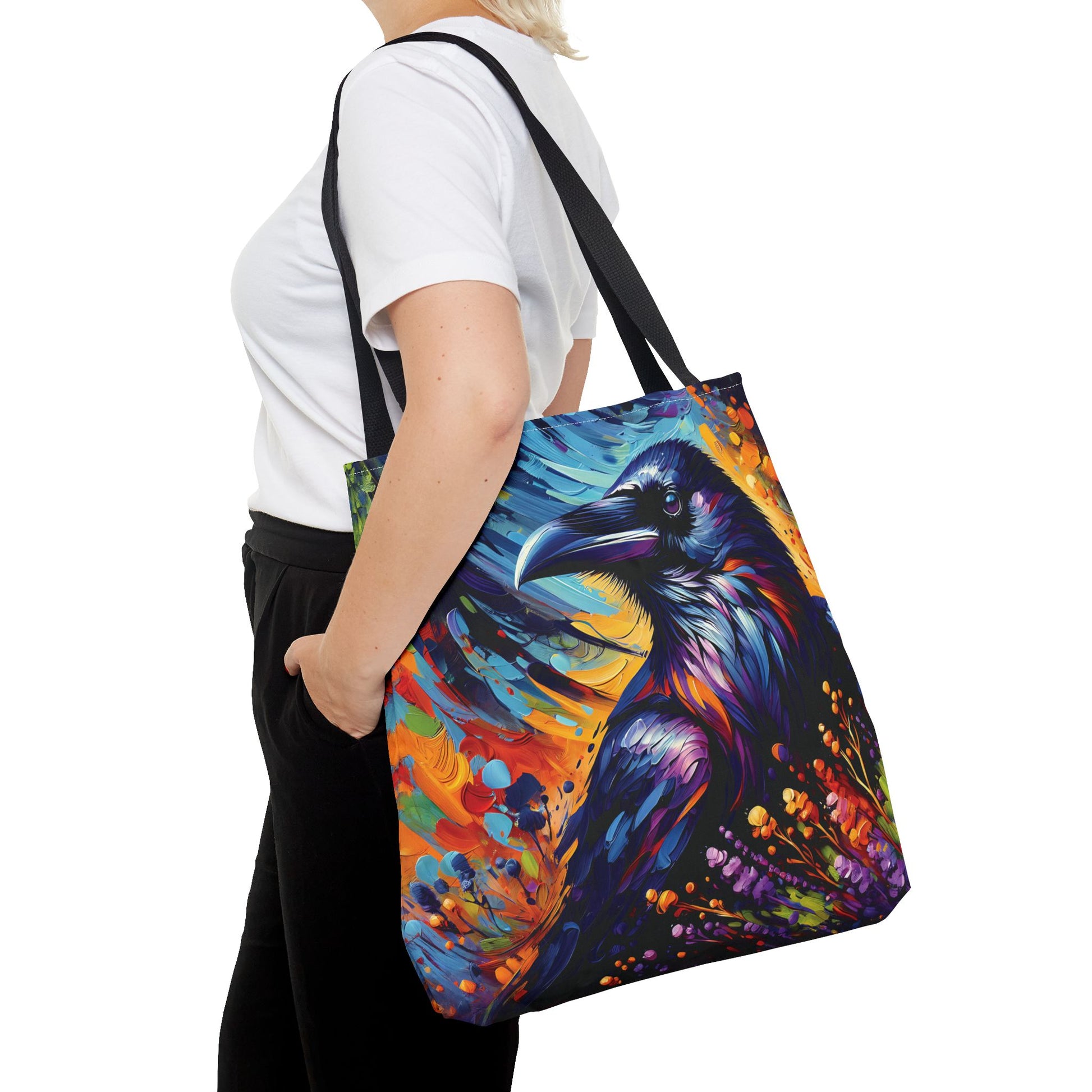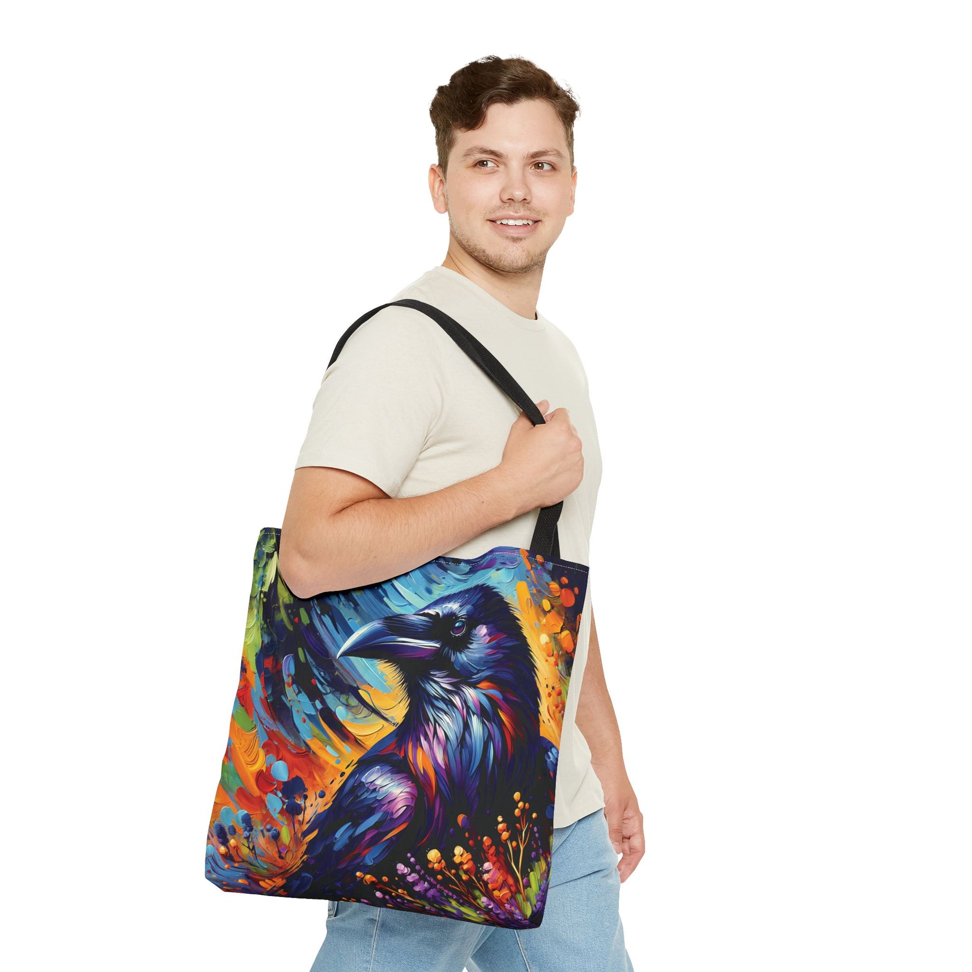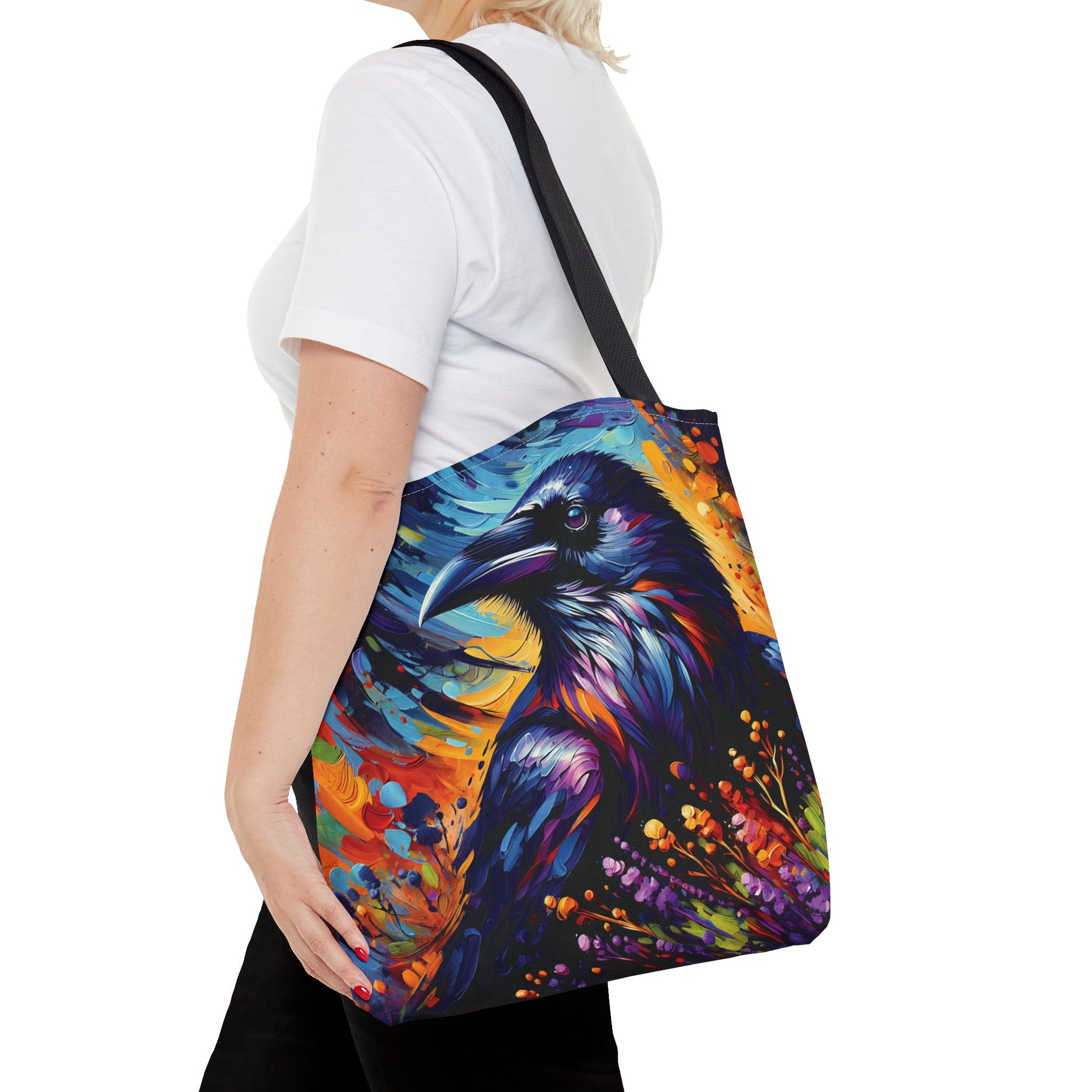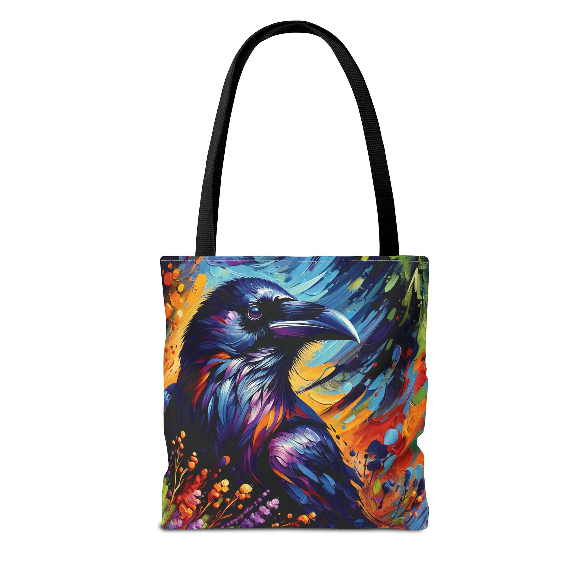 Colorful Raven Portrait Tote Bag - Stylish and Functional for Corvid Lovers