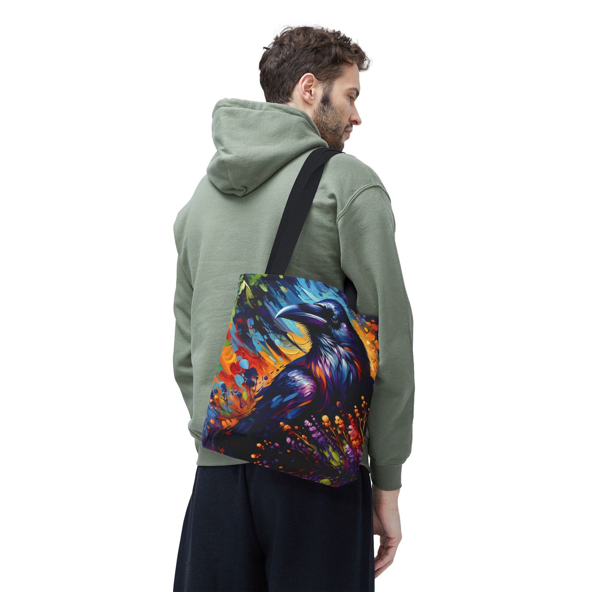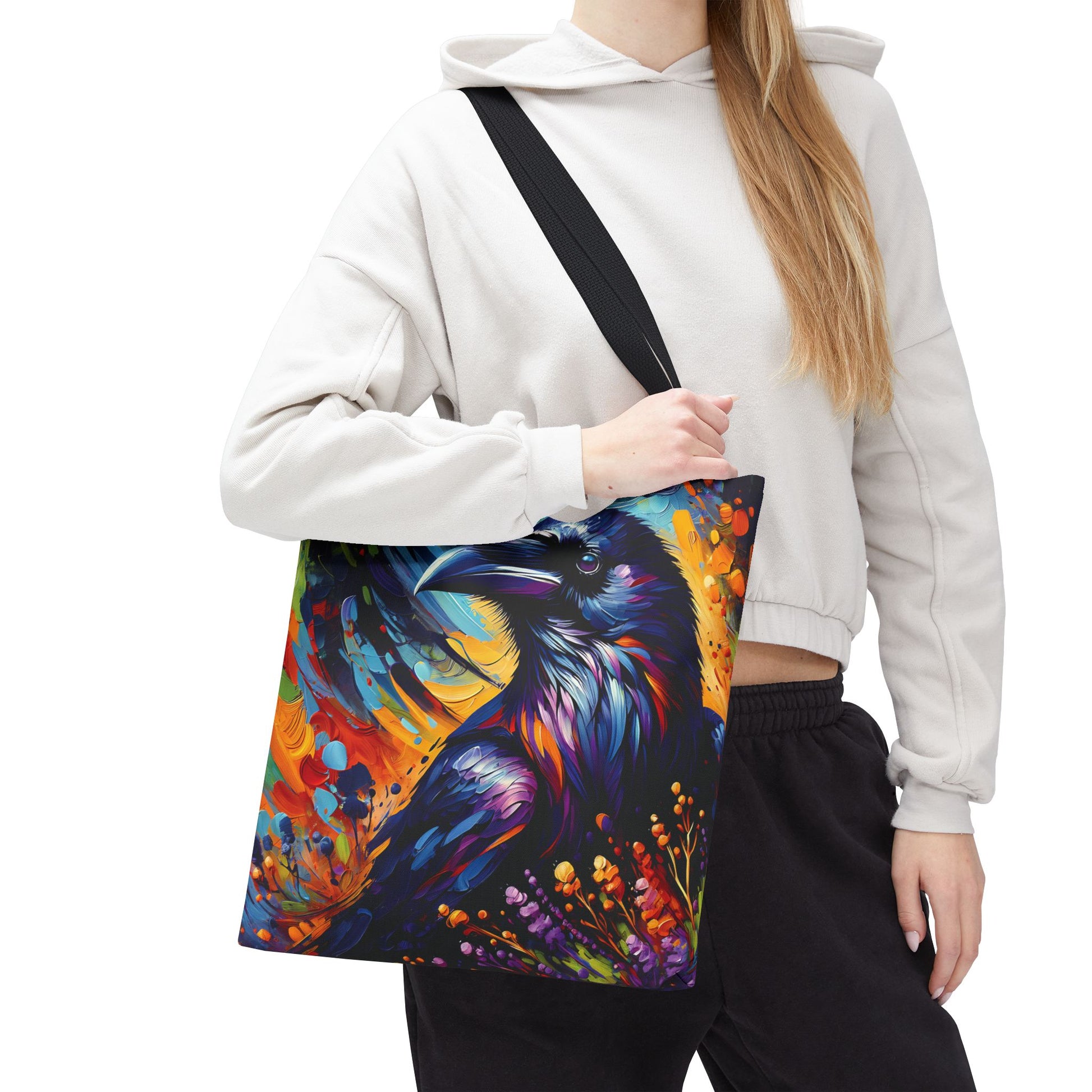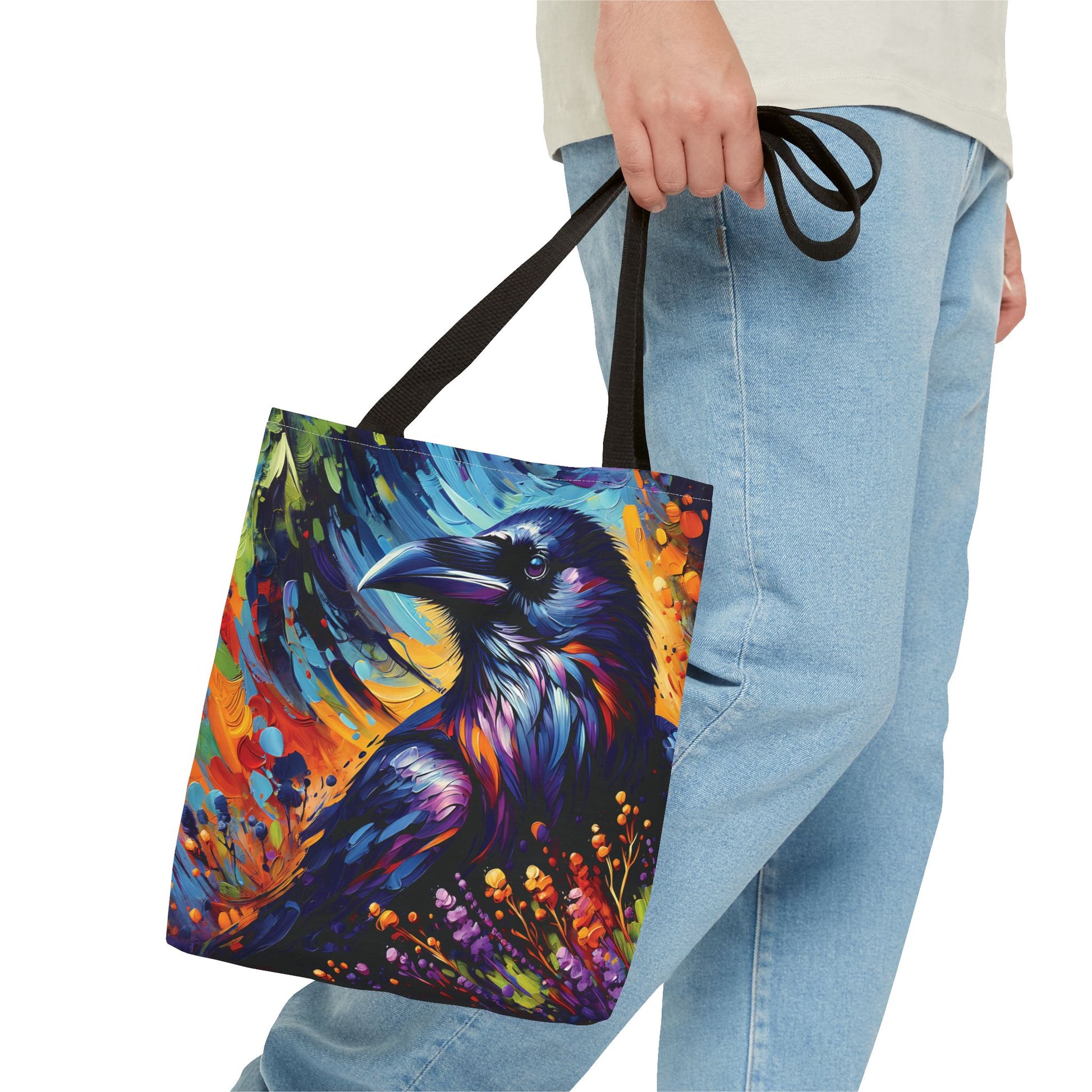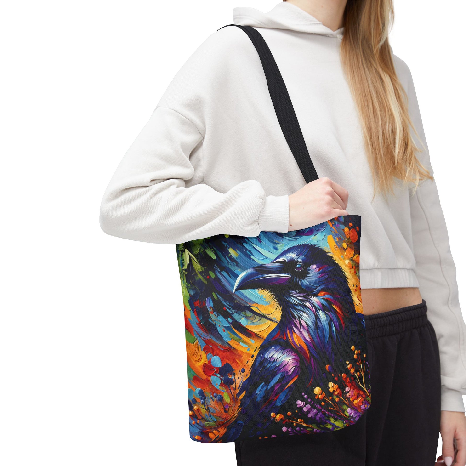 Colorful Raven Portrait Tote Bag - Stylish and Functional for Corvid Lovers