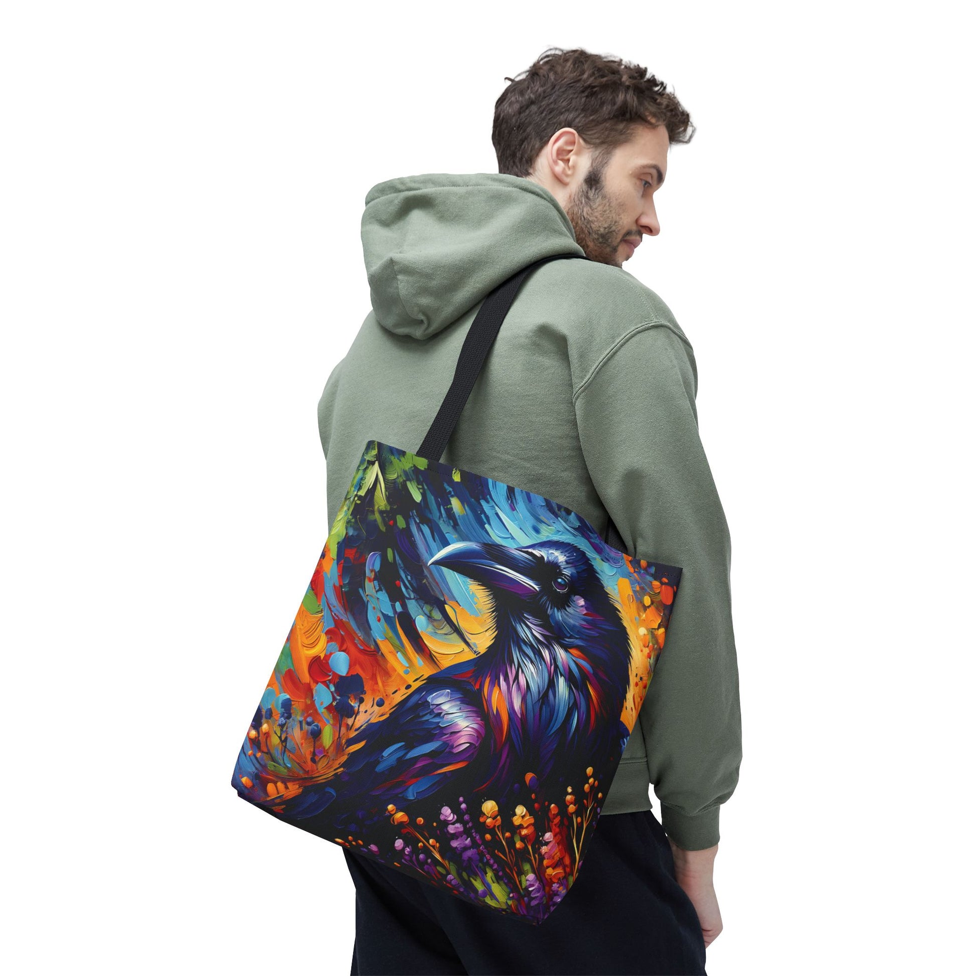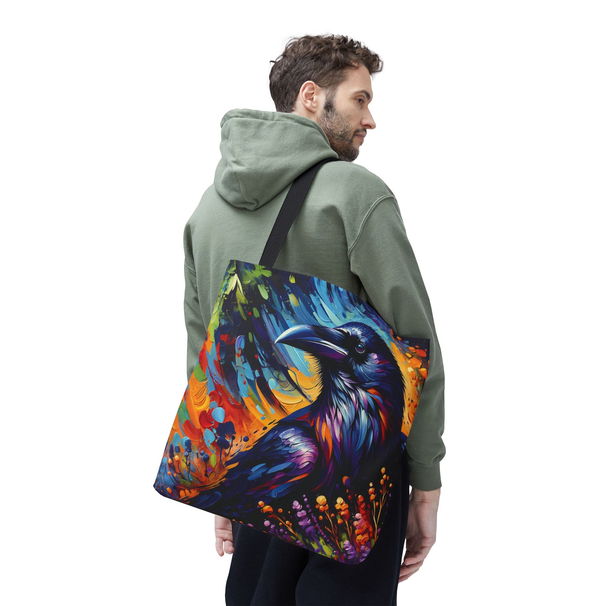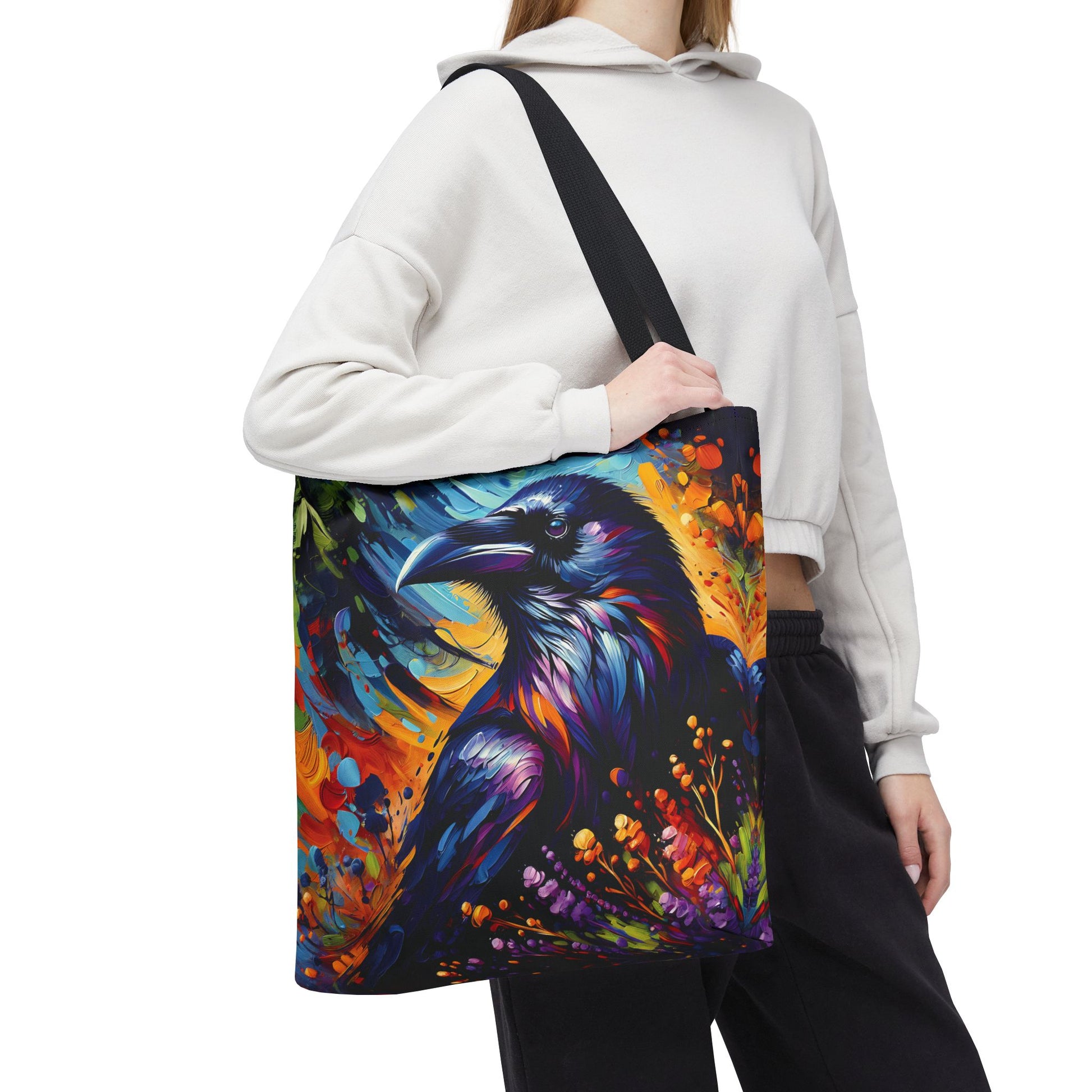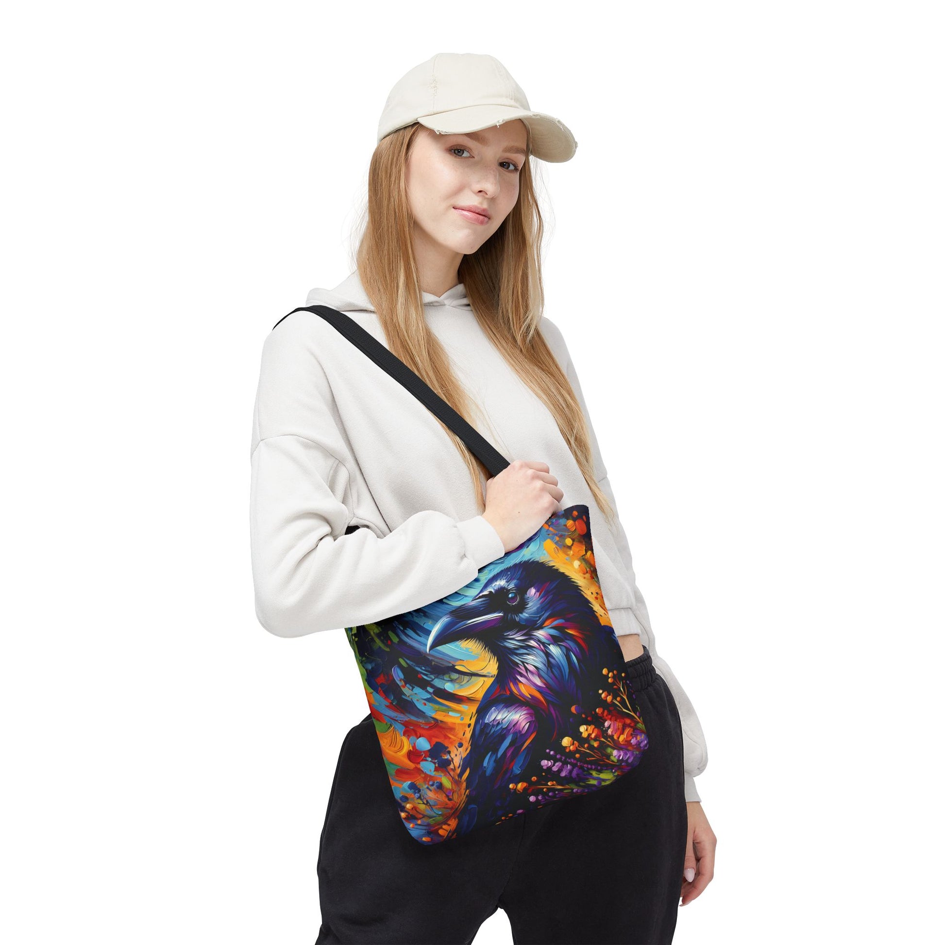 Colorful Raven Portrait Tote Bag - Stylish and Functional for Corvid Lovers