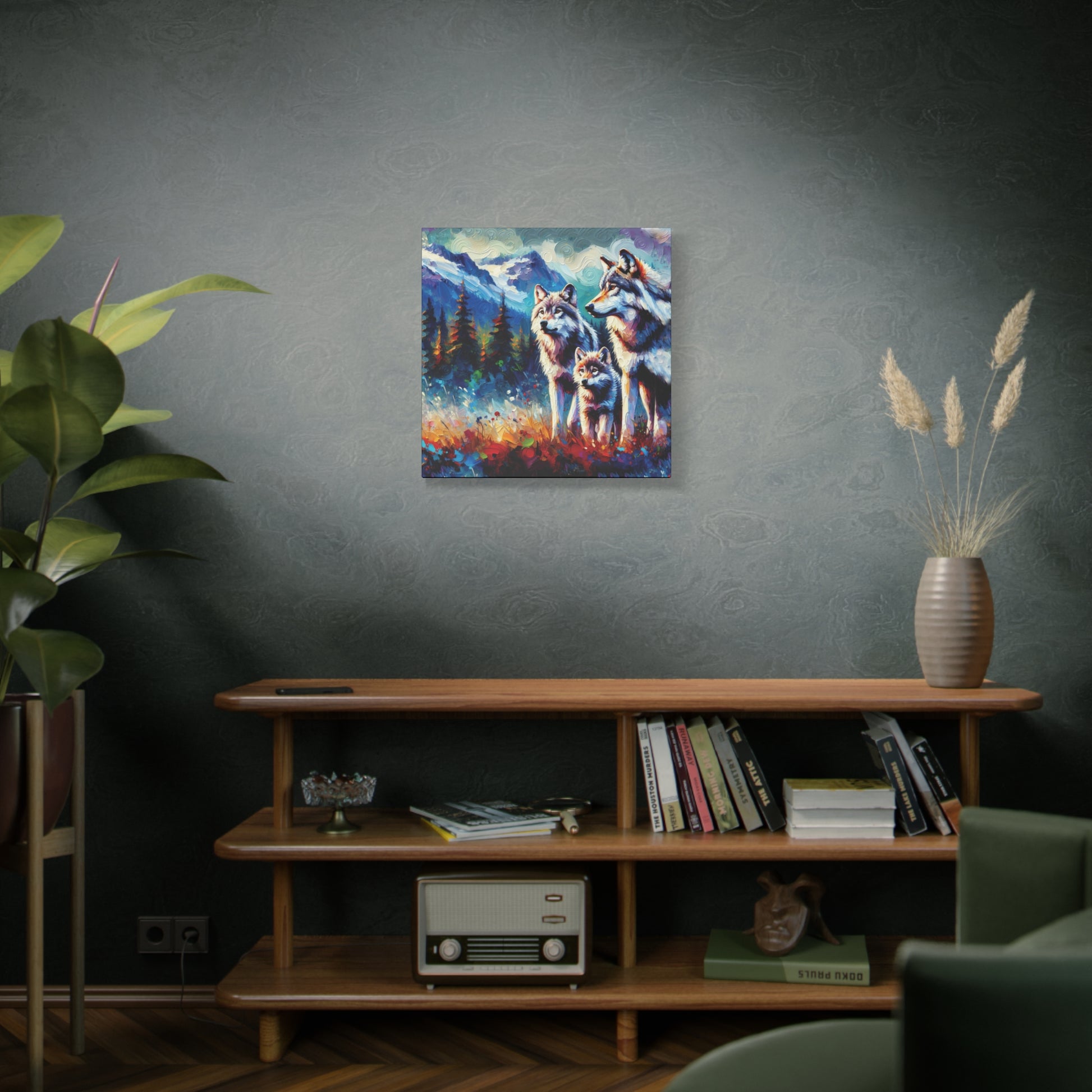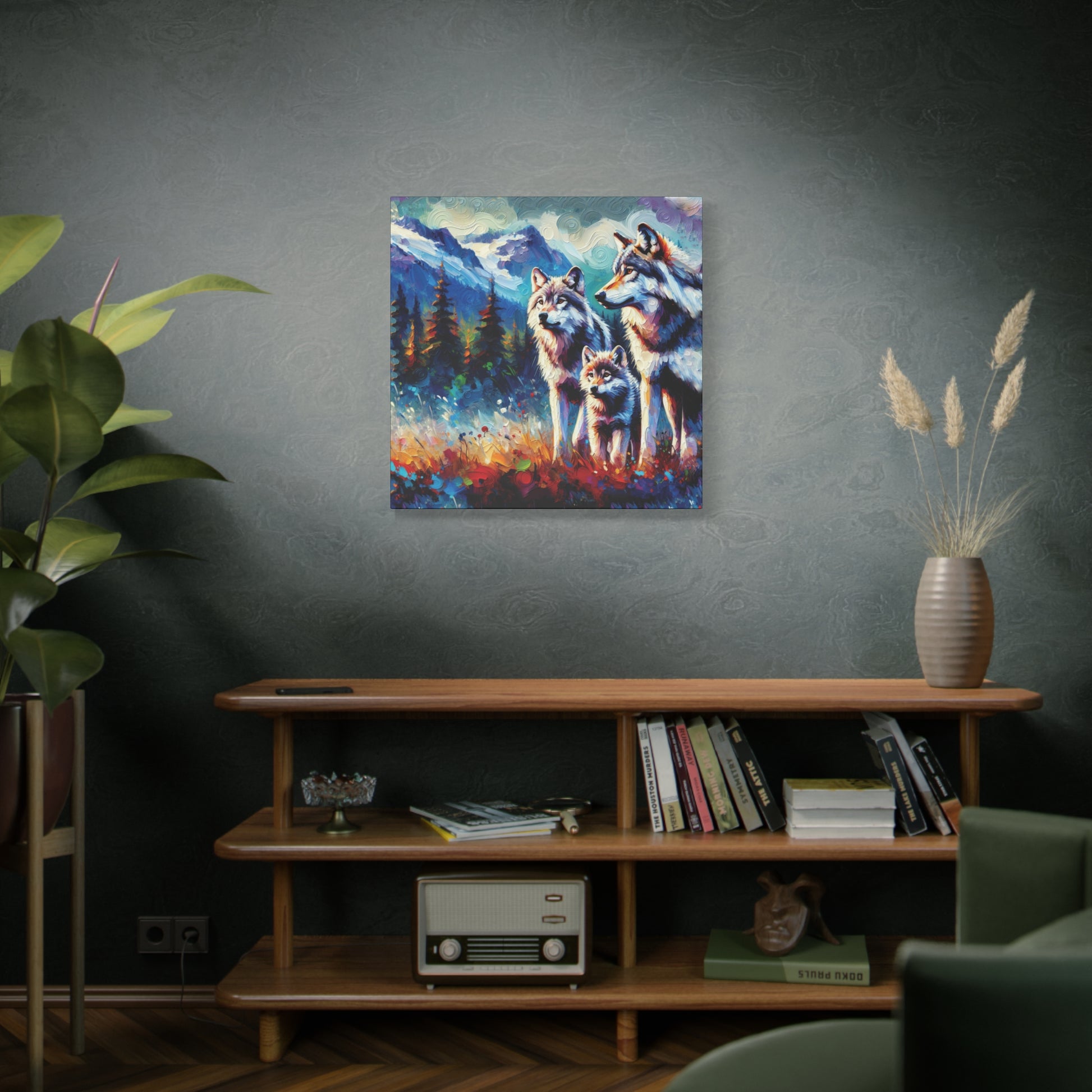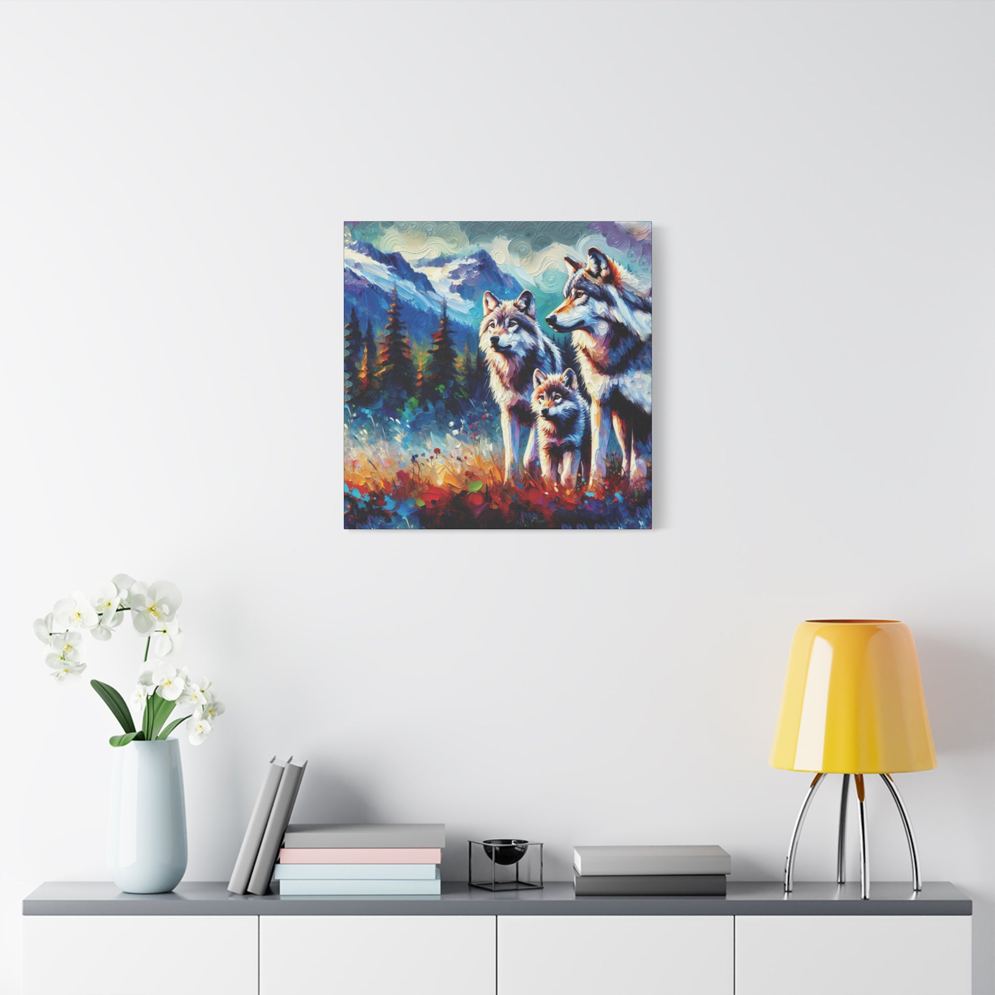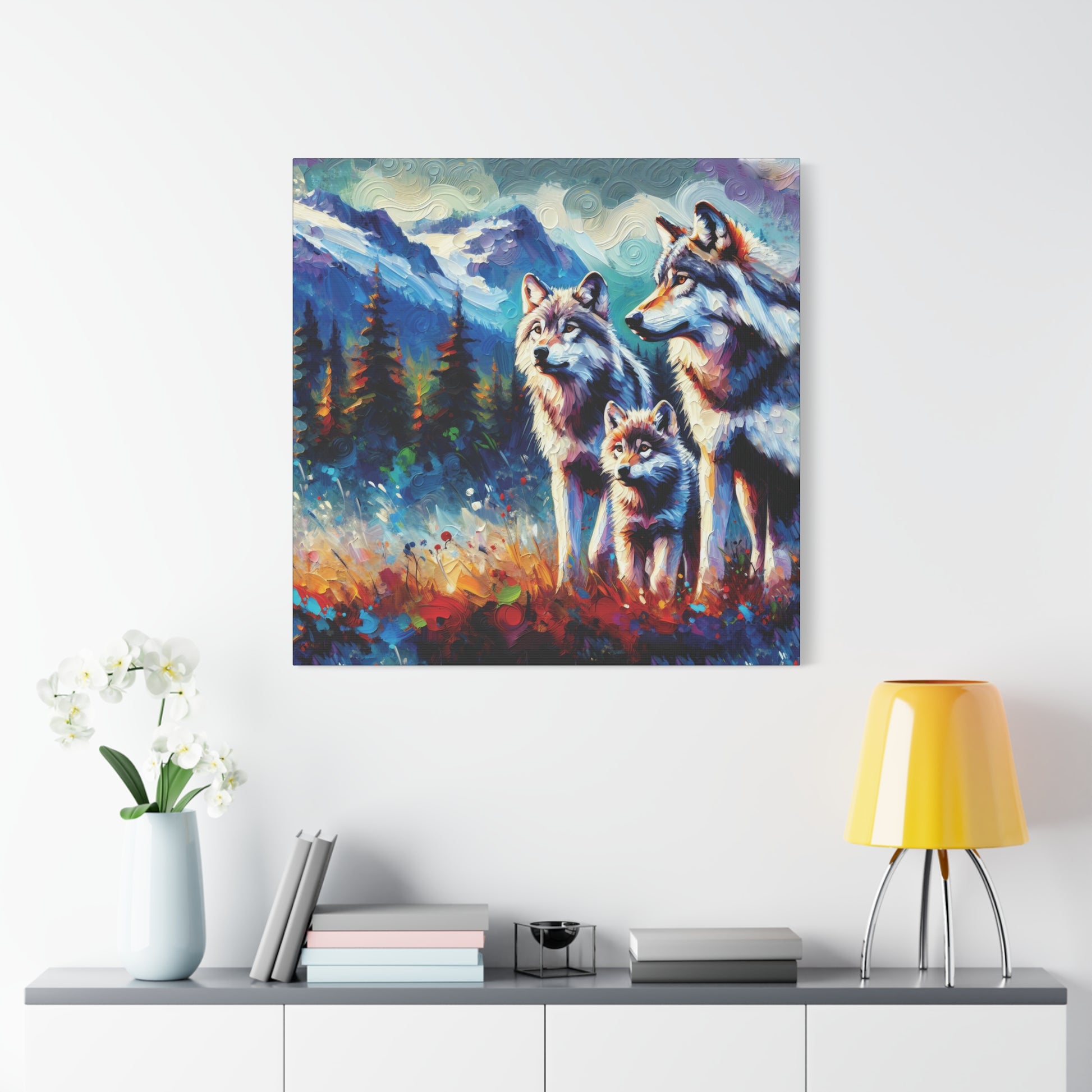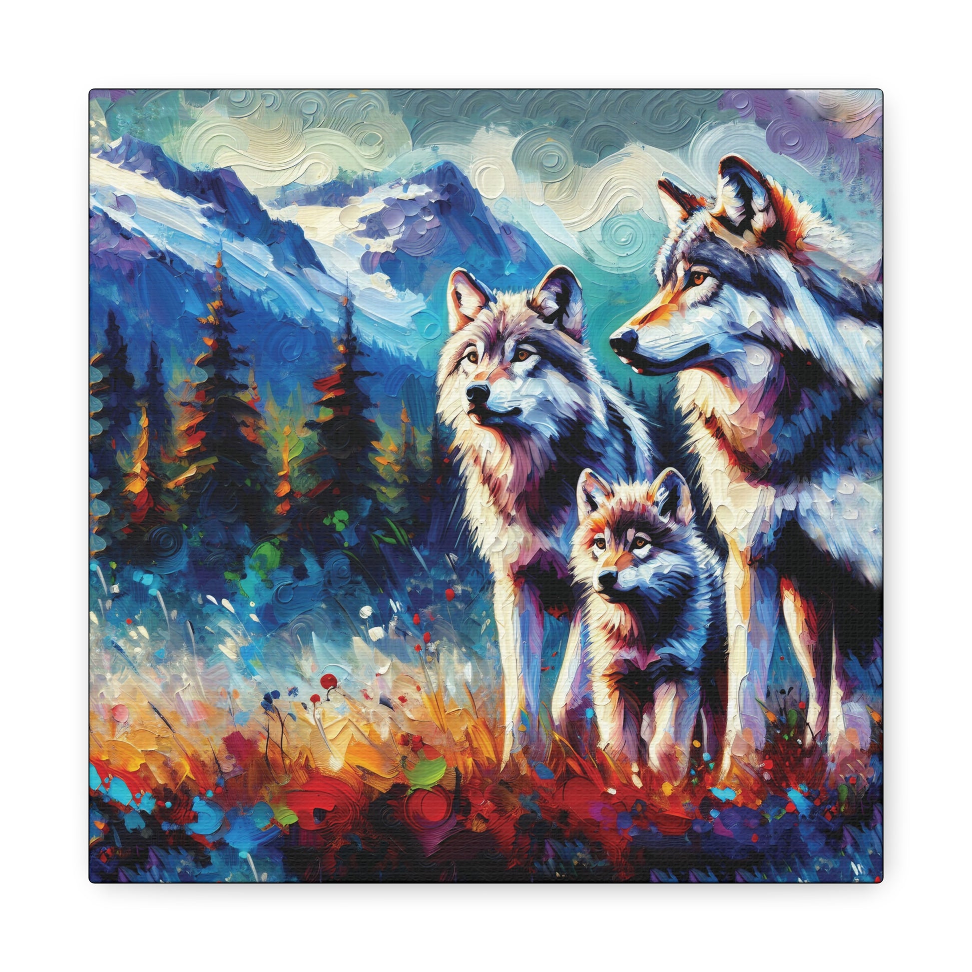 Gray Wolf Family Canvas Wall Art - Expressionist Canvas Print