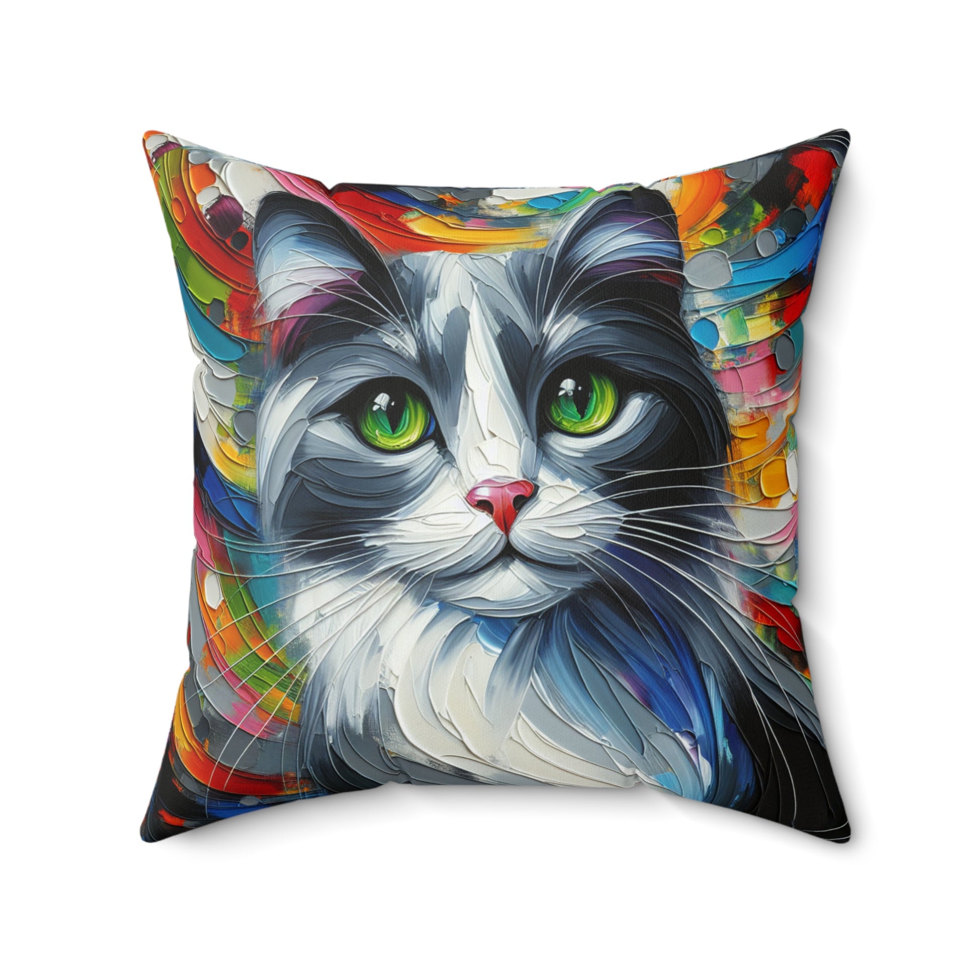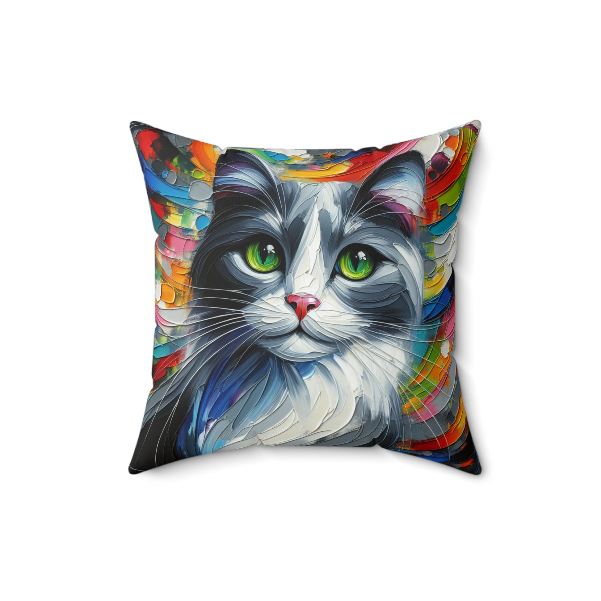 Grey and White Cat - Square Throw Pillows