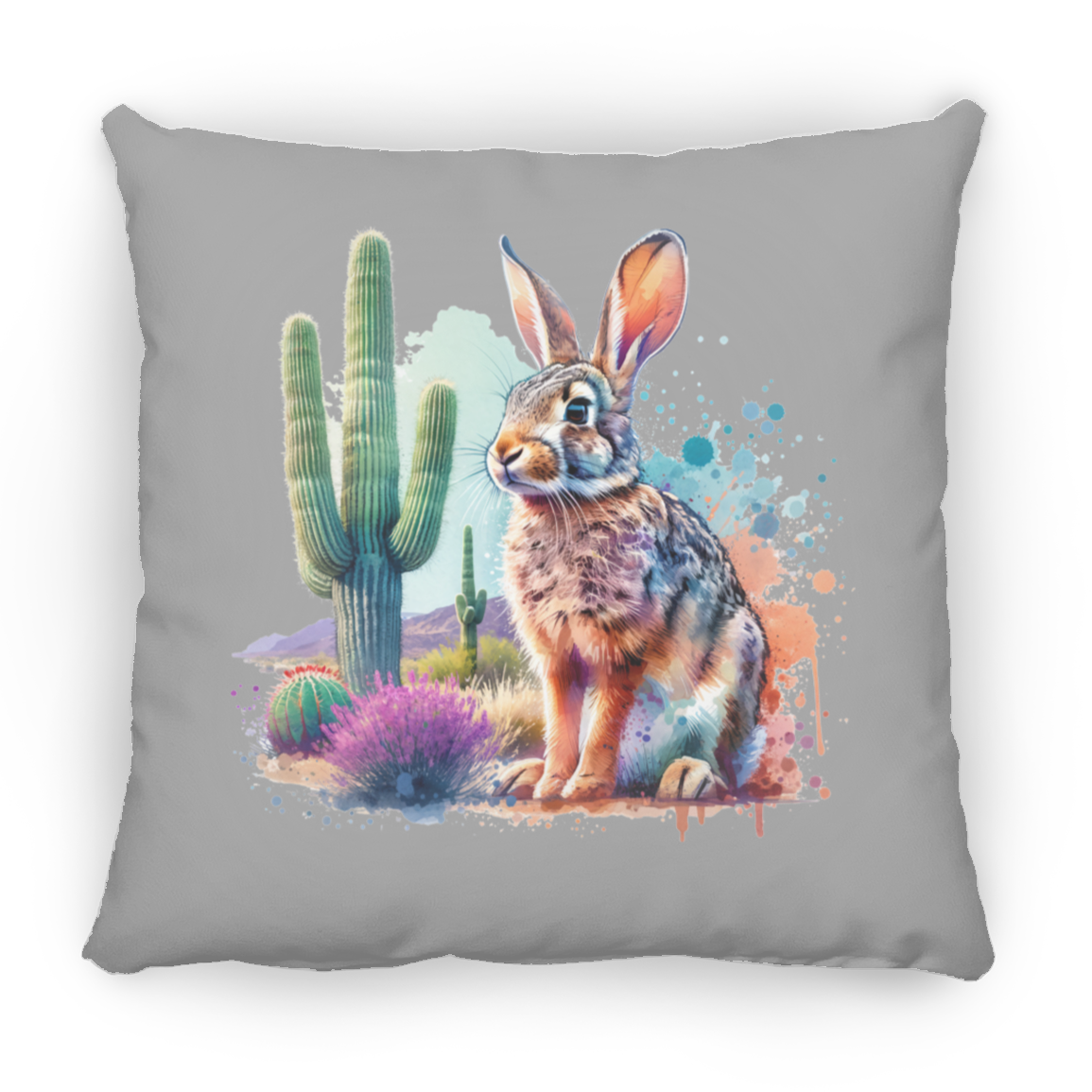Jackrabbit with Saguaro - Throw Pillows