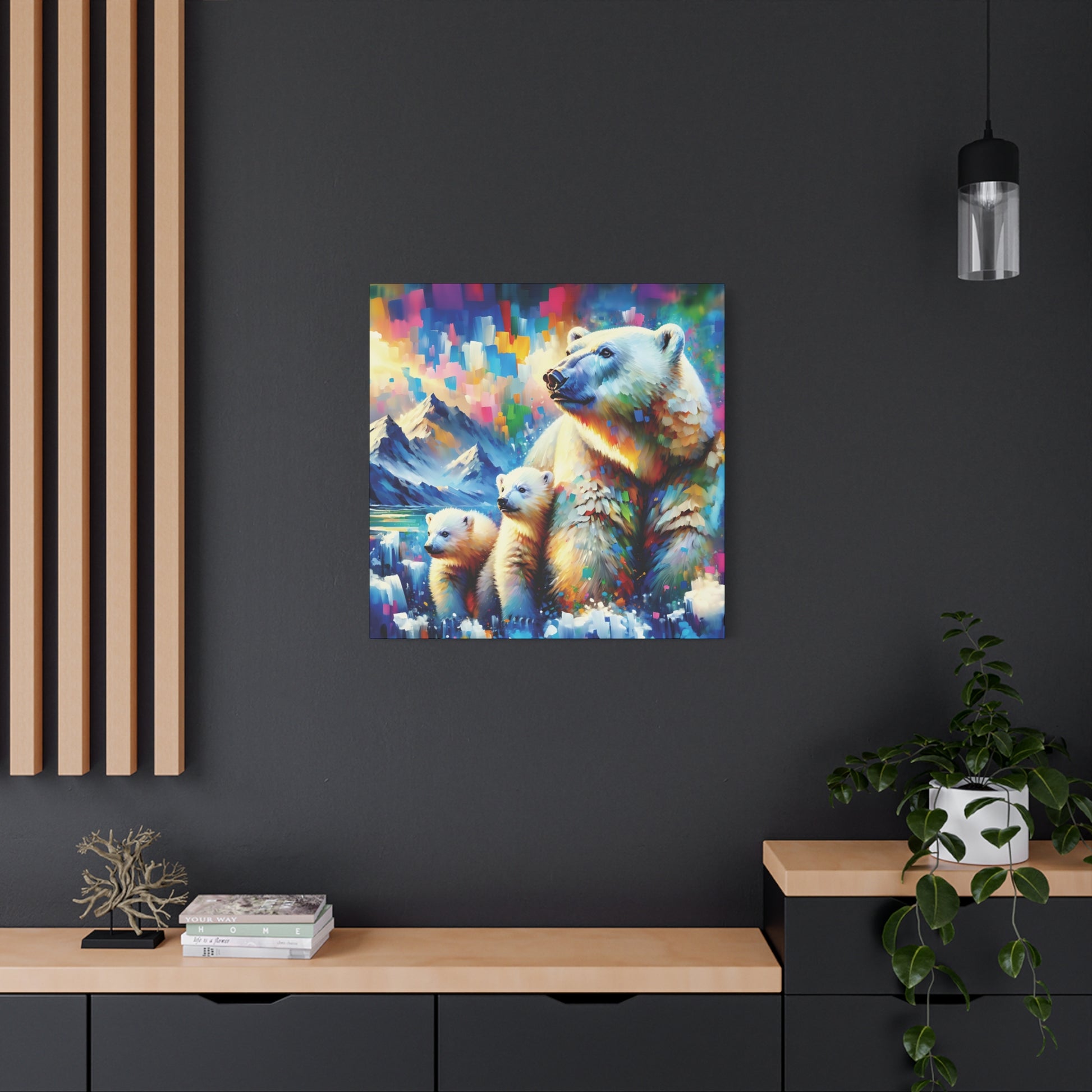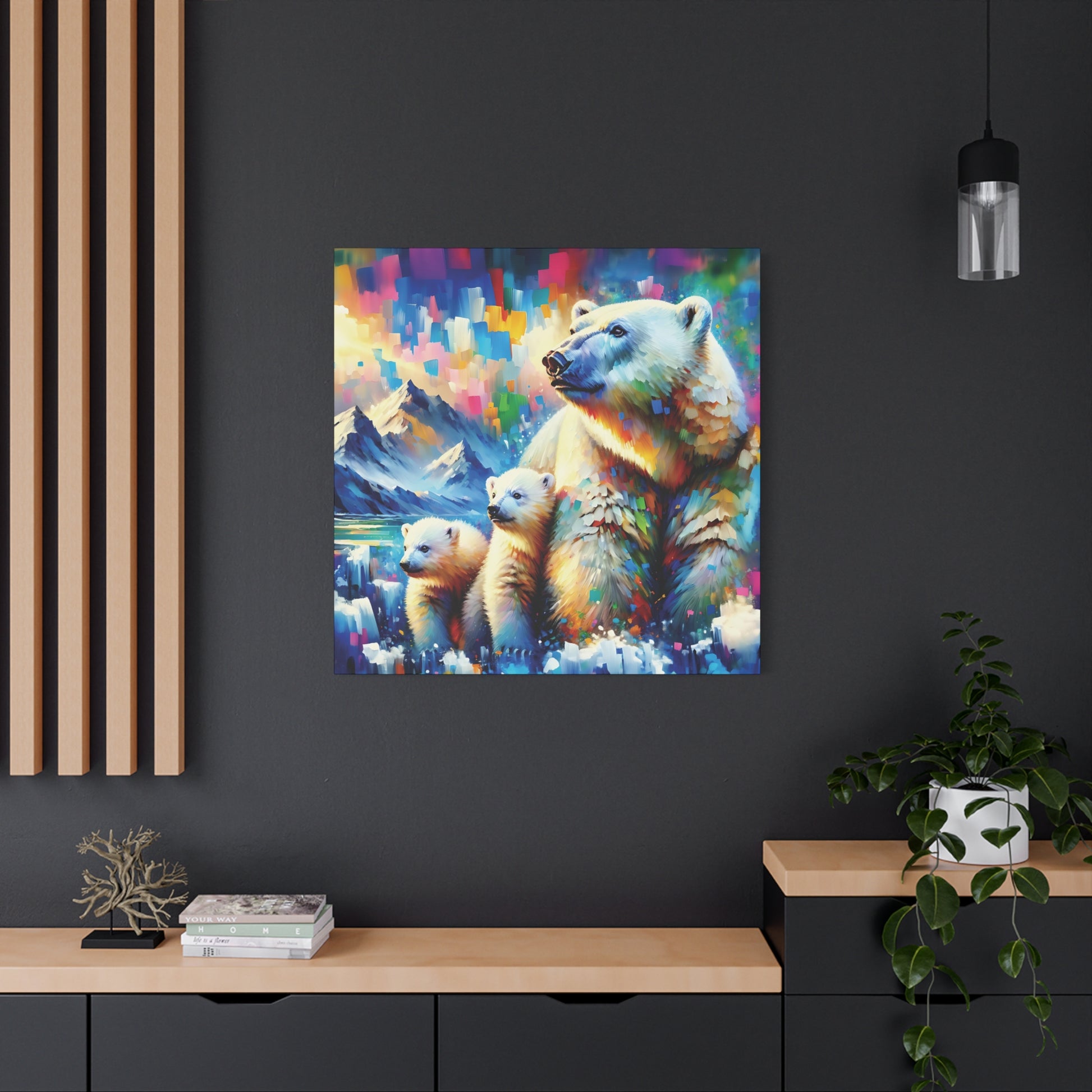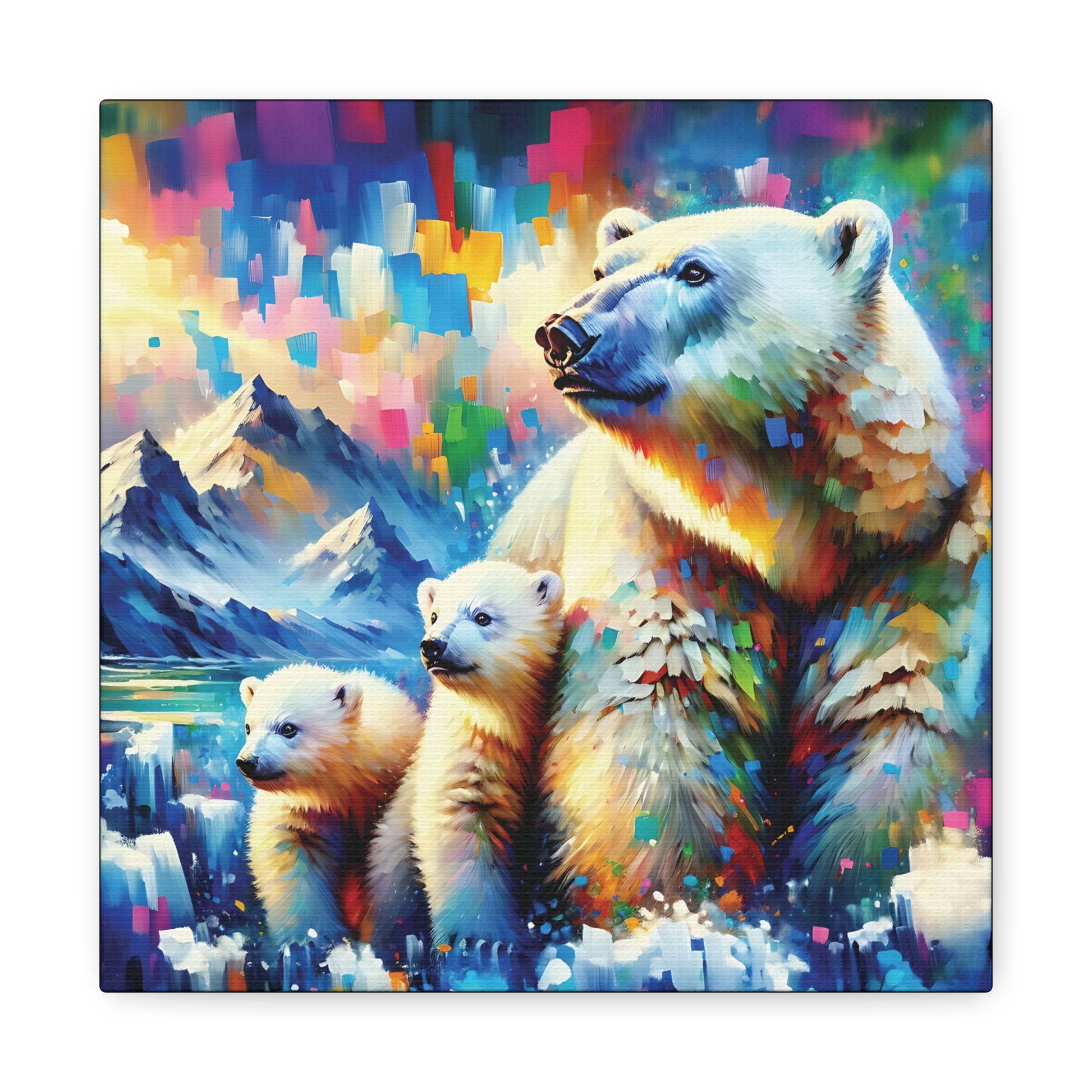 Polar Bear with Cub Pair Expressionist Style Canvas Wall Art