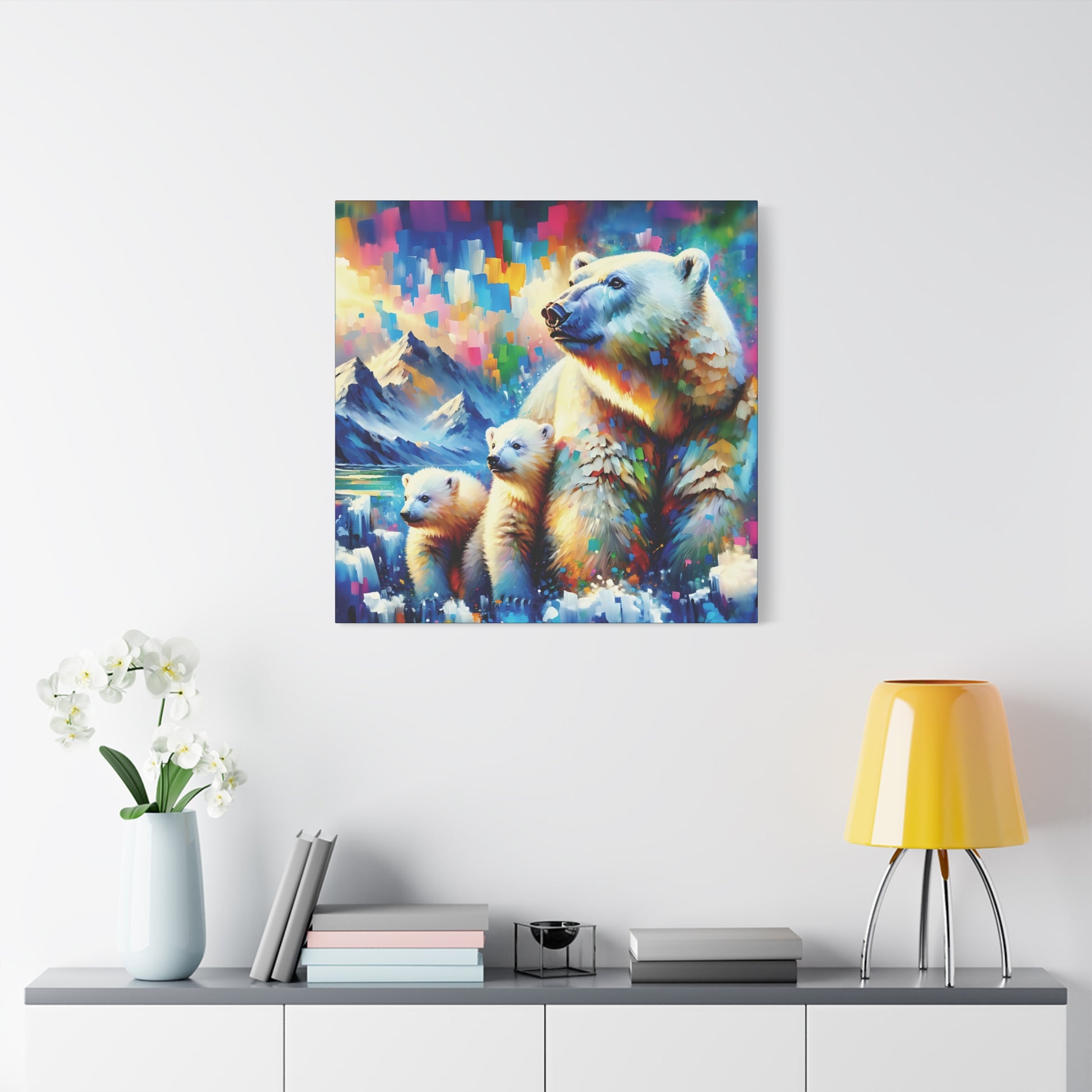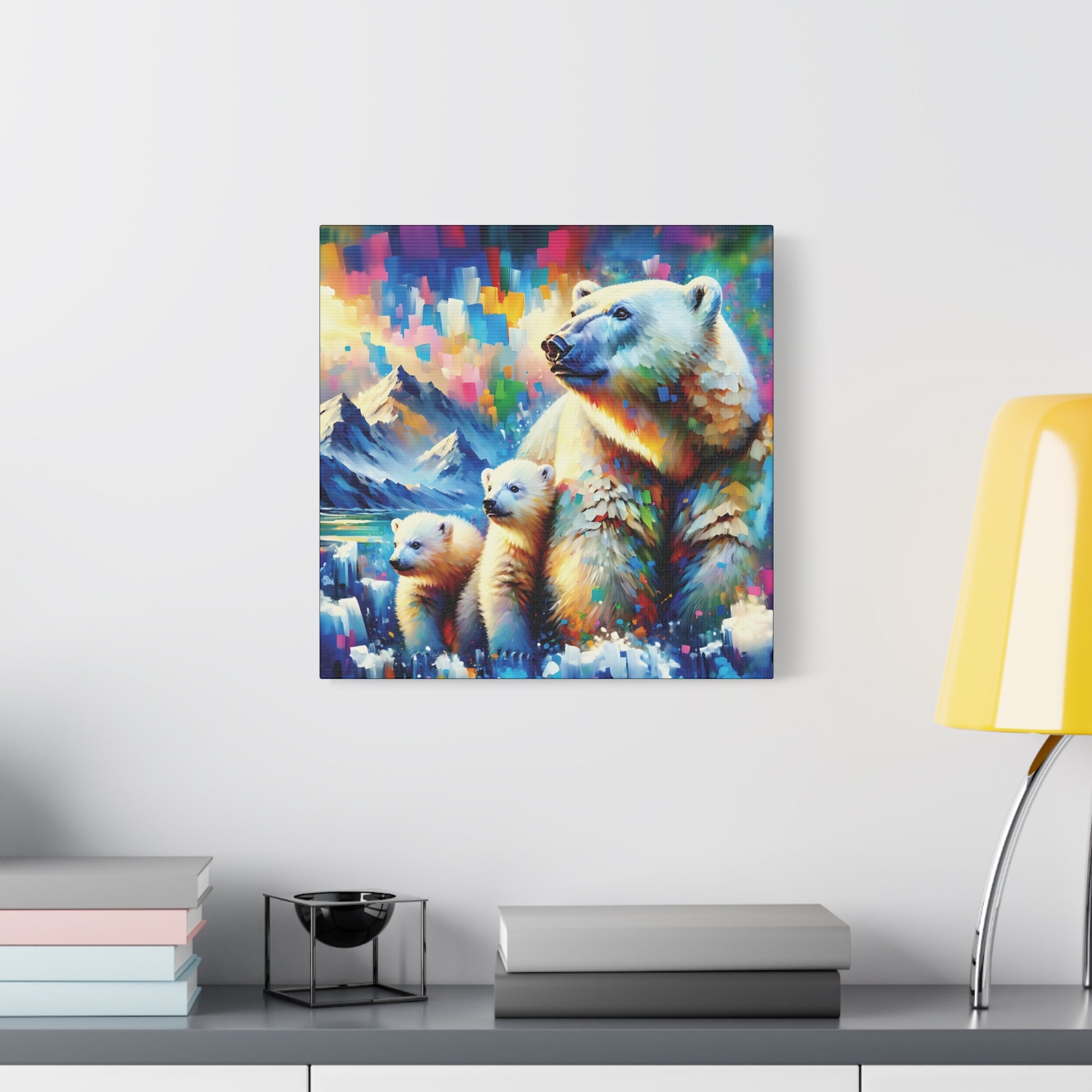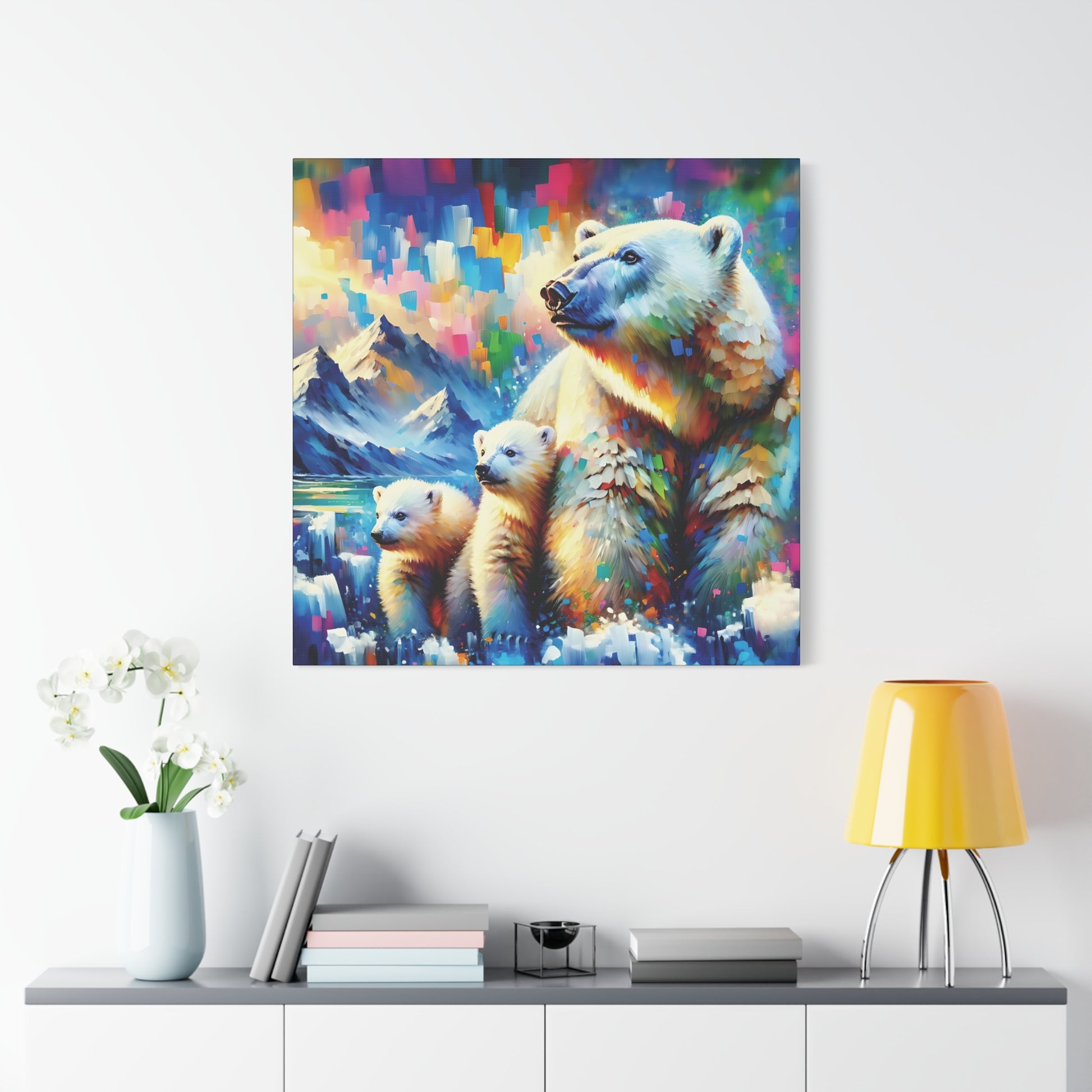 Bring a touch of colorful and fun expressionist style to your walls with this Polar Bear with Cub Pair canvas wall art. Perfect for animal lovers and those who appreciate unique art pieces, this canvas is versatile and fits into any room decor effortlessly. Ideal for gifting during Christmas, Mother's Day, or birthdays.