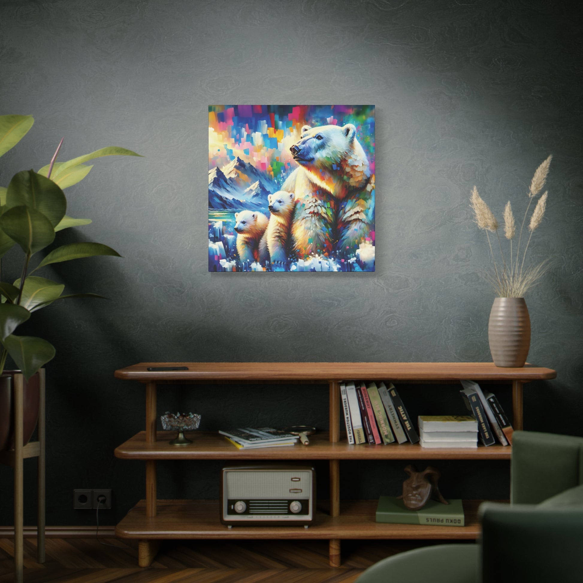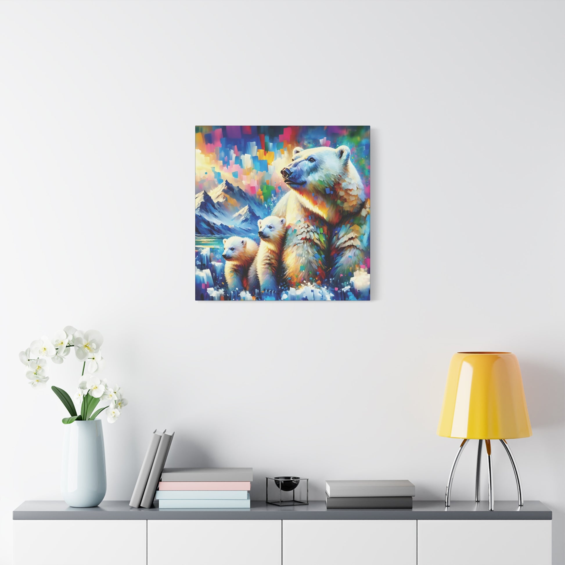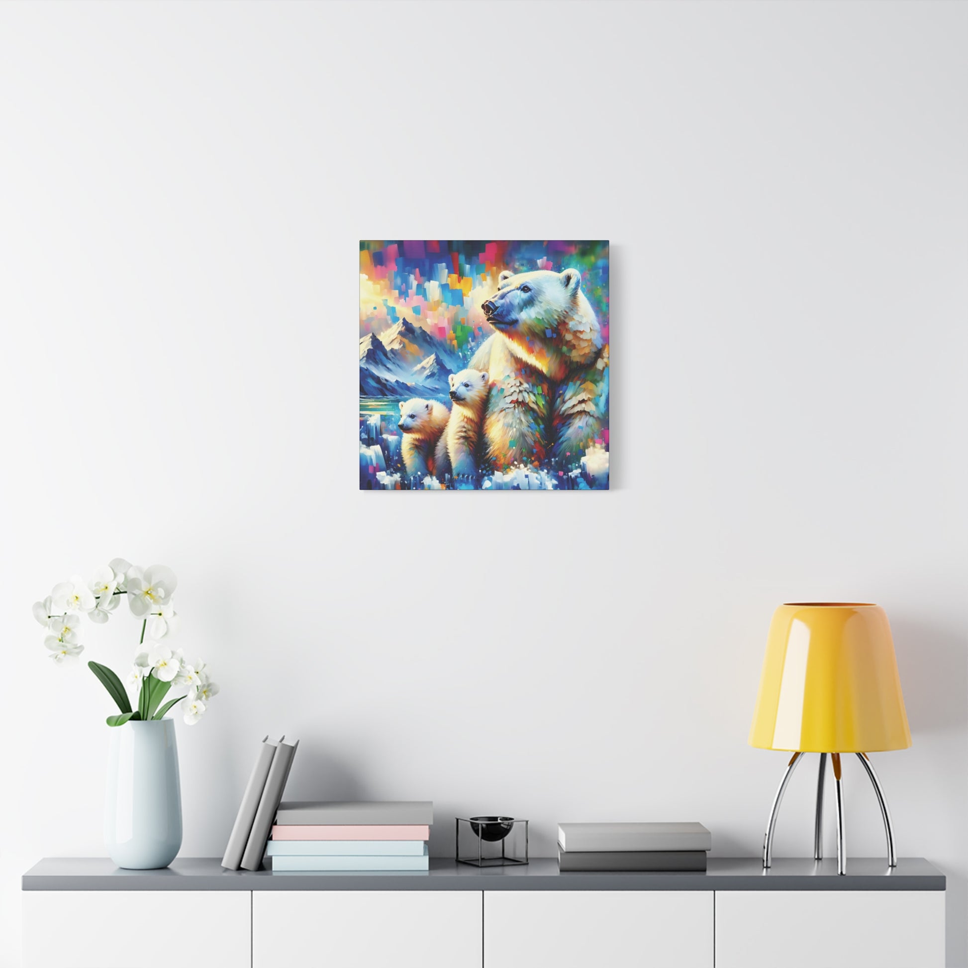 Bring a touch of colorful and fun expressionist style to your walls with this Polar Bear with Cub Pair canvas wall art. Perfect for animal lovers and those who appreciate unique art pieces, this canvas is versatile and fits into any room decor effortlessly. Ideal for gifting during Christmas, Mother's Day, or birthdays.