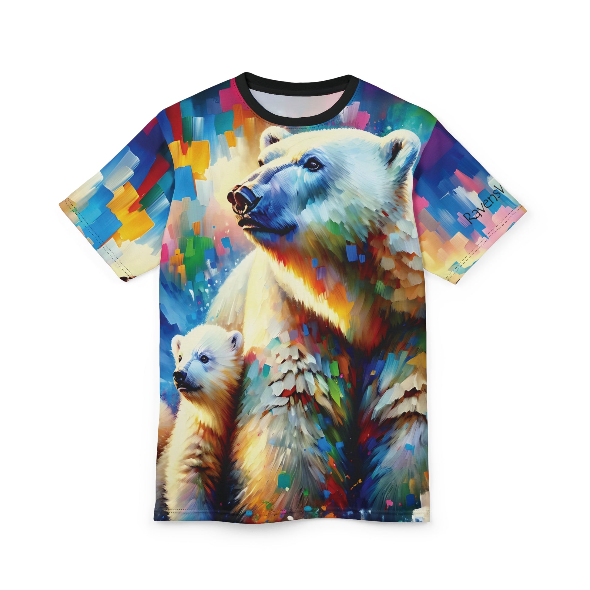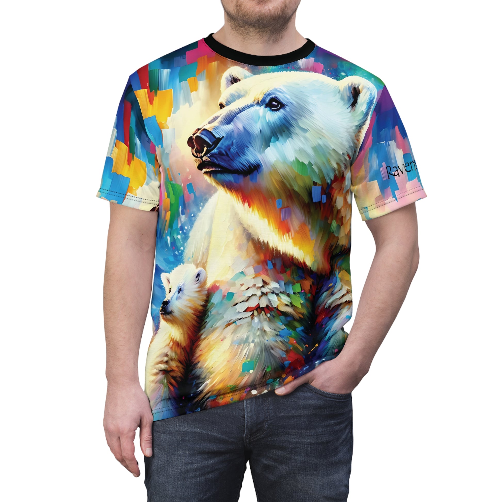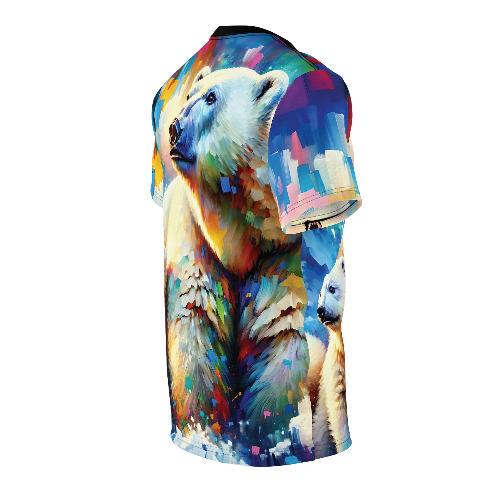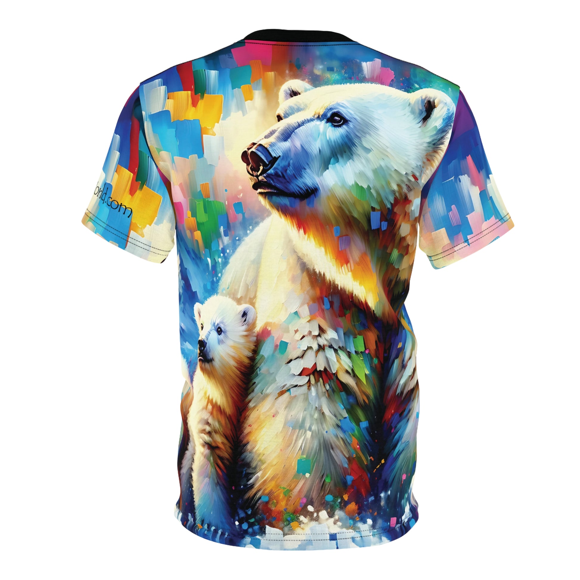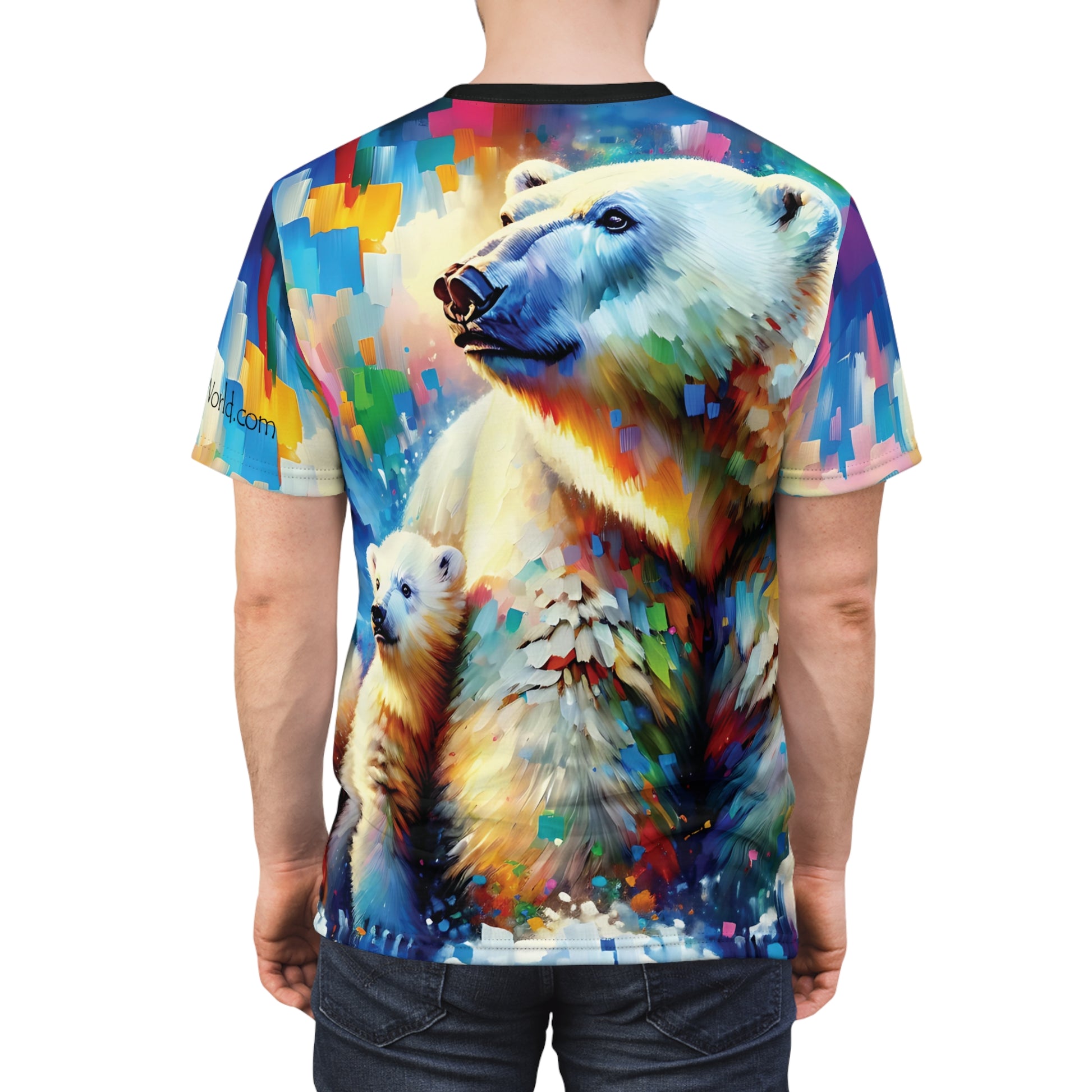 Polar Bear with Cub Vibrant Art Tee | Colorful Unisex Cut & Sew T-Shirt, Wildlife Apparel, Unique Graphic Tee, Birthday Gift