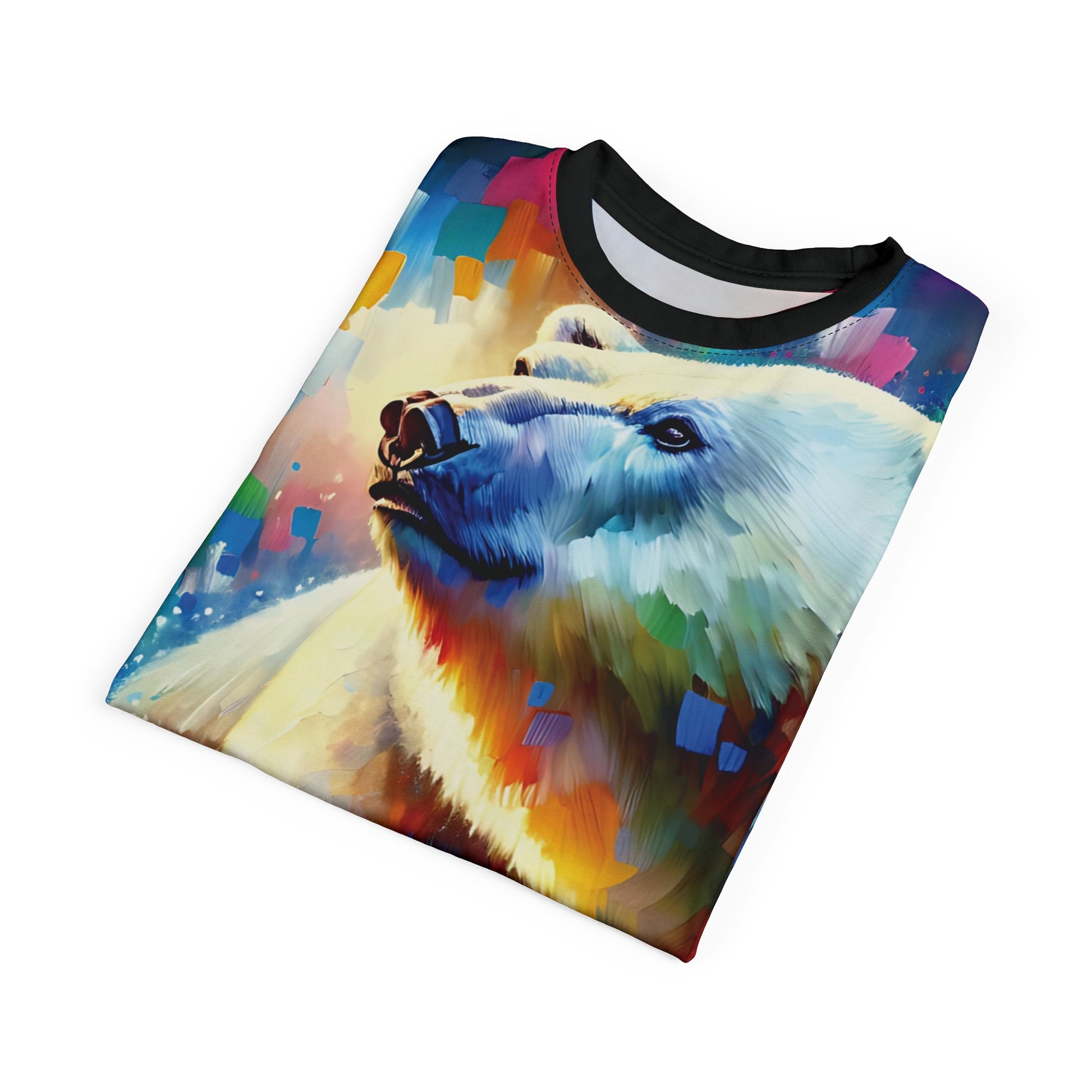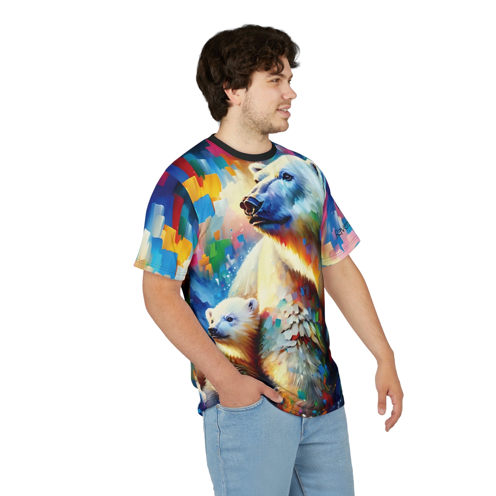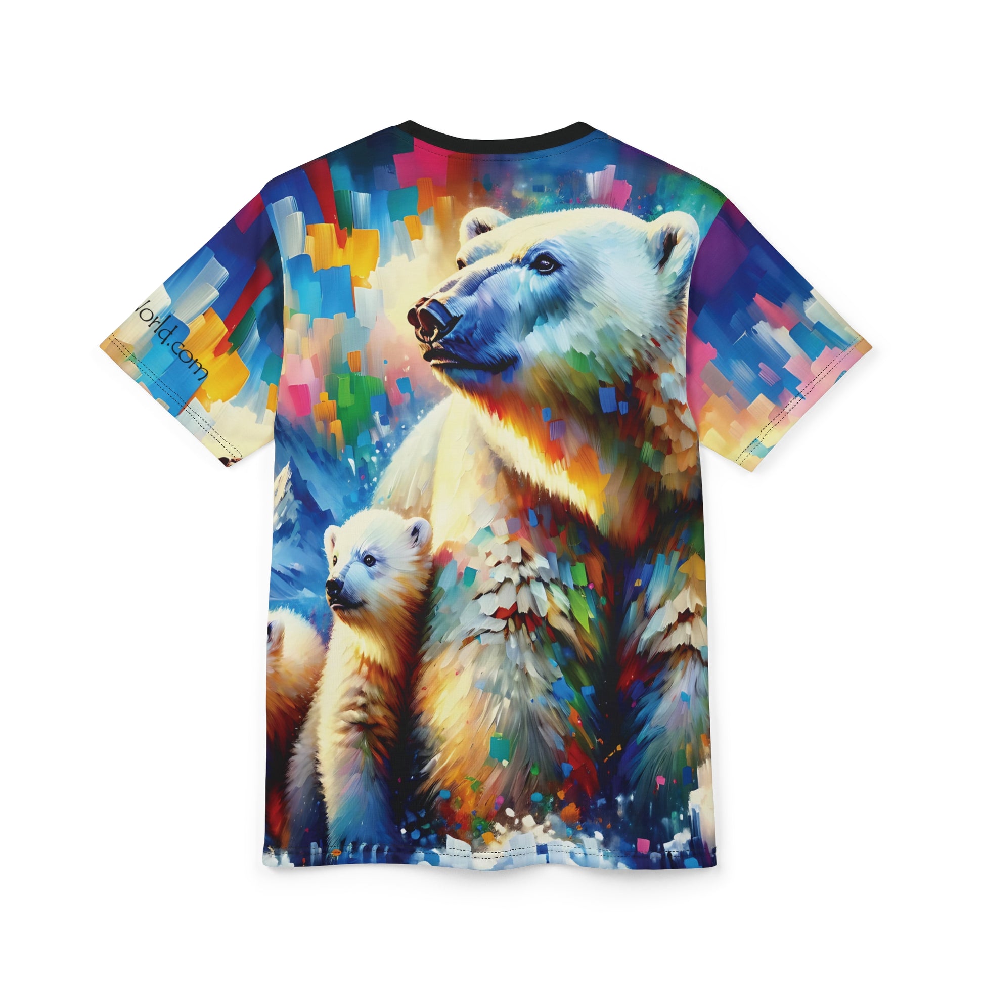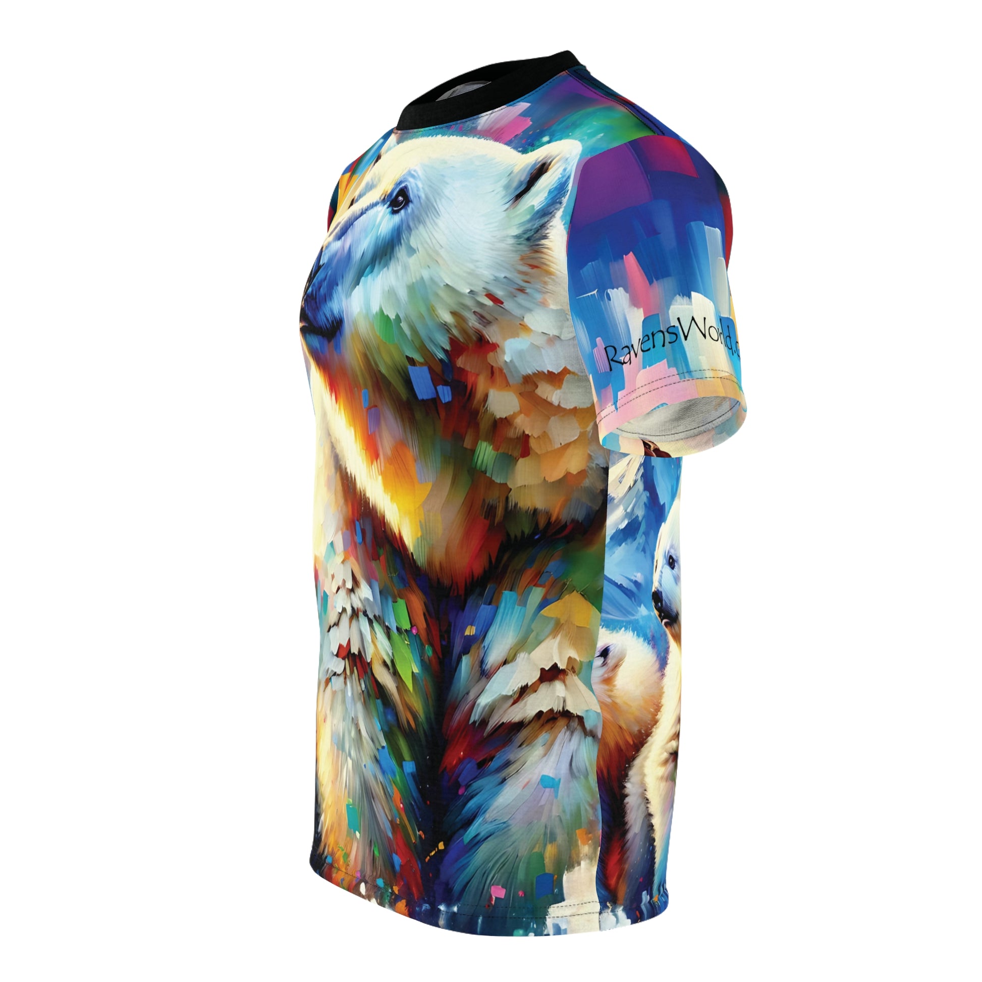 Polar Bear with Cub Vibrant Art Tee | Colorful Unisex Cut & Sew T-Shirt, Wildlife Apparel, Unique Graphic Tee, Birthday Gift