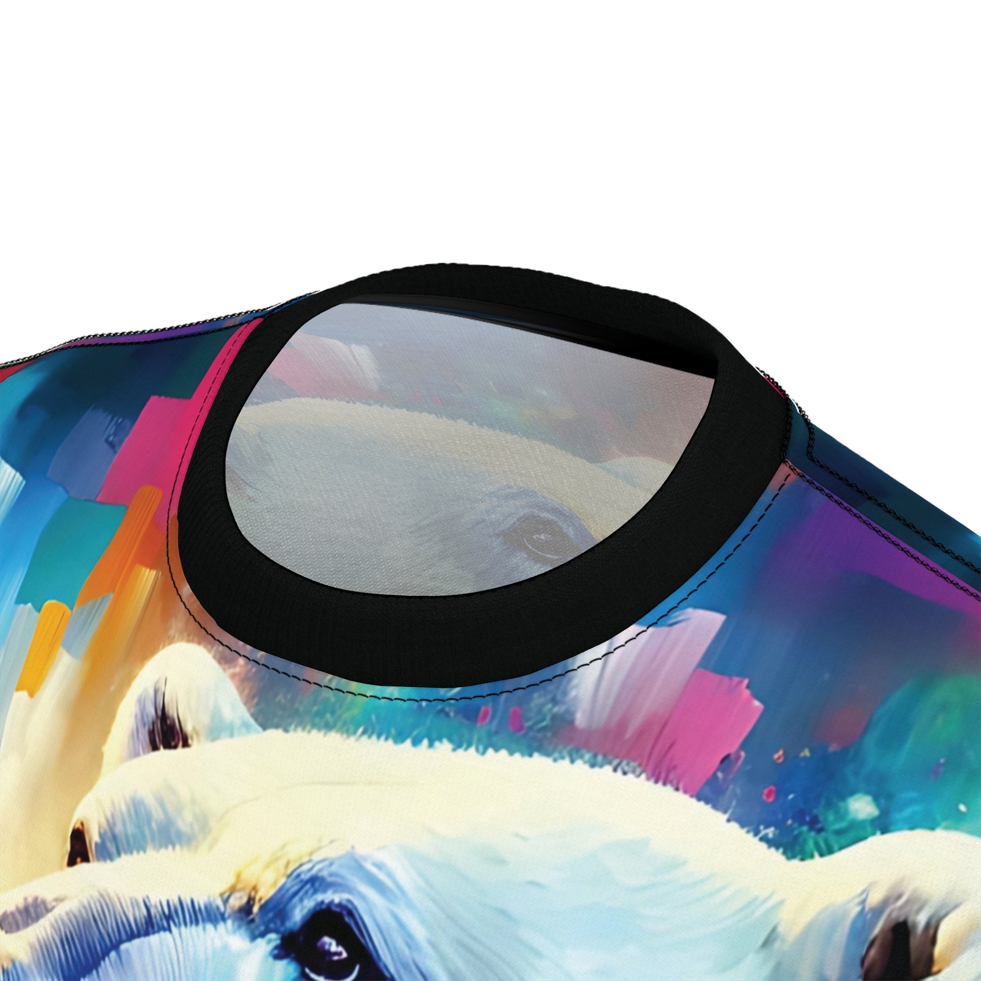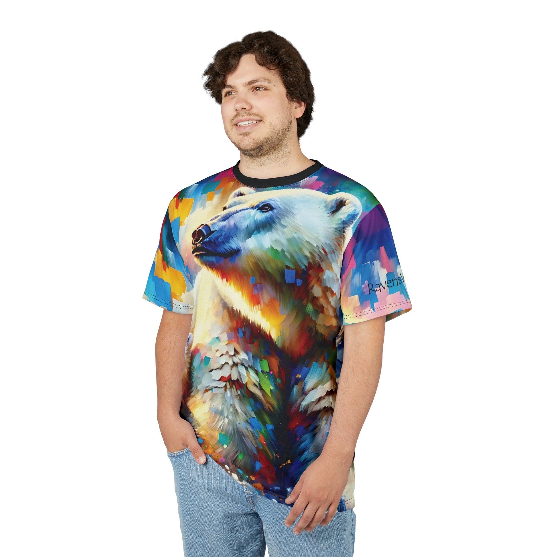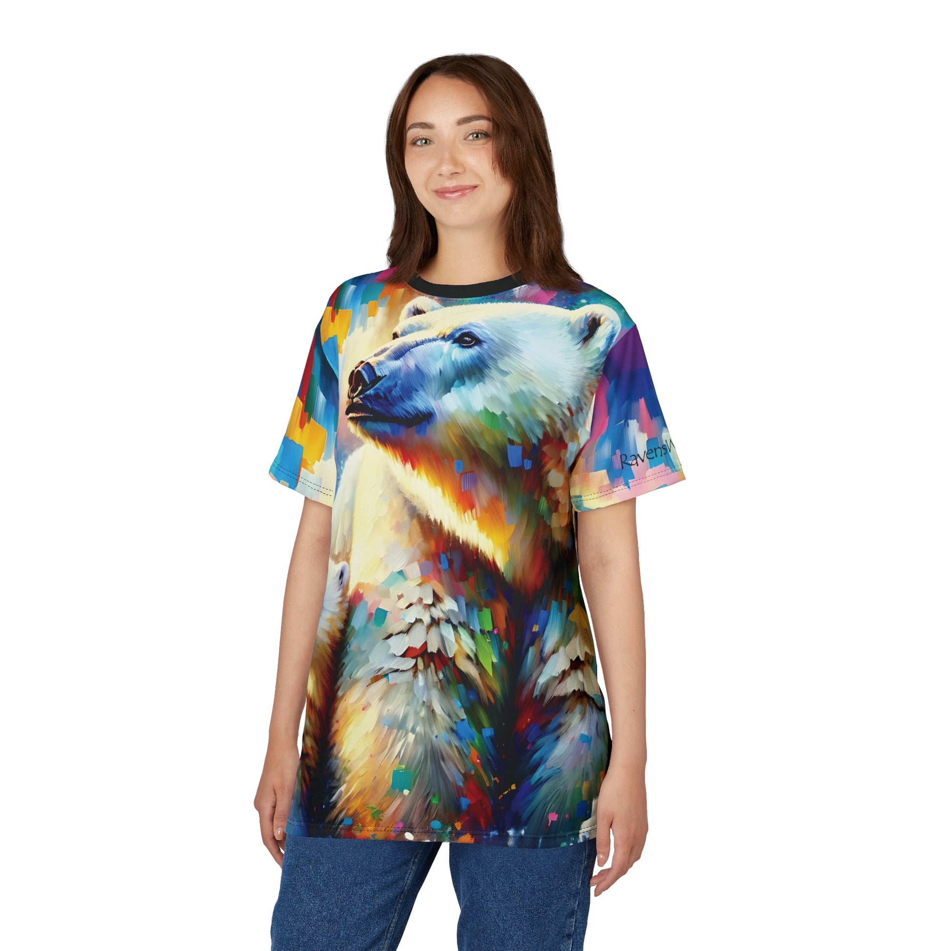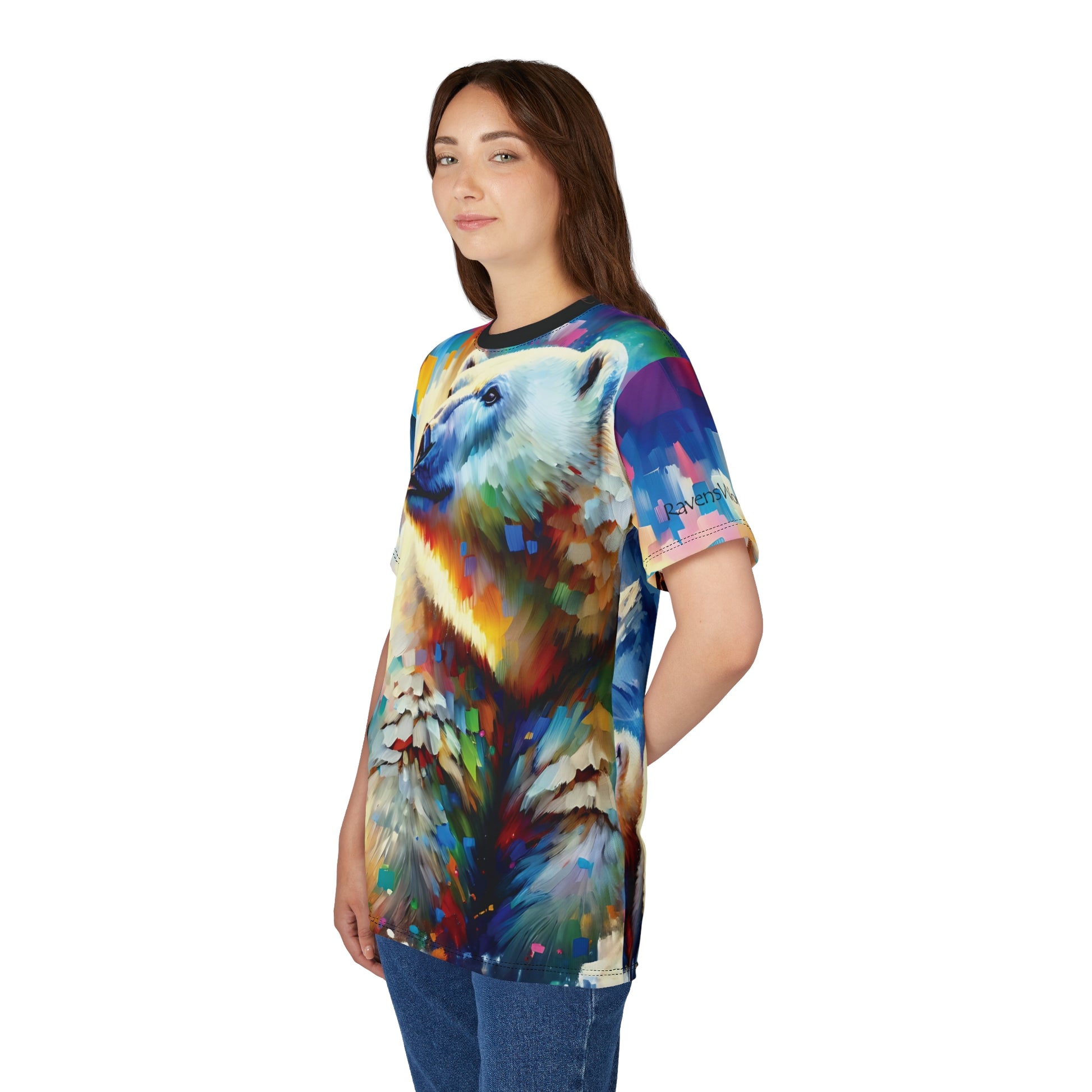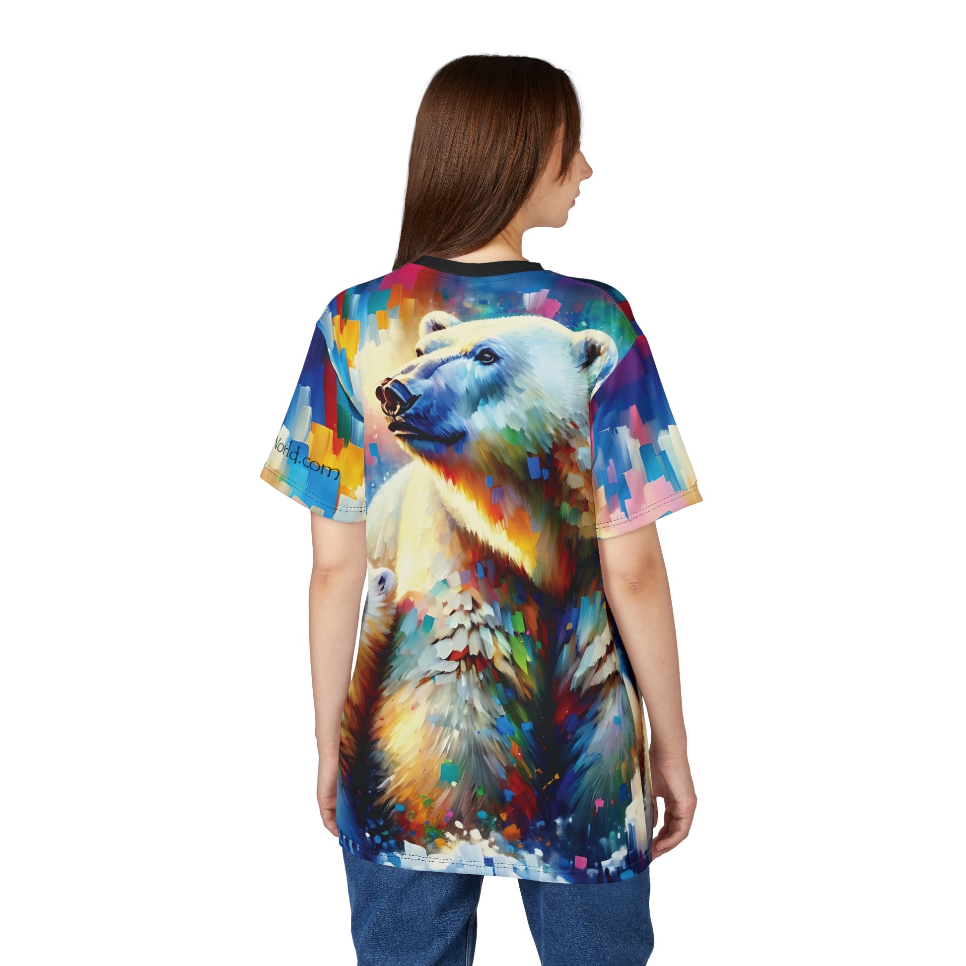 Polar Bear with Cub Vibrant Art Tee | Colorful Unisex Cut & Sew T-Shirt, Wildlife Apparel, Unique Graphic Tee, Birthday Gift