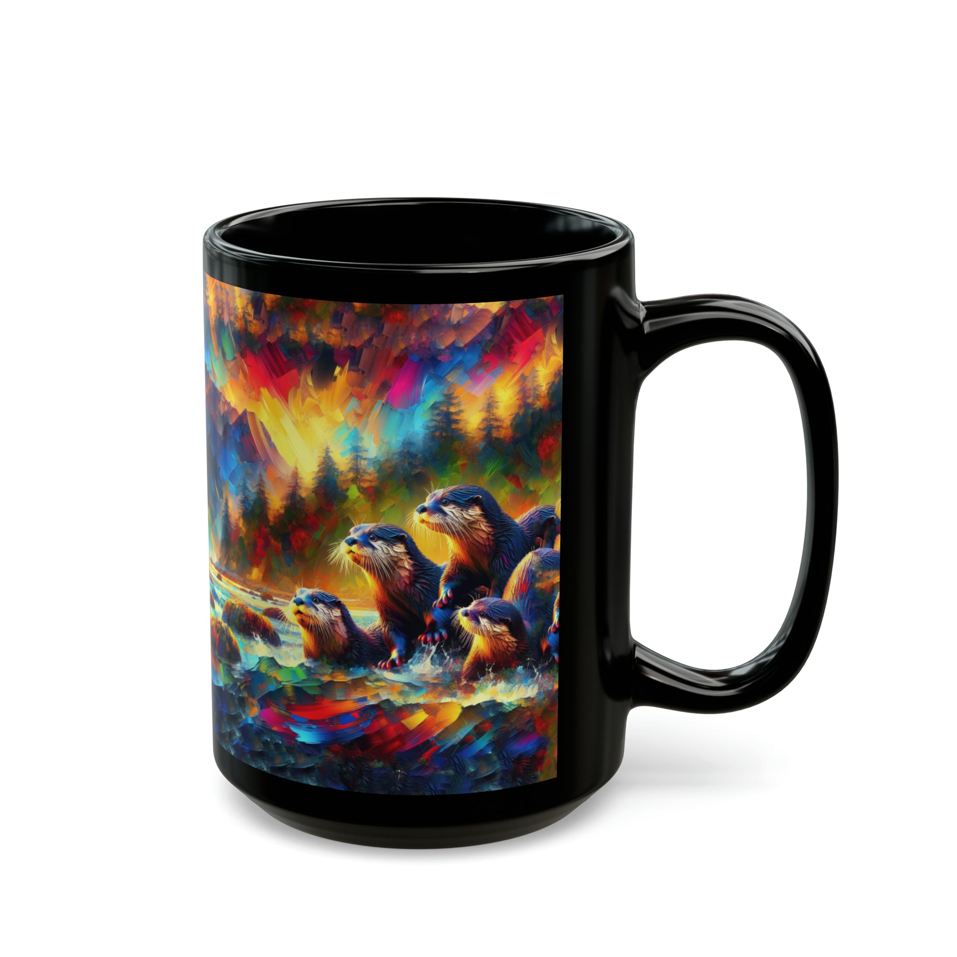 River Otters at Sunset - Black Mugs (11oz, 15oz)