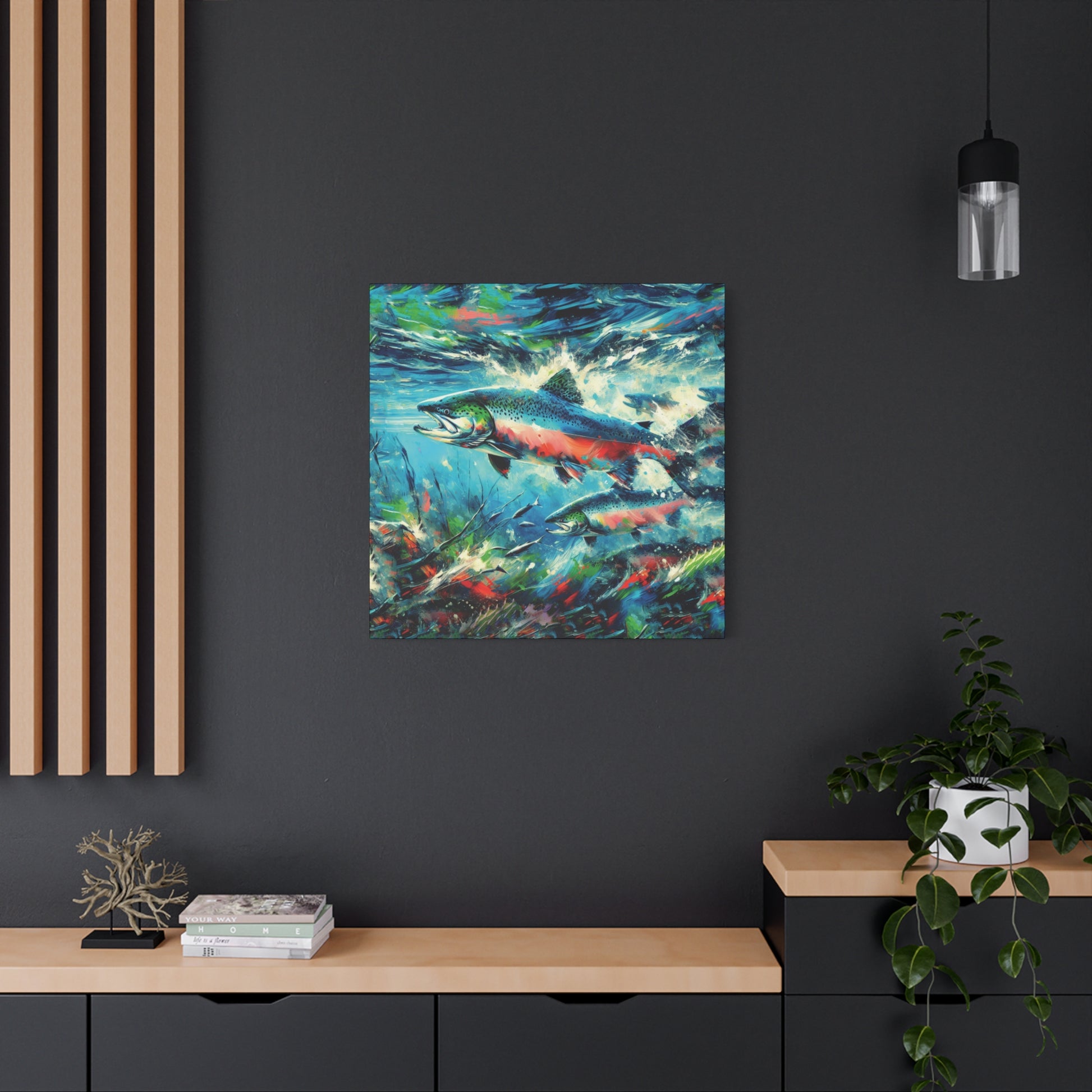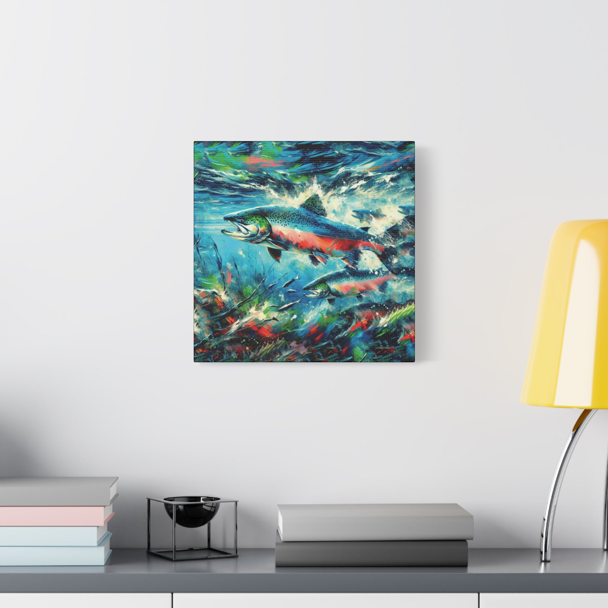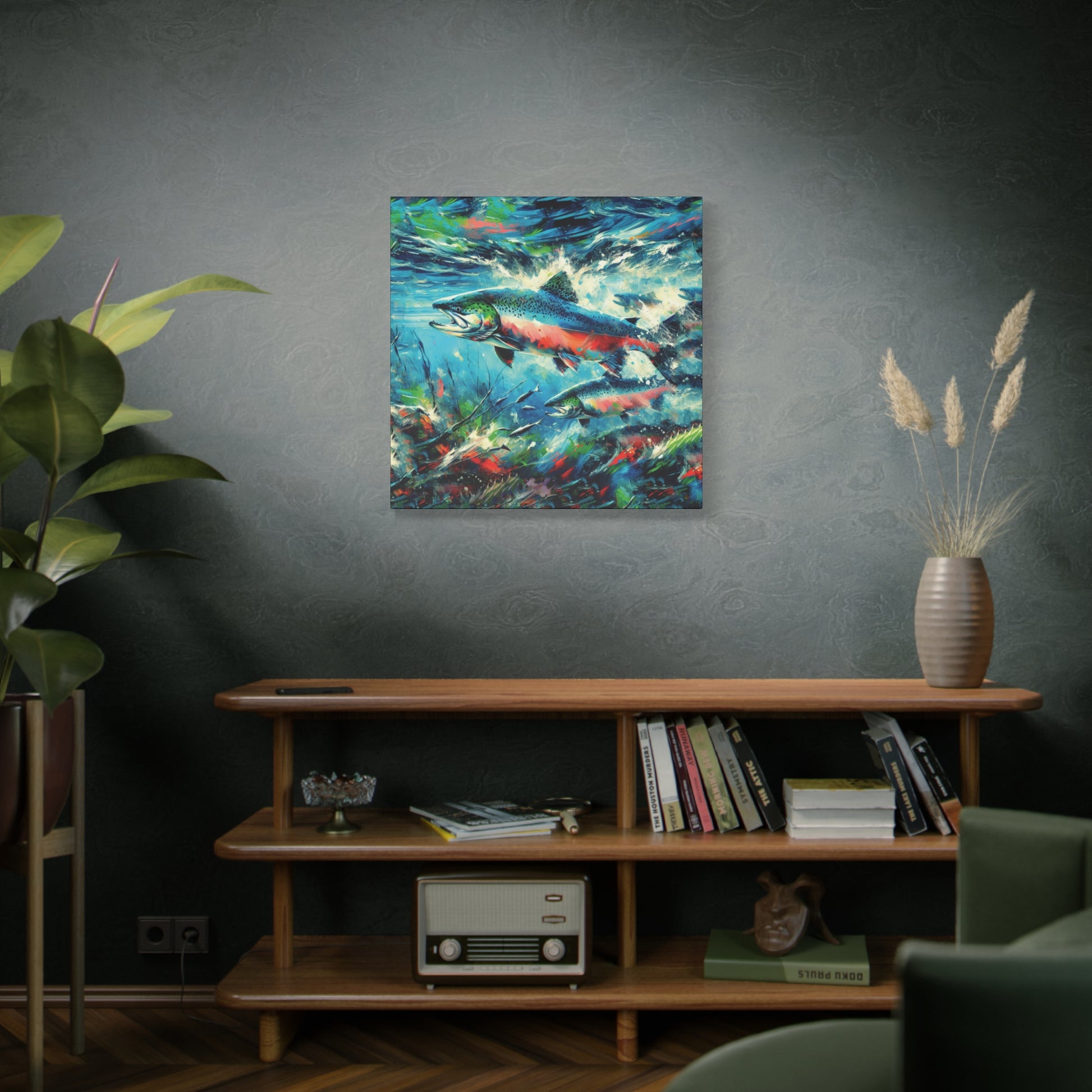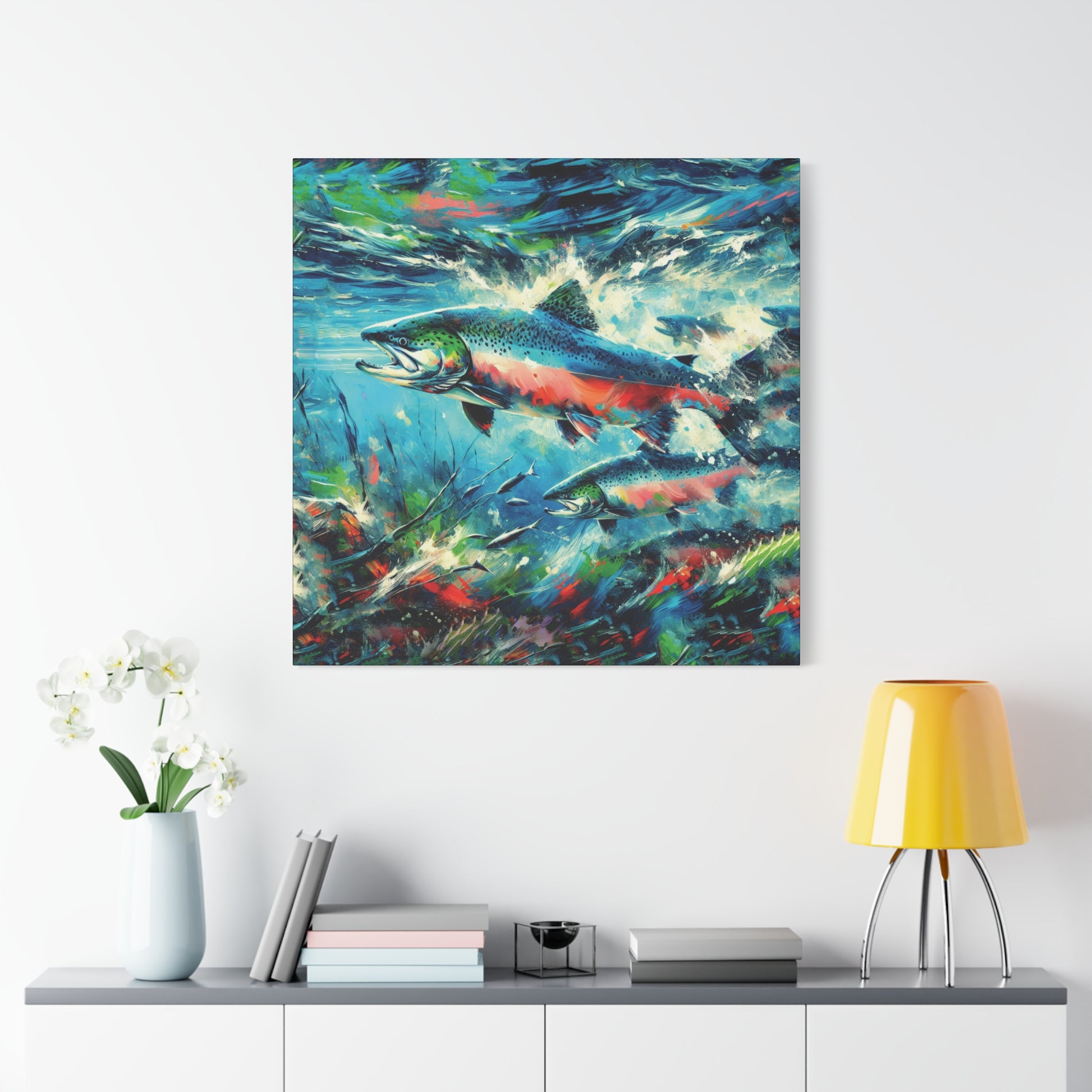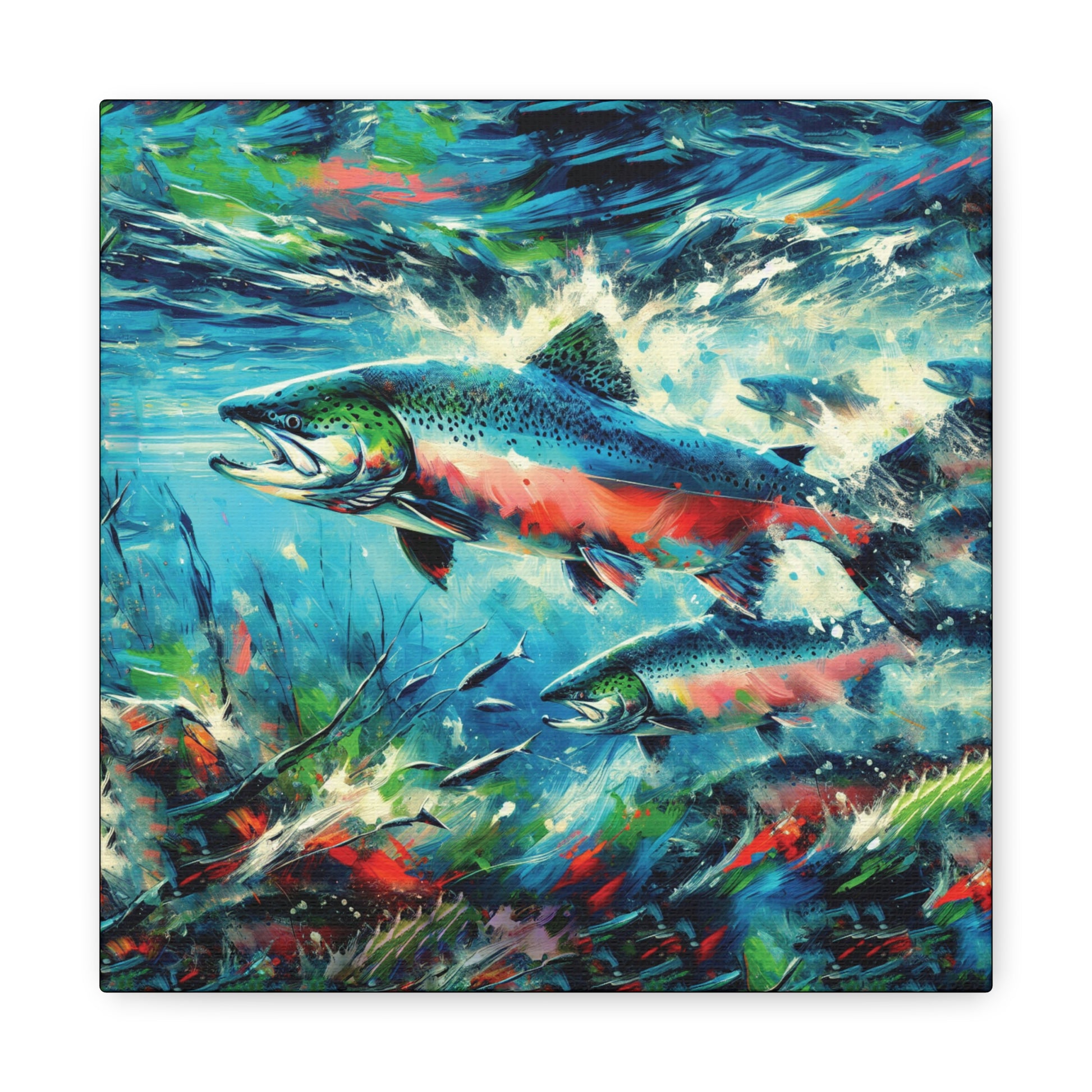Salmon Canvas Art, Expressionist Portrayal of Salmon Returning to their Home Water