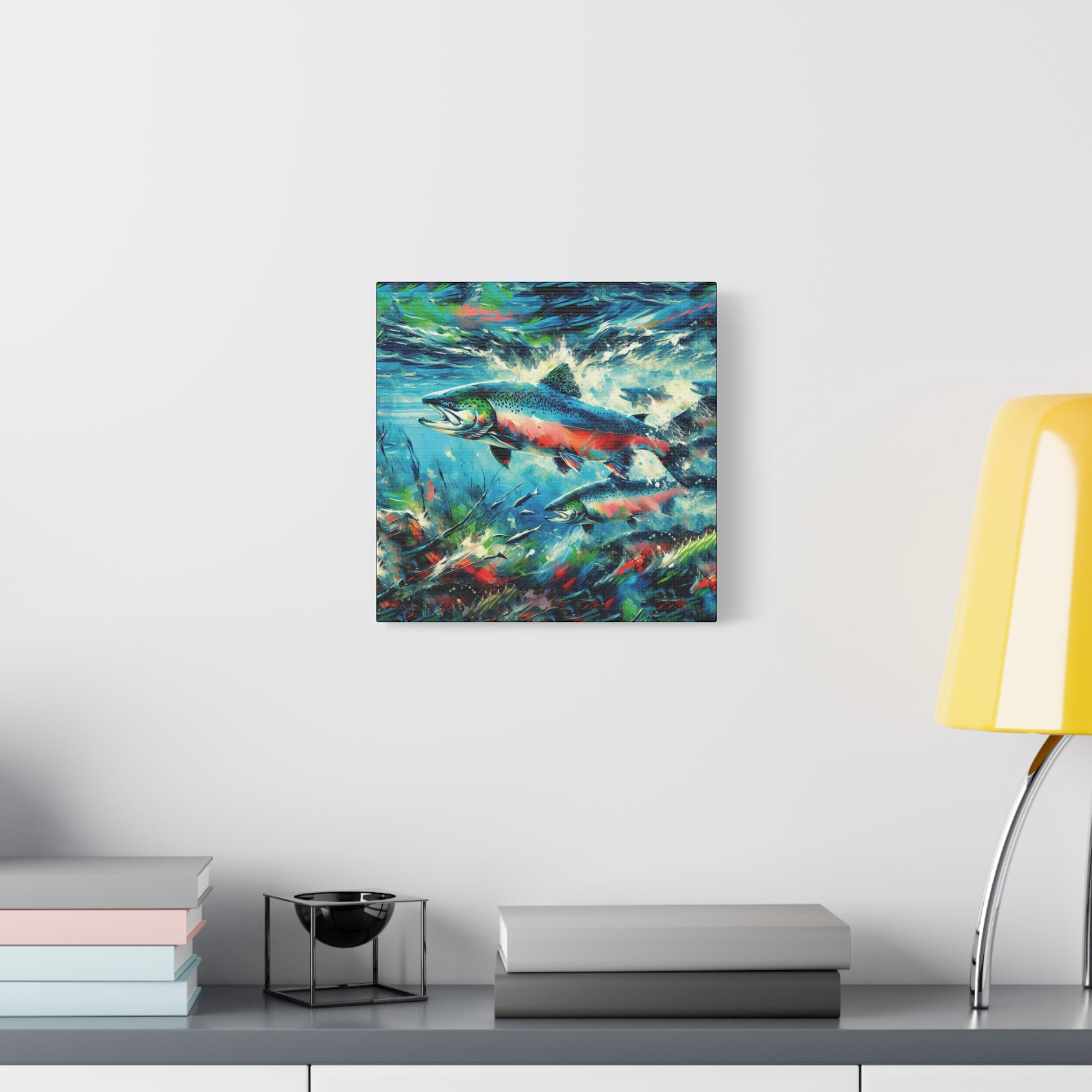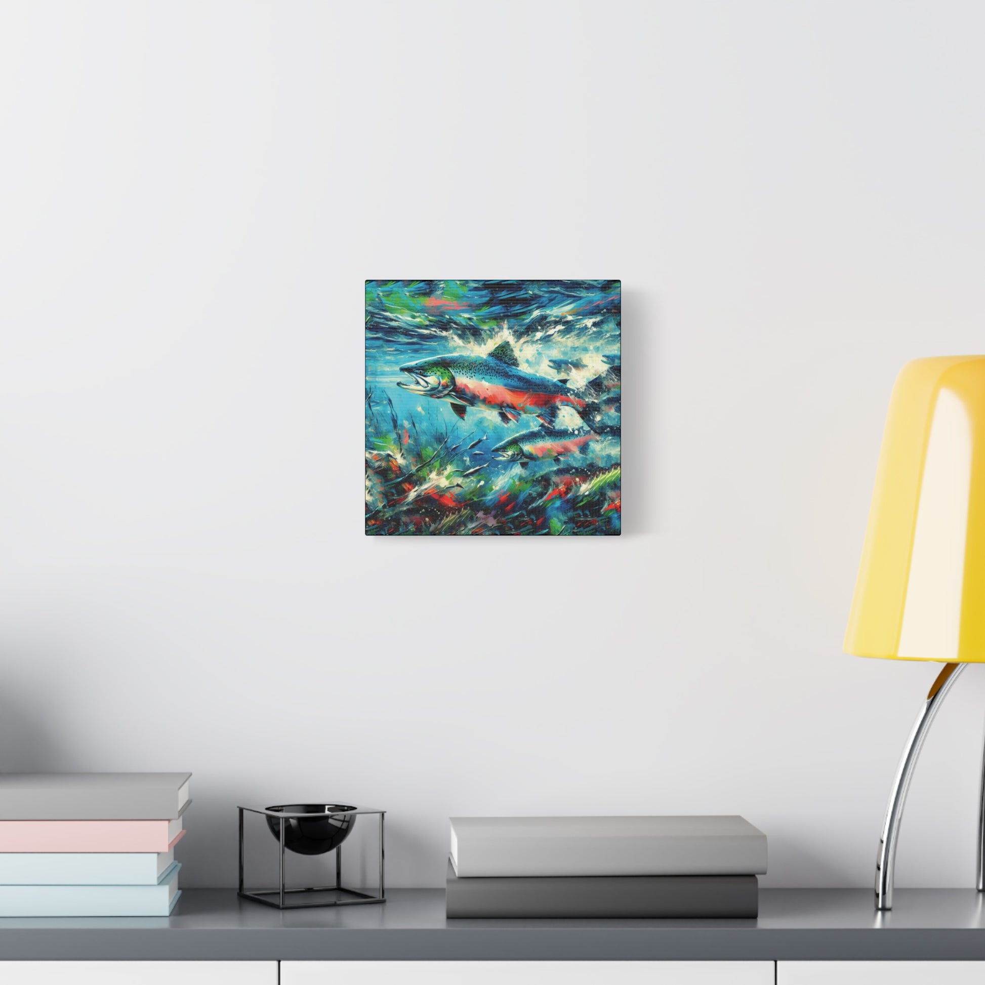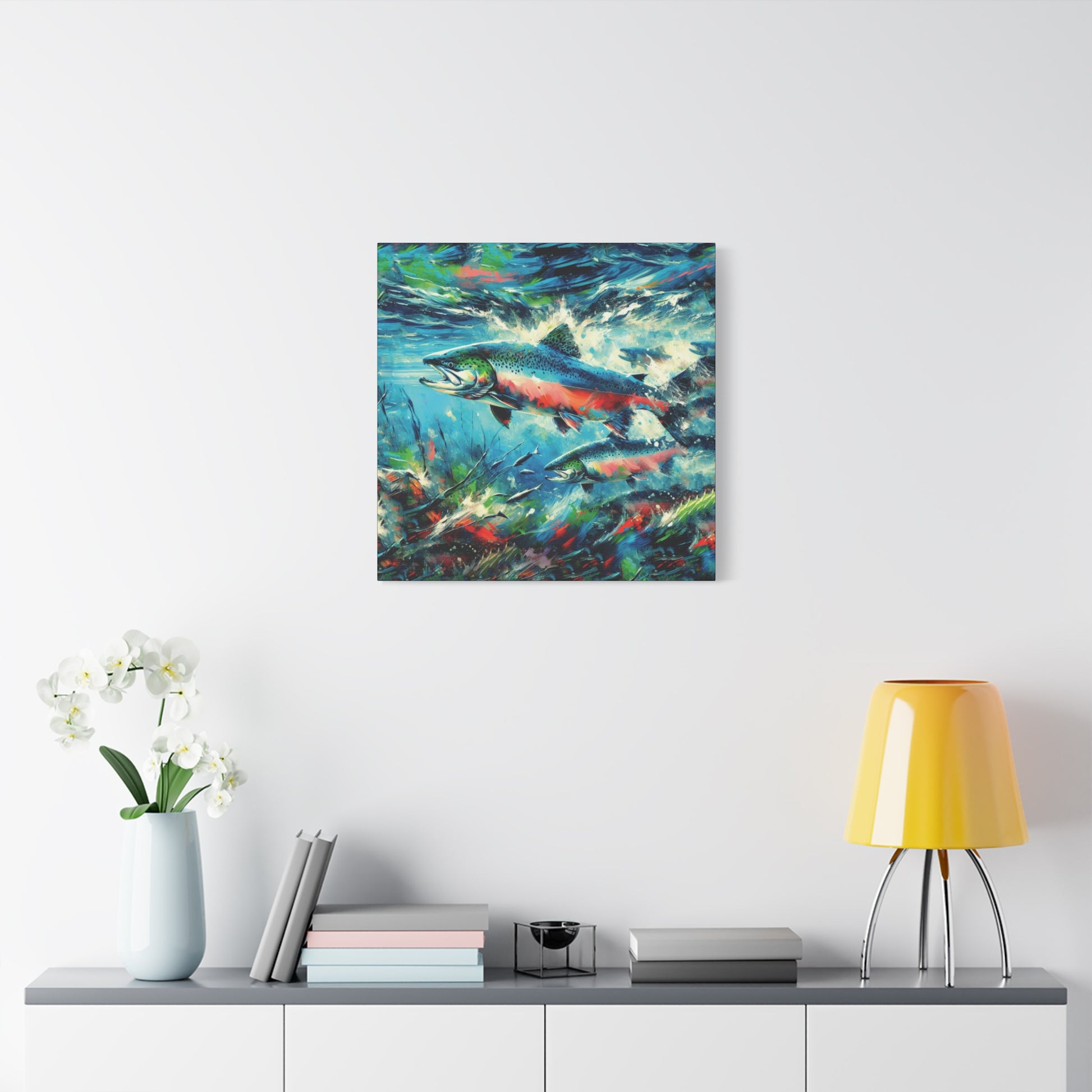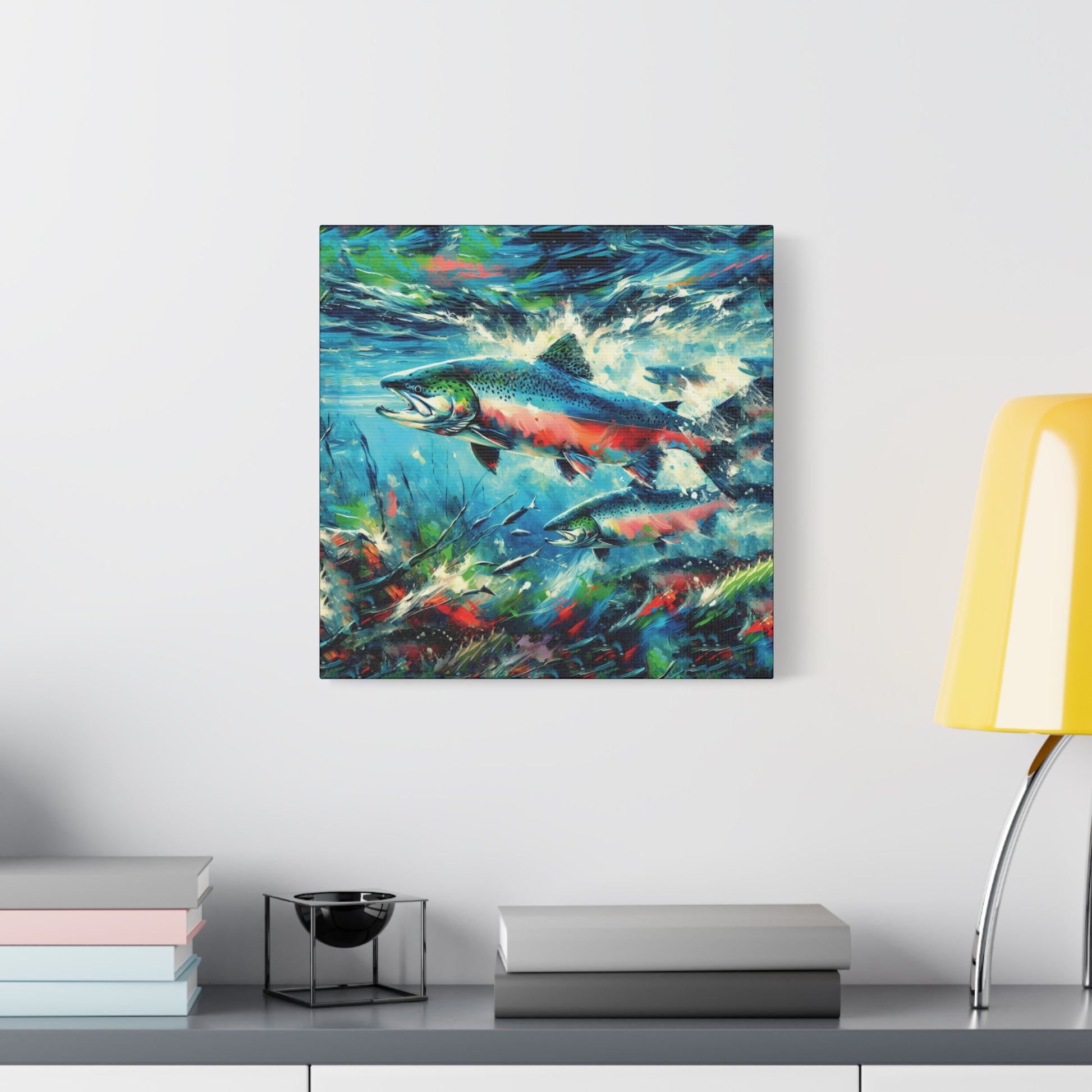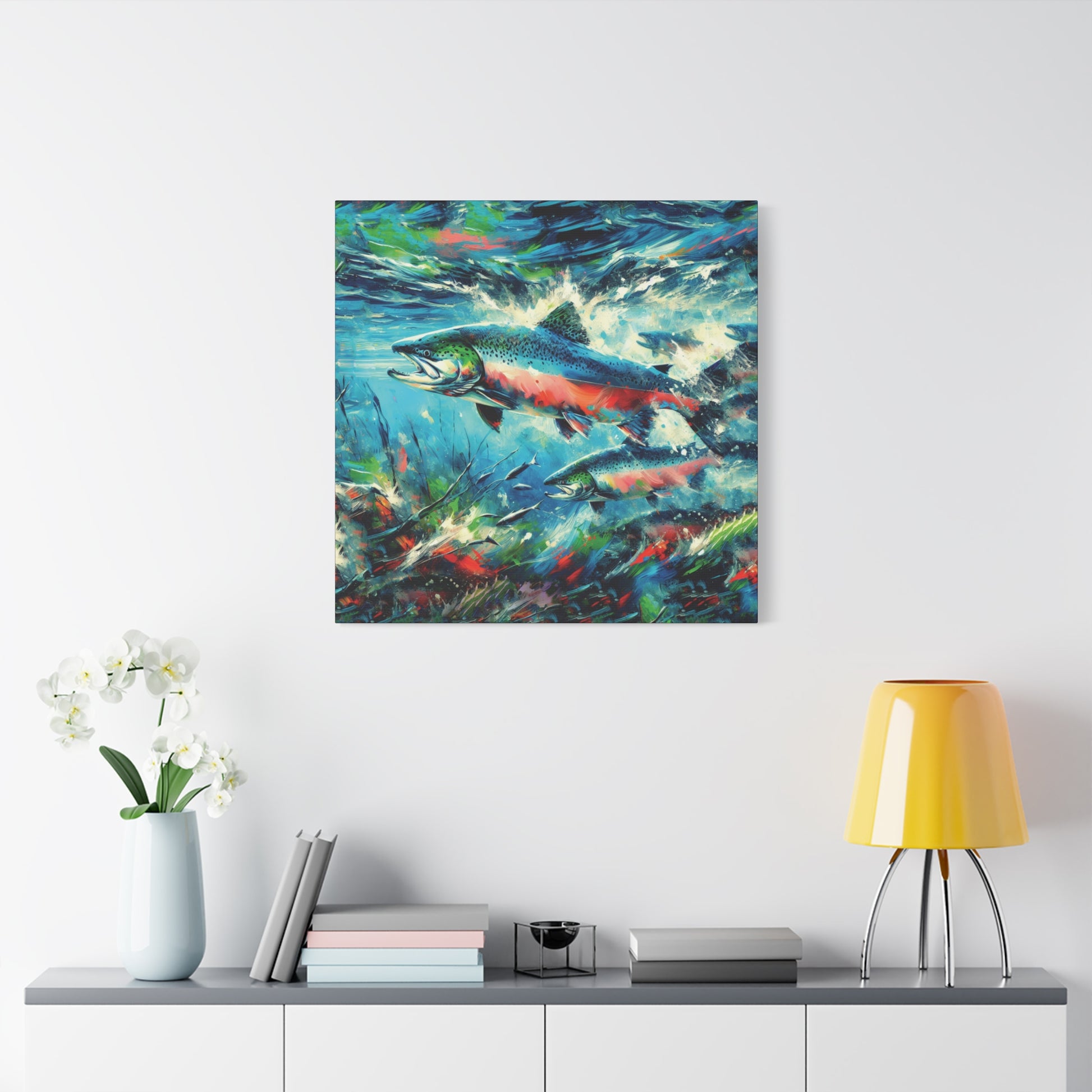 Salmon Canvas Art, Expressionist Portrayal of Salmon Returning to their Home Water