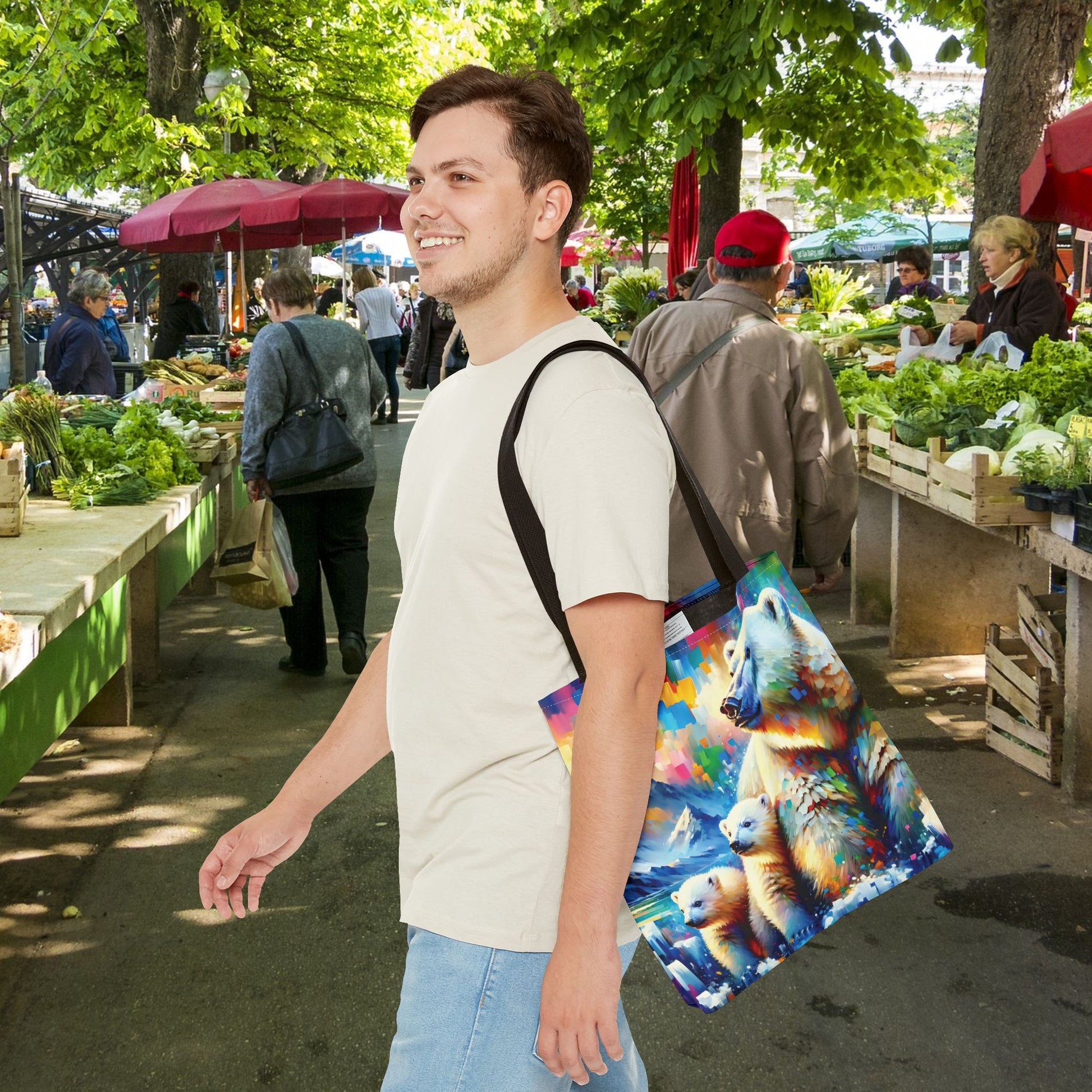 Tote Bag - Polar Bear Mom and Cubs Expressionist Style Art