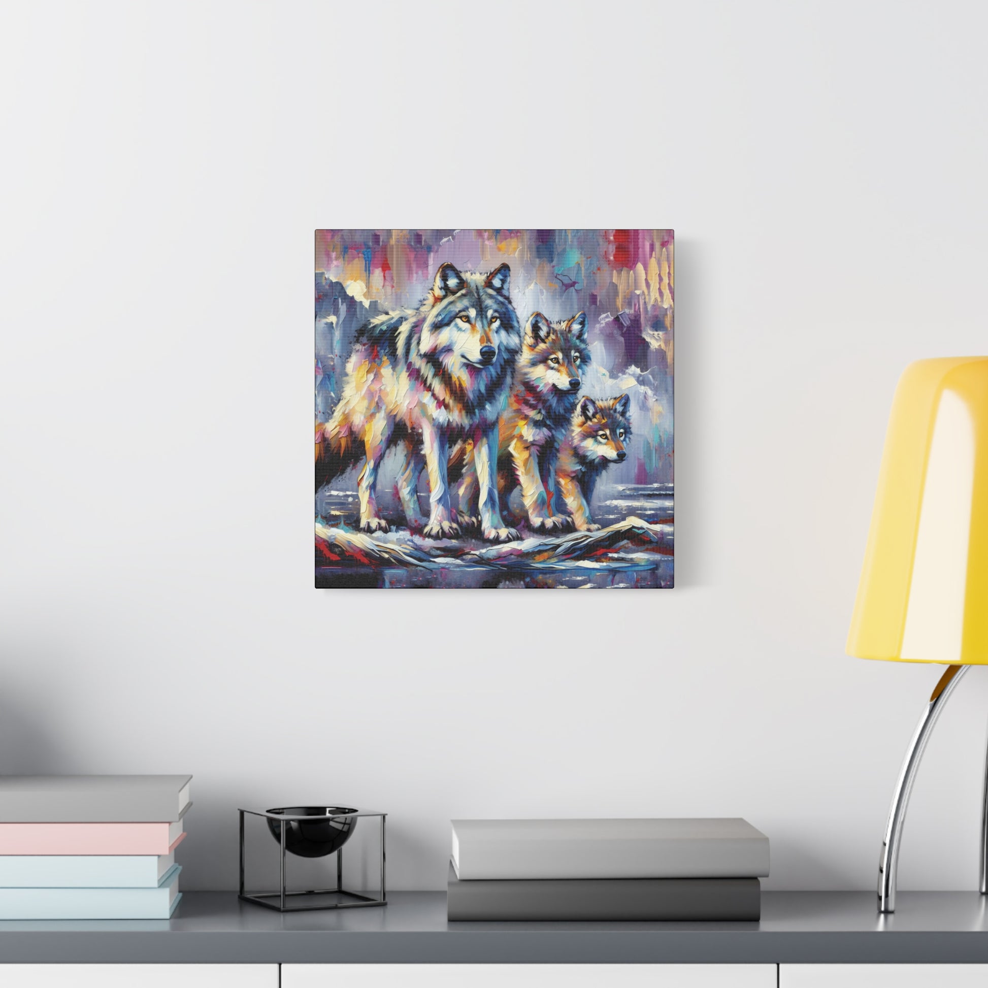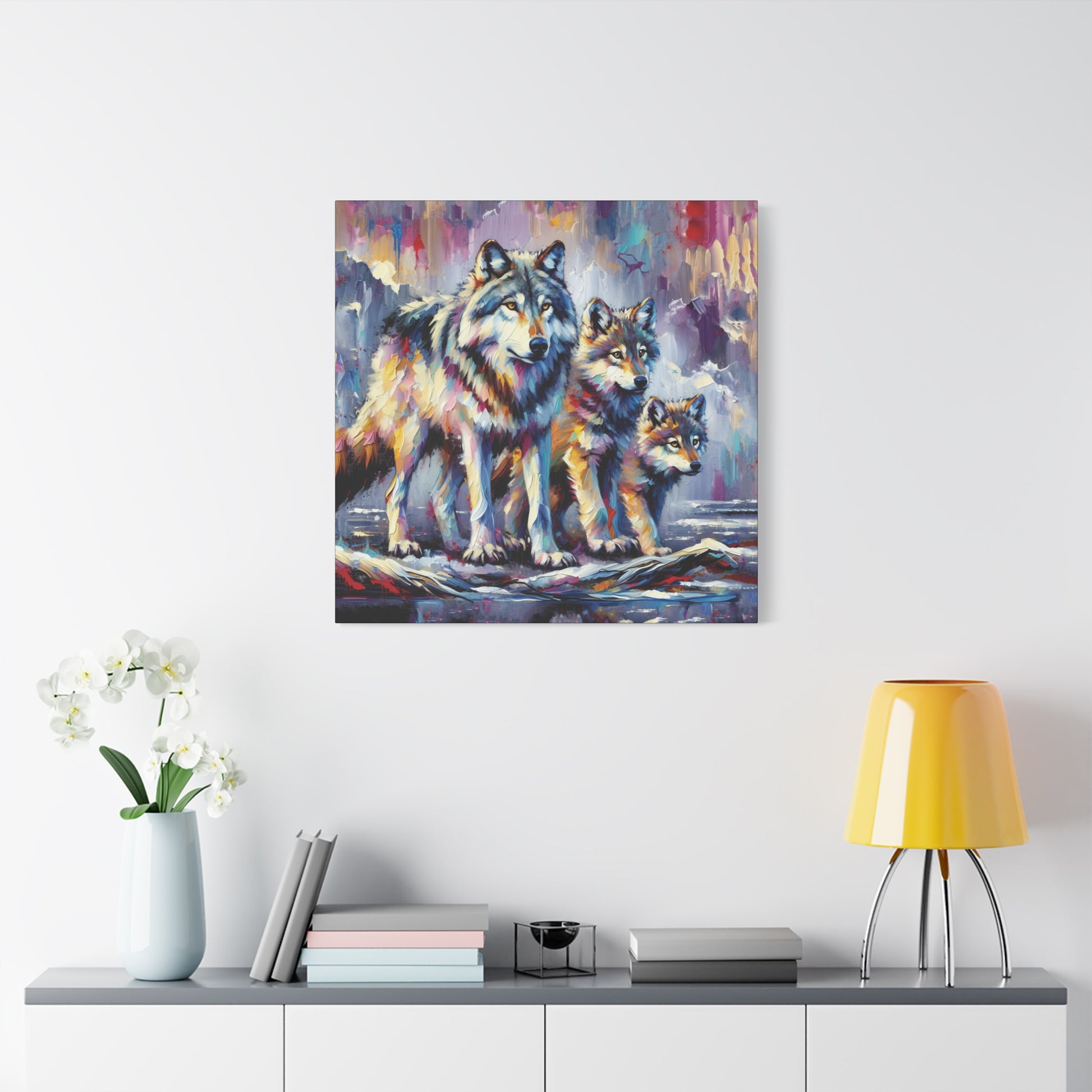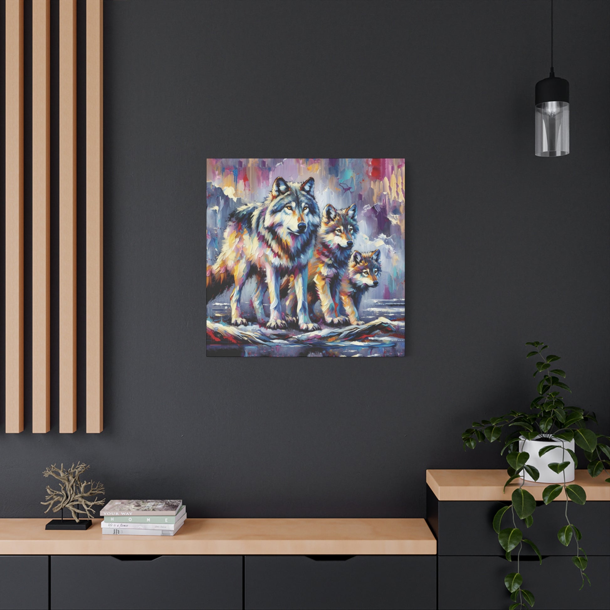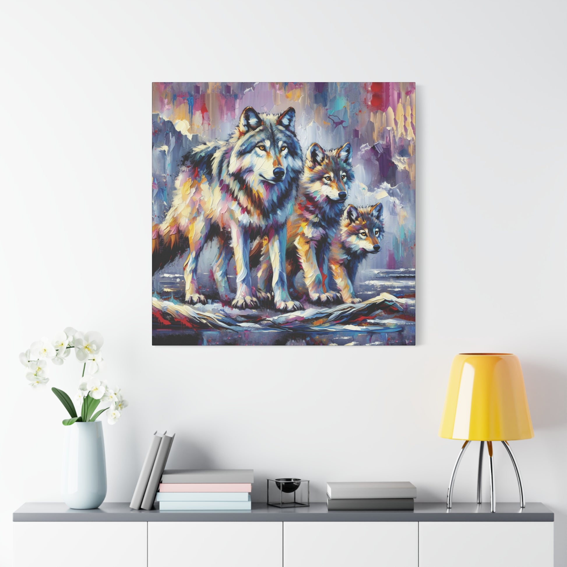 Wolf Canvas Wall Art - Wolf with Juveniles Expressionist Canvas Print
