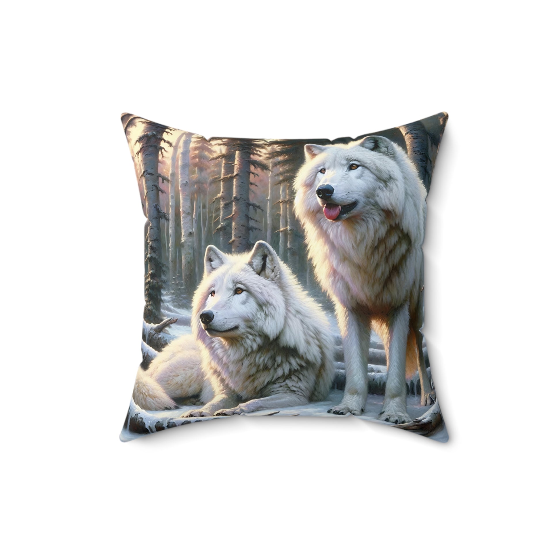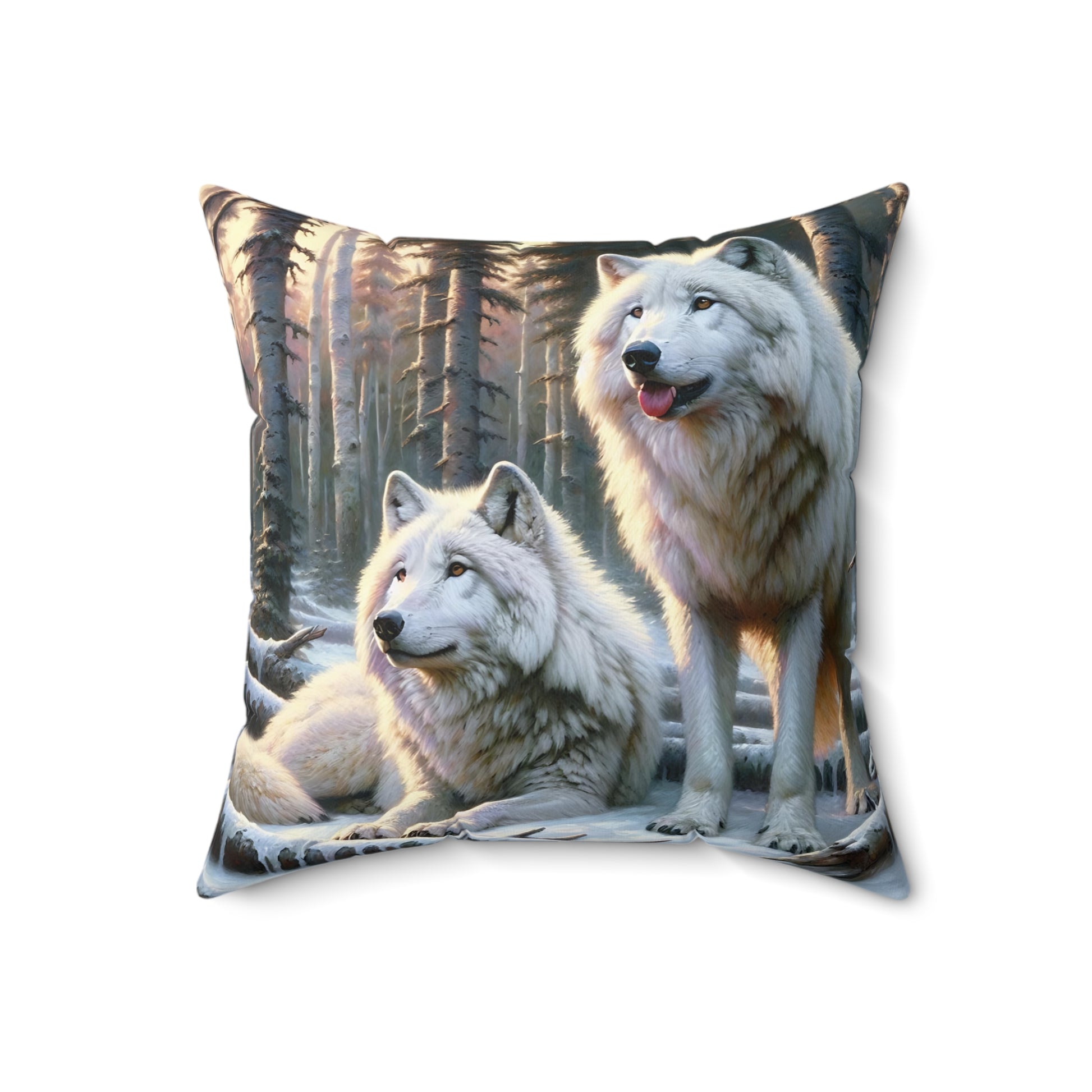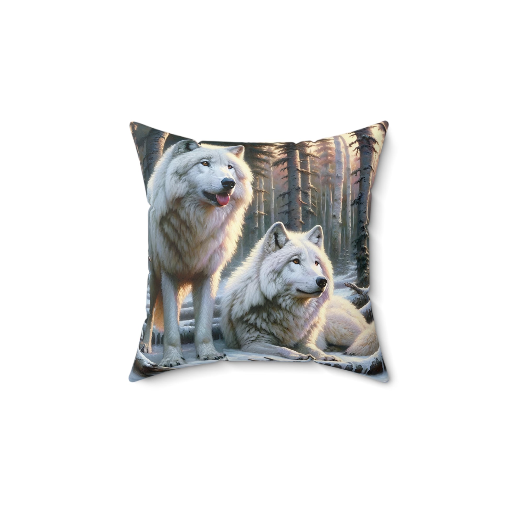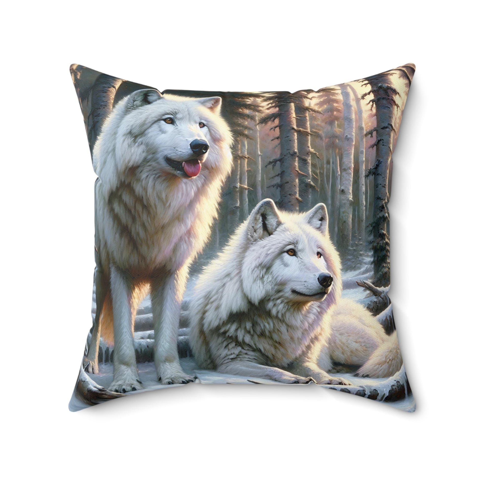 Wolf Pillow - Arctic Wolf Pair Impressionist Art on Square Pillow