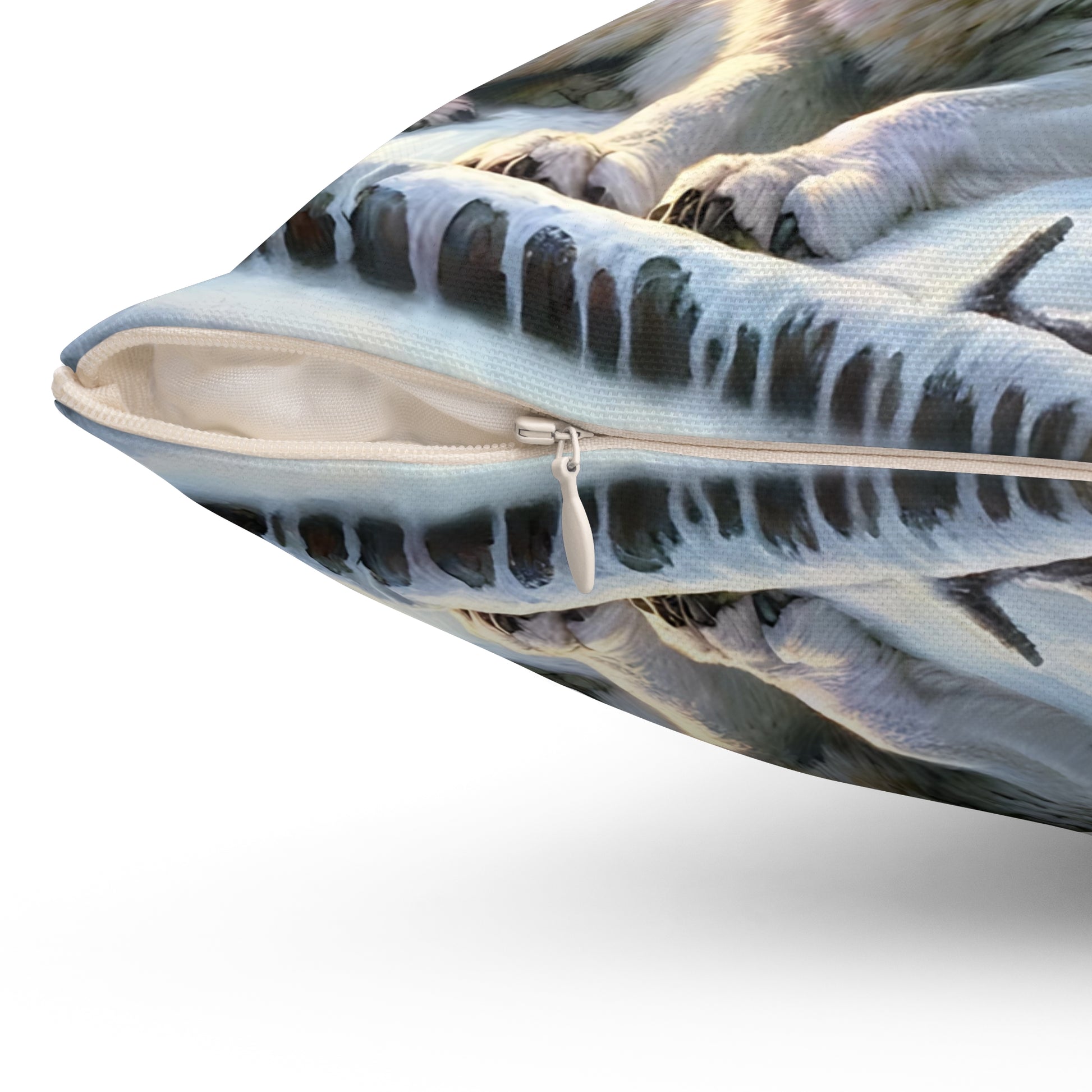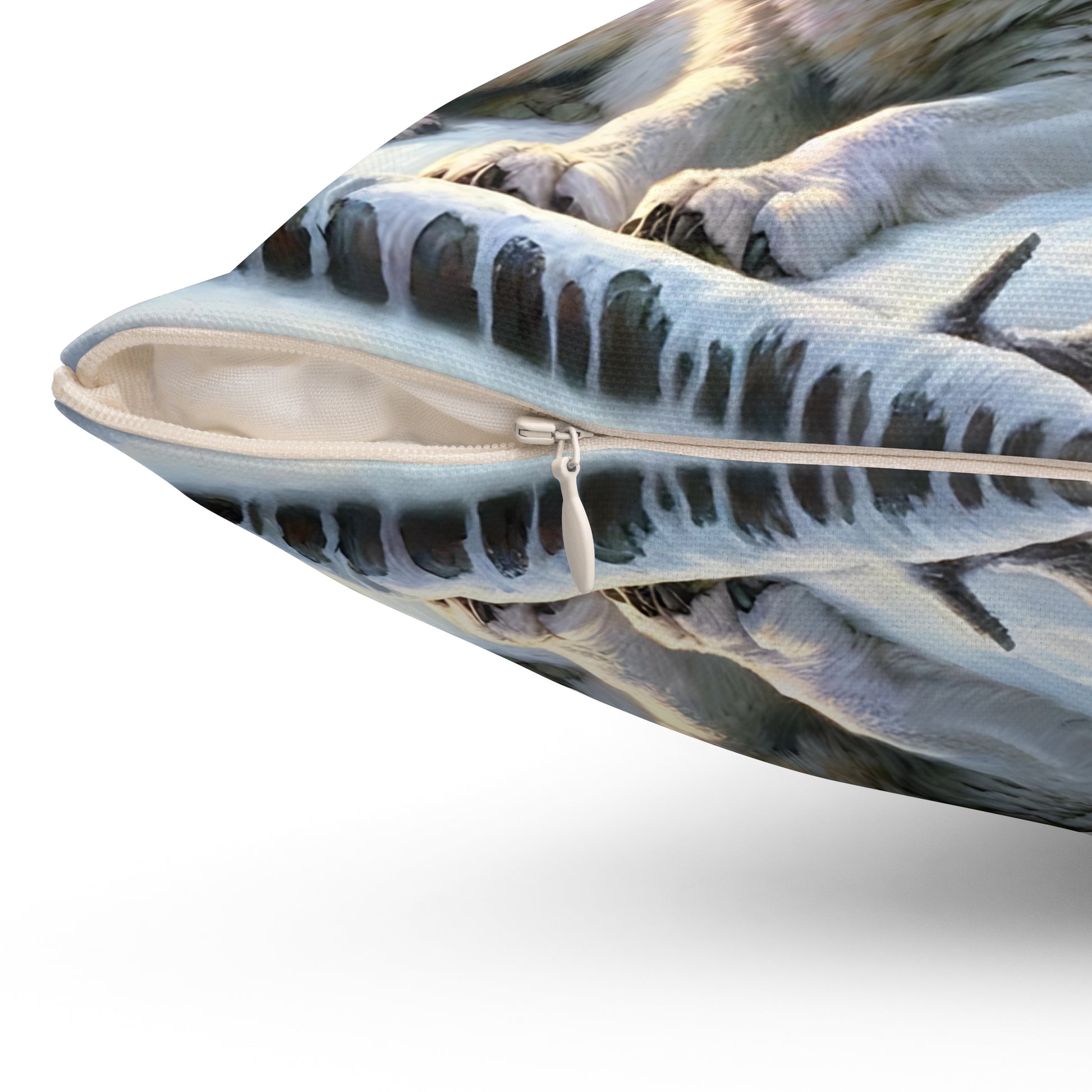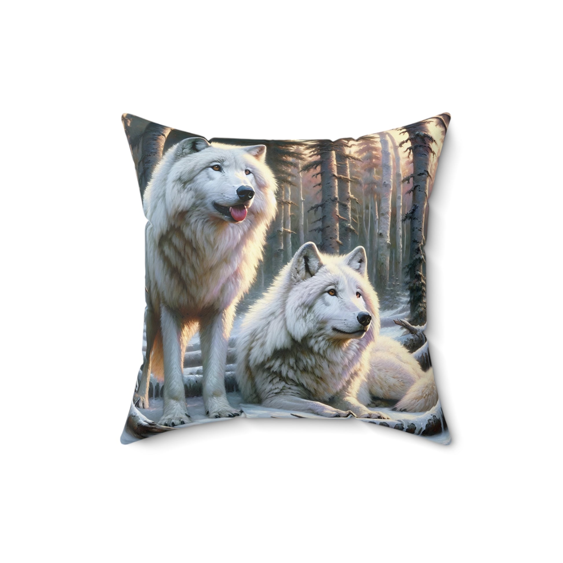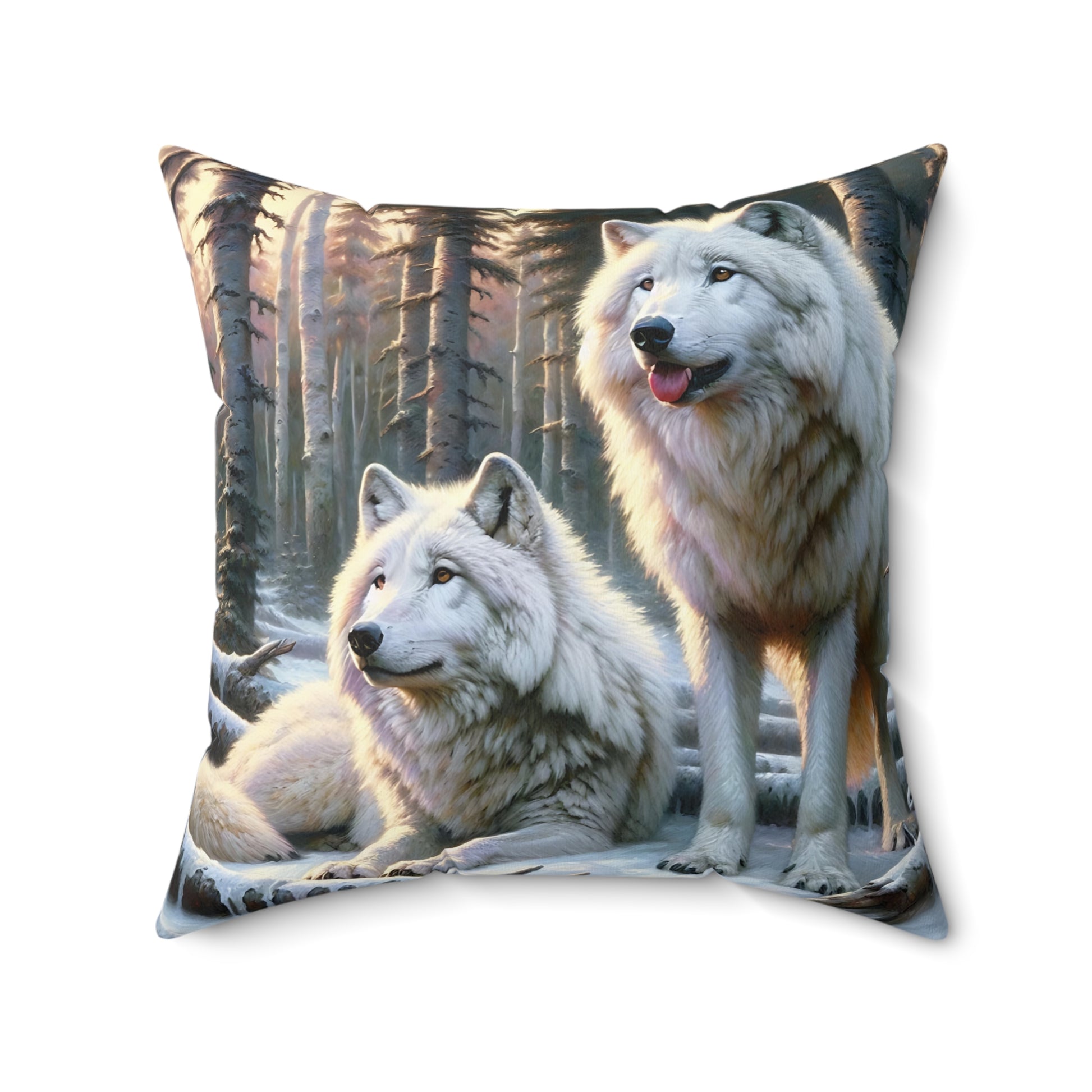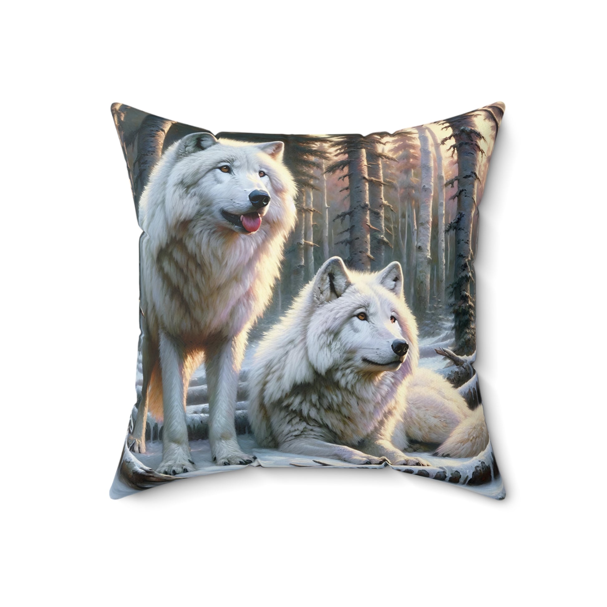 Wolf Pillow - Arctic Wolf Pair Impressionist Art on Square Pillow