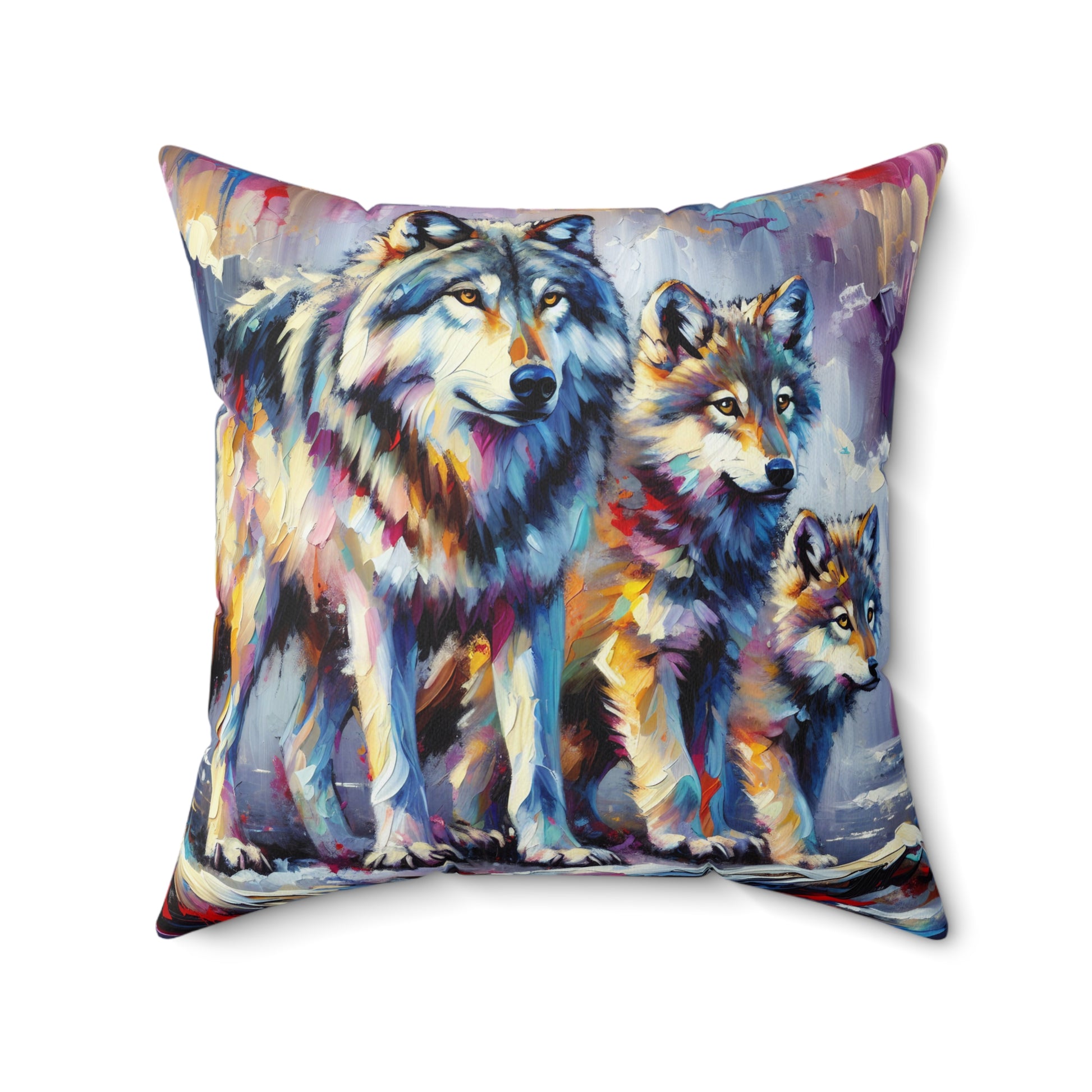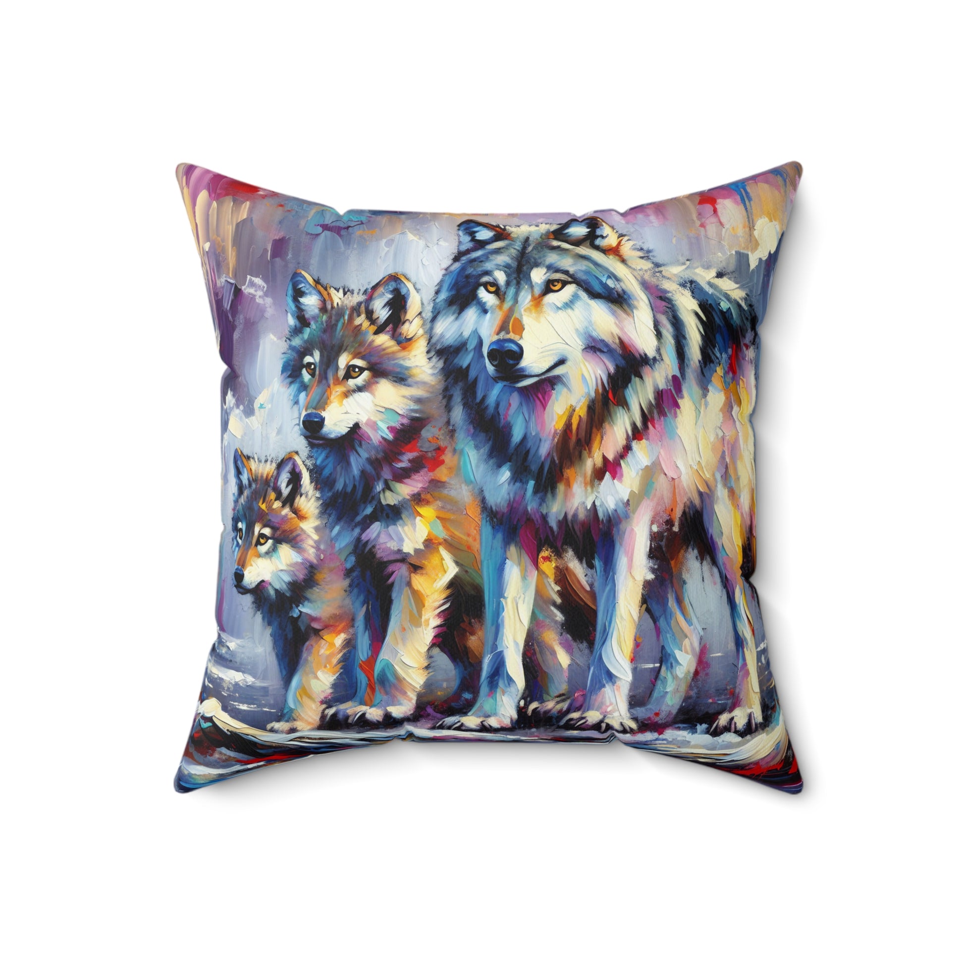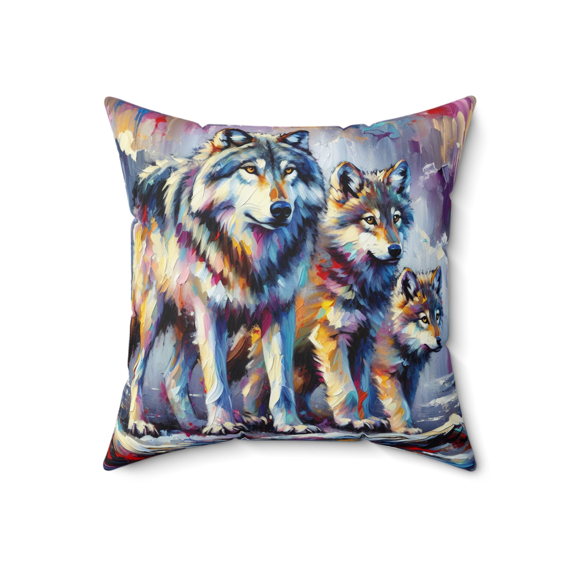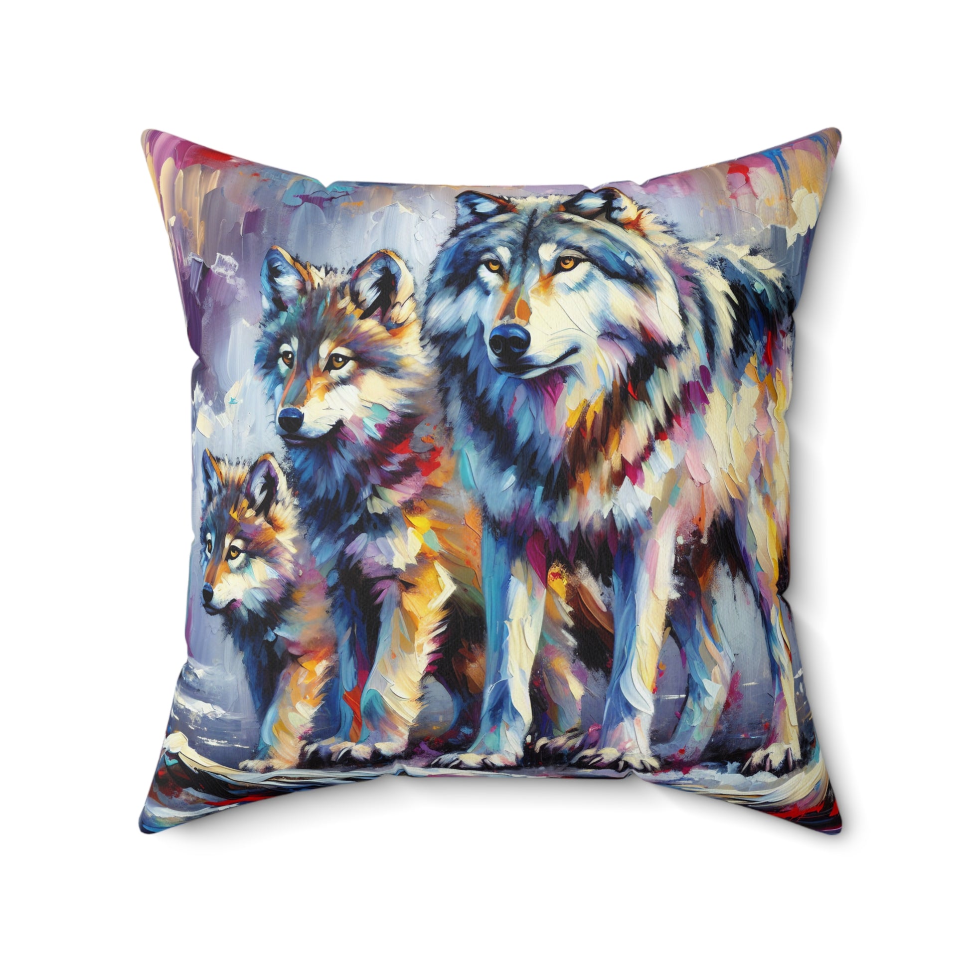 Accent pieces can transform a room! Our Impressionist Art series pillows, featuring captivating animal artwork -- in this case, a delightful wolf and juveniles he is teaching how to navigate a frozen stream - are available in four sizes, making them a perfect fit for any space - from living and family rooms to bedrooms and dorm rooms. These eye-catching indoor pillows do more than just decorate; they create a personalized atmosphere that fills your heart with joy and love.