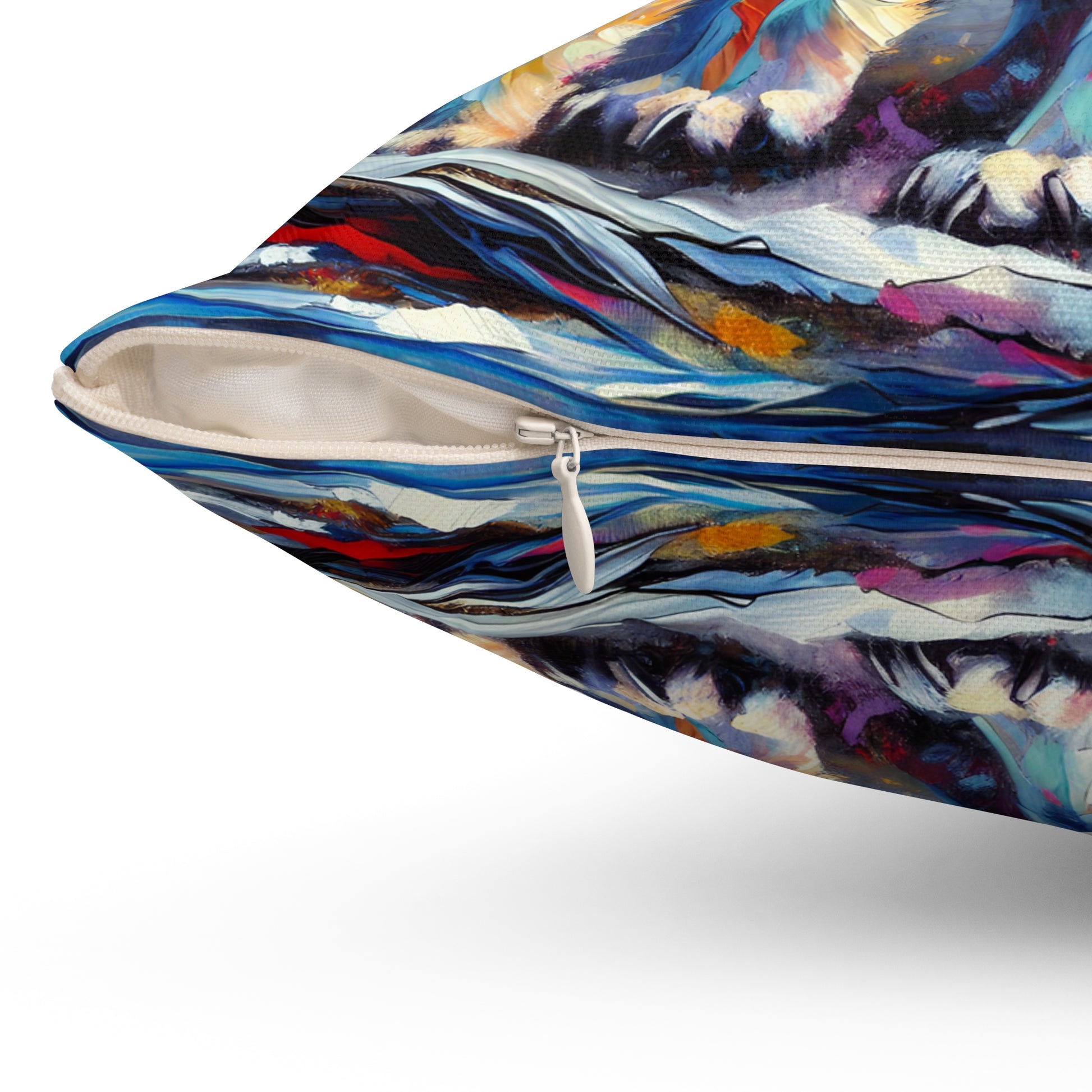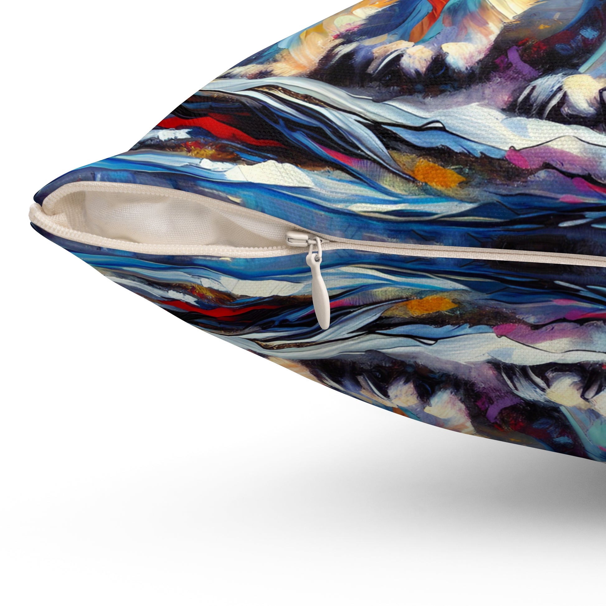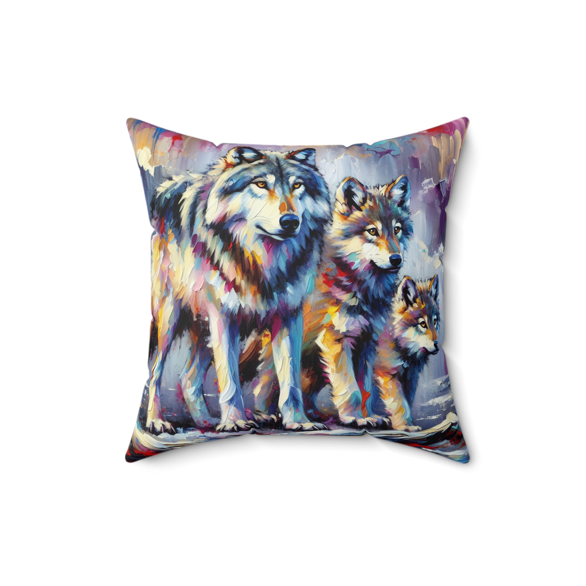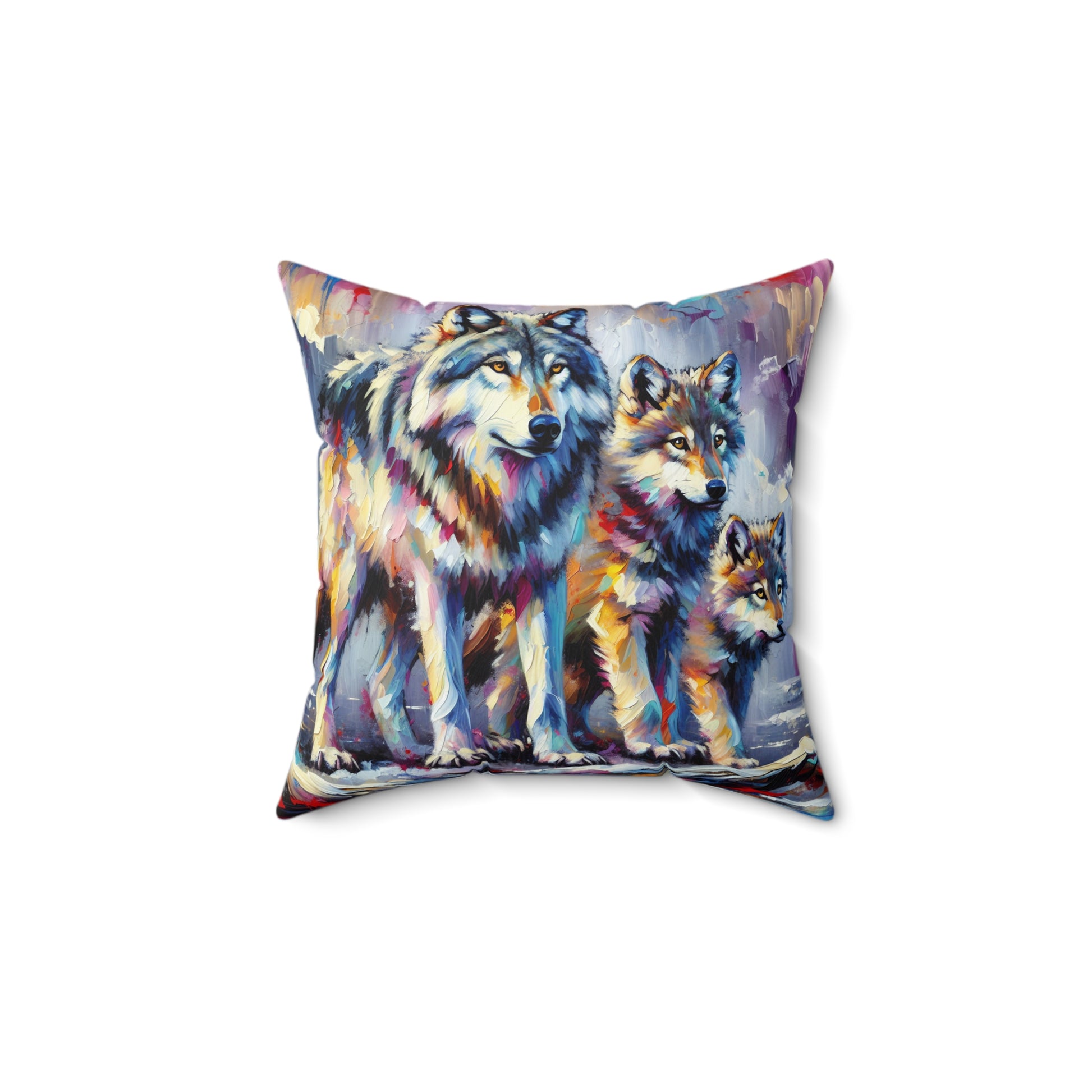 Accent pieces can transform a room! Our Impressionist Art series pillows, featuring captivating animal artwork -- in this case, a delightful wolf and juveniles he is teaching how to navigate a frozen stream - are available in four sizes, making them a perfect fit for any space - from living and family rooms to bedrooms and dorm rooms. These eye-catching indoor pillows do more than just decorate; they create a personalized atmosphere that fills your heart with joy and love.